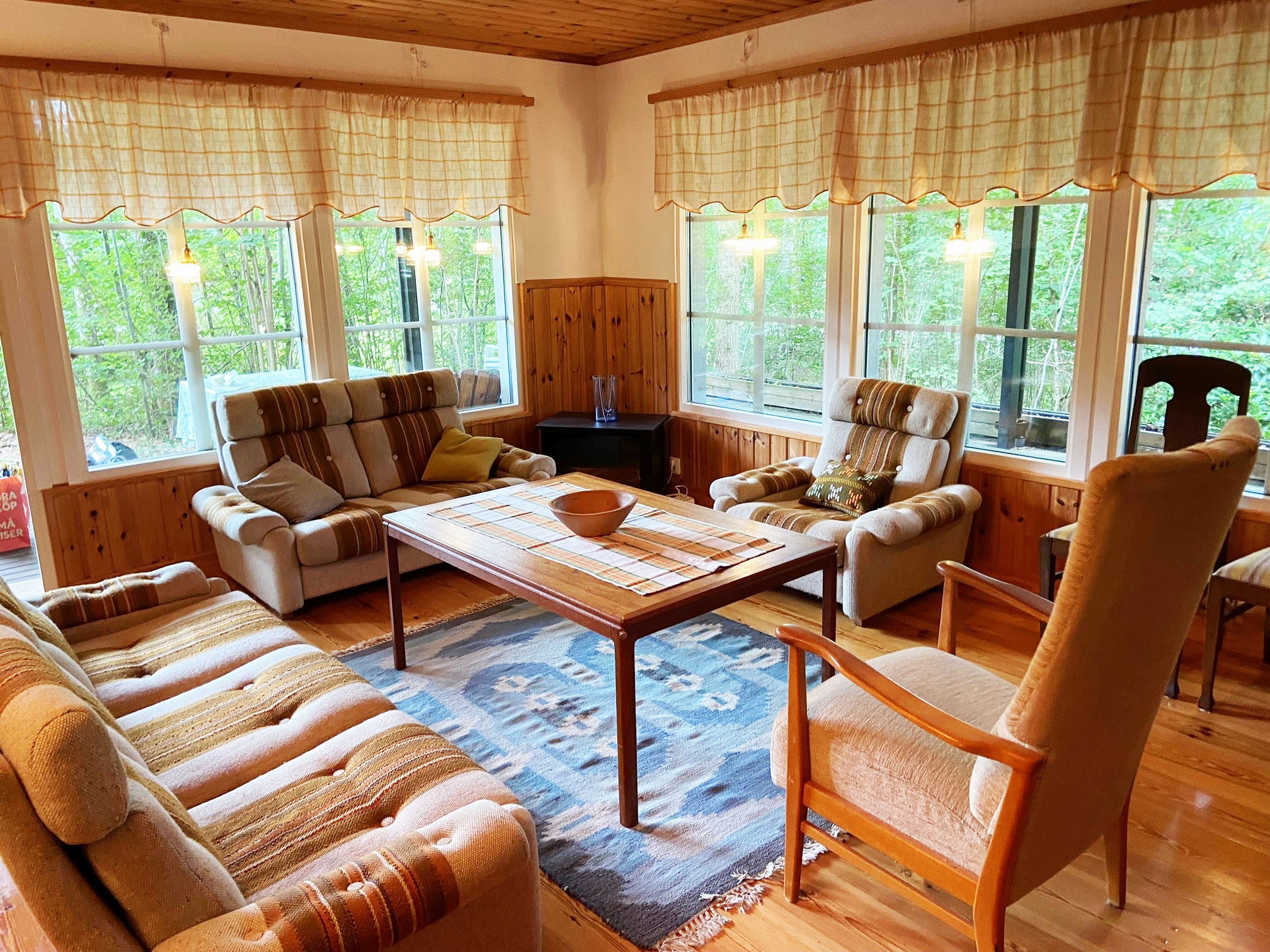The accommodation has a large terrace around almost the entire house and a large natural plot, partly protected from view, to stay in. It is located in a leafy location with bathrobe distance to Flammabadet with heated pools but also to Lagan and its fresh wild waters. A day of bathing ends with advantage in the house's own sauna for a truly pleasant experience.