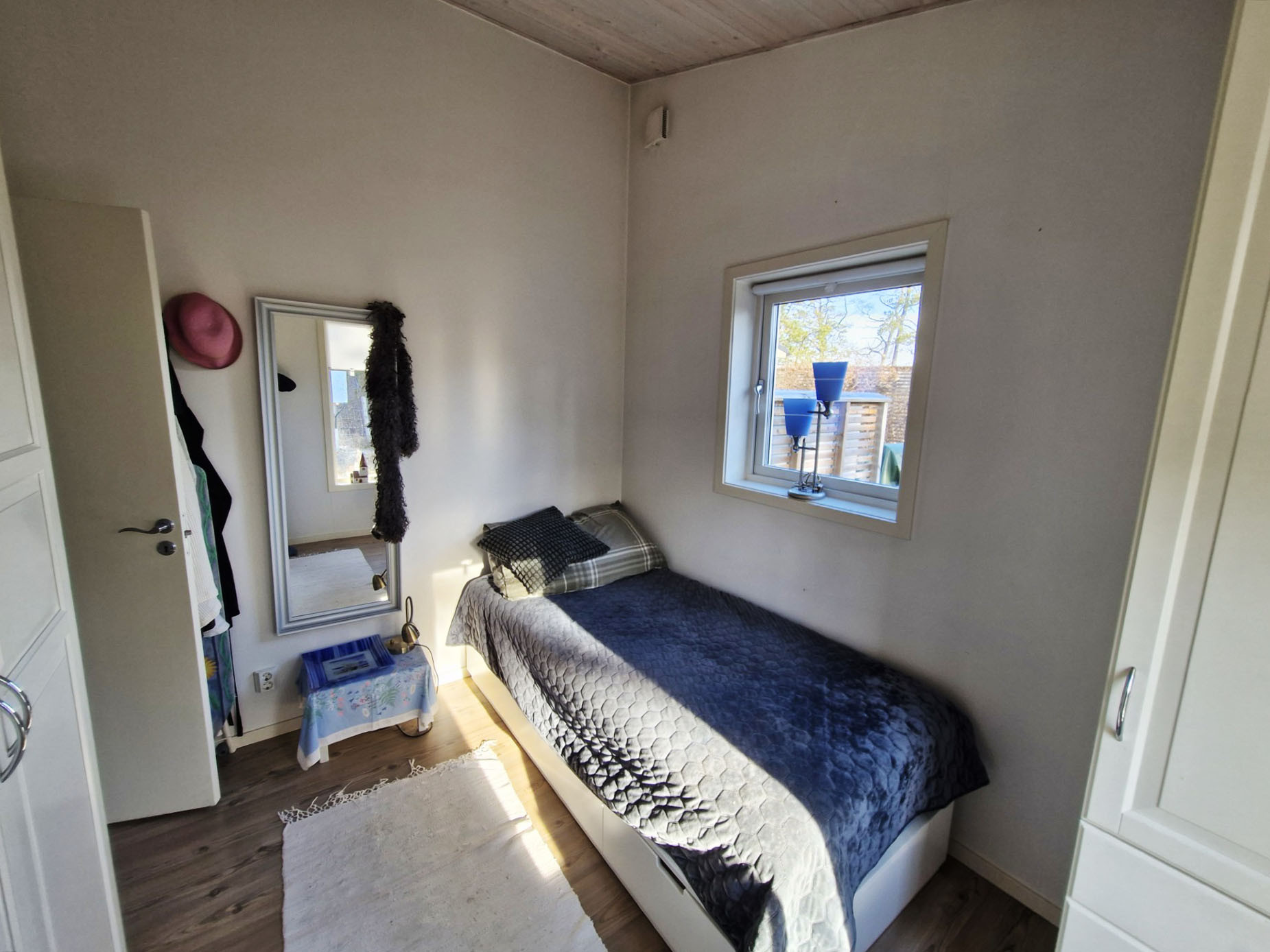 The kitchen and living room have an open floor plan with plenty of light. On the first floor you have one of the bedrooms with a single bed and here there is also a bathroom with a shower. A staircase leads you up to the second floor, where you will find a bedroom with a double bed and a single bed. The next bedroom upstairs has three single beds.
