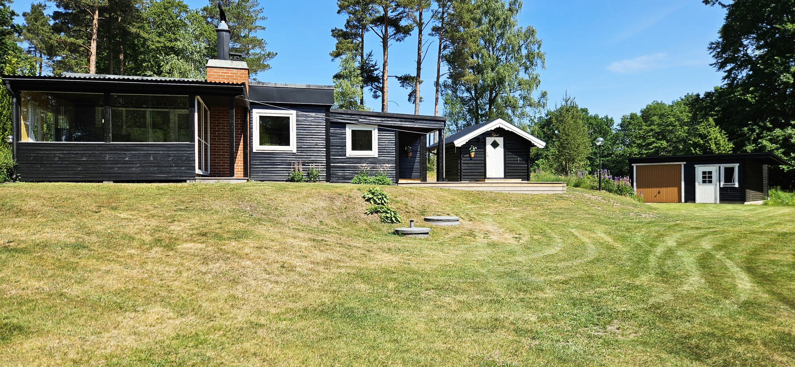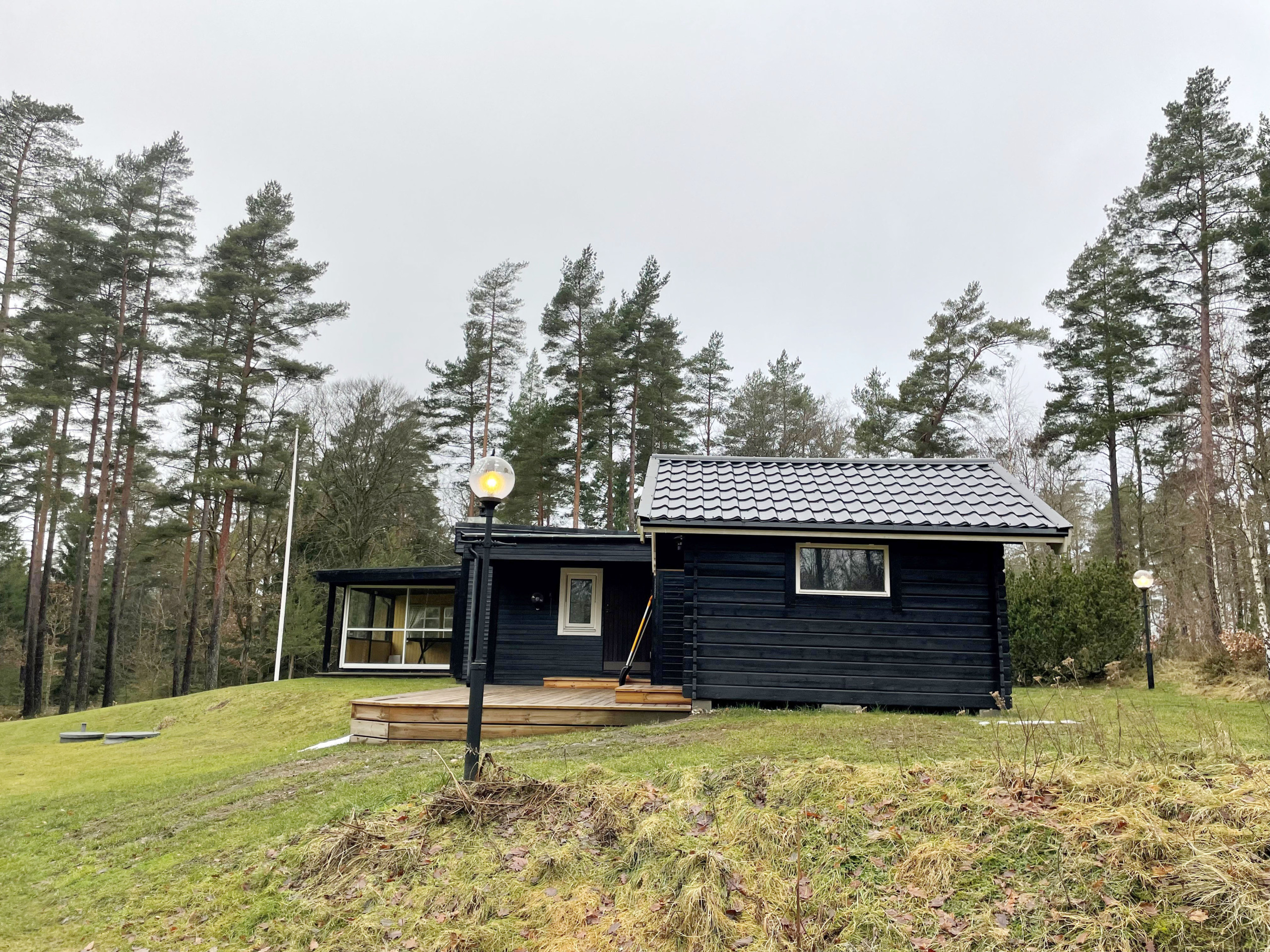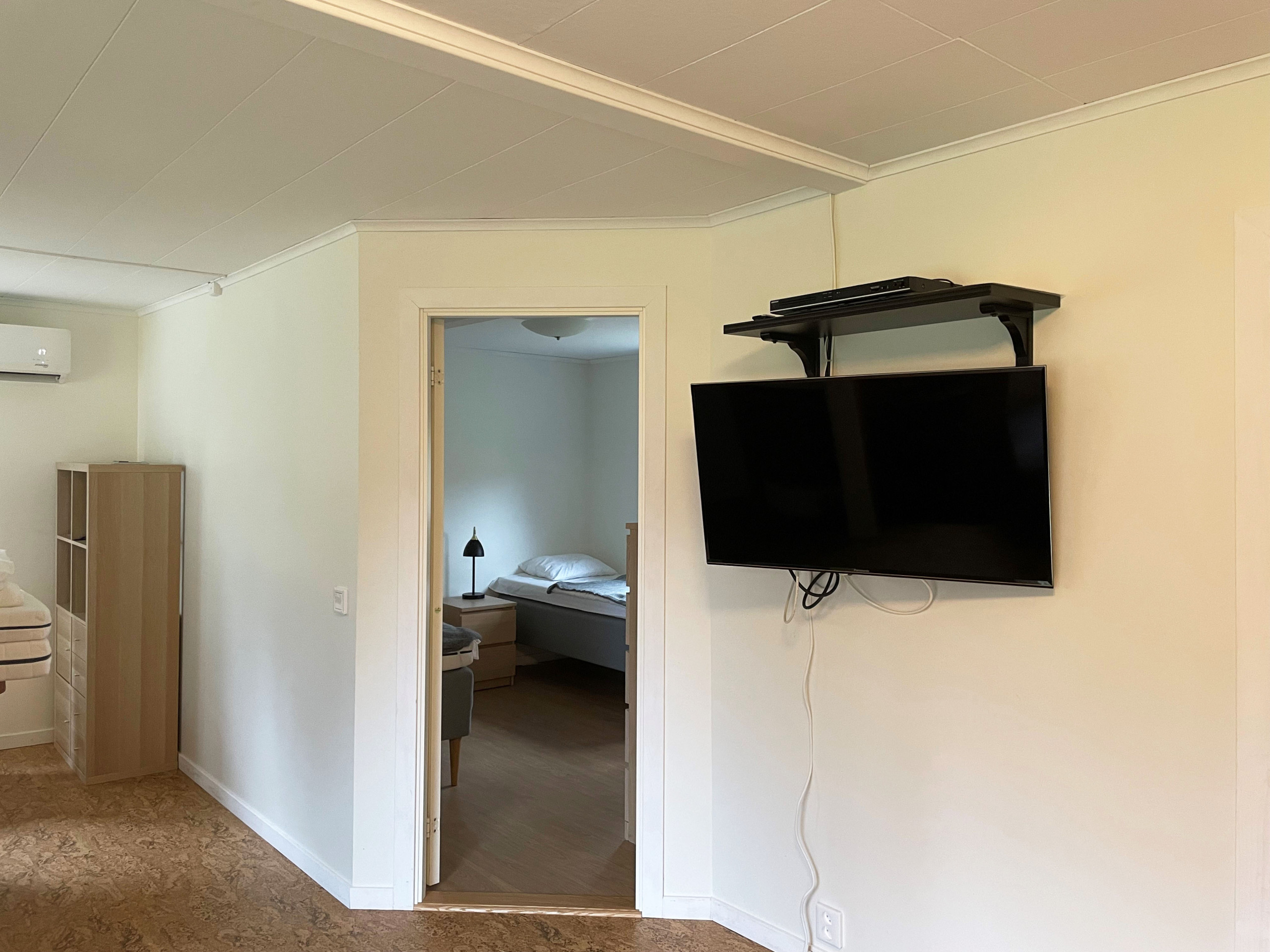 Nice cottage of 60 m2 for max. 4 people located in Björkenäs just 150 m from Bolmen. Björkenäs is located approx. 2 km from Odensjö and 13 km from Lidhult. You have a bedroom with 2 single beds in the cottage and bedroom no. 2 is a separate annex with 2 single beds. If you would rather sleep on the sofa bed in the living room, that is also fine. Kitchen with electric stove/oven, fridge/freezer, microwave. Bathroom with shower and WC and washing machine. Living room with dining area and sofa group with exit to the glazed conservatory where you can sit and enjoy the silence. In the family room there is a wood stove if you want to light a fire. The cottage is completely secluded. There is German TV and you have a large plot with garden furniture and barbecue. There is also an open terrace in front of the house. The house is heated by air heat pump and electric elements.