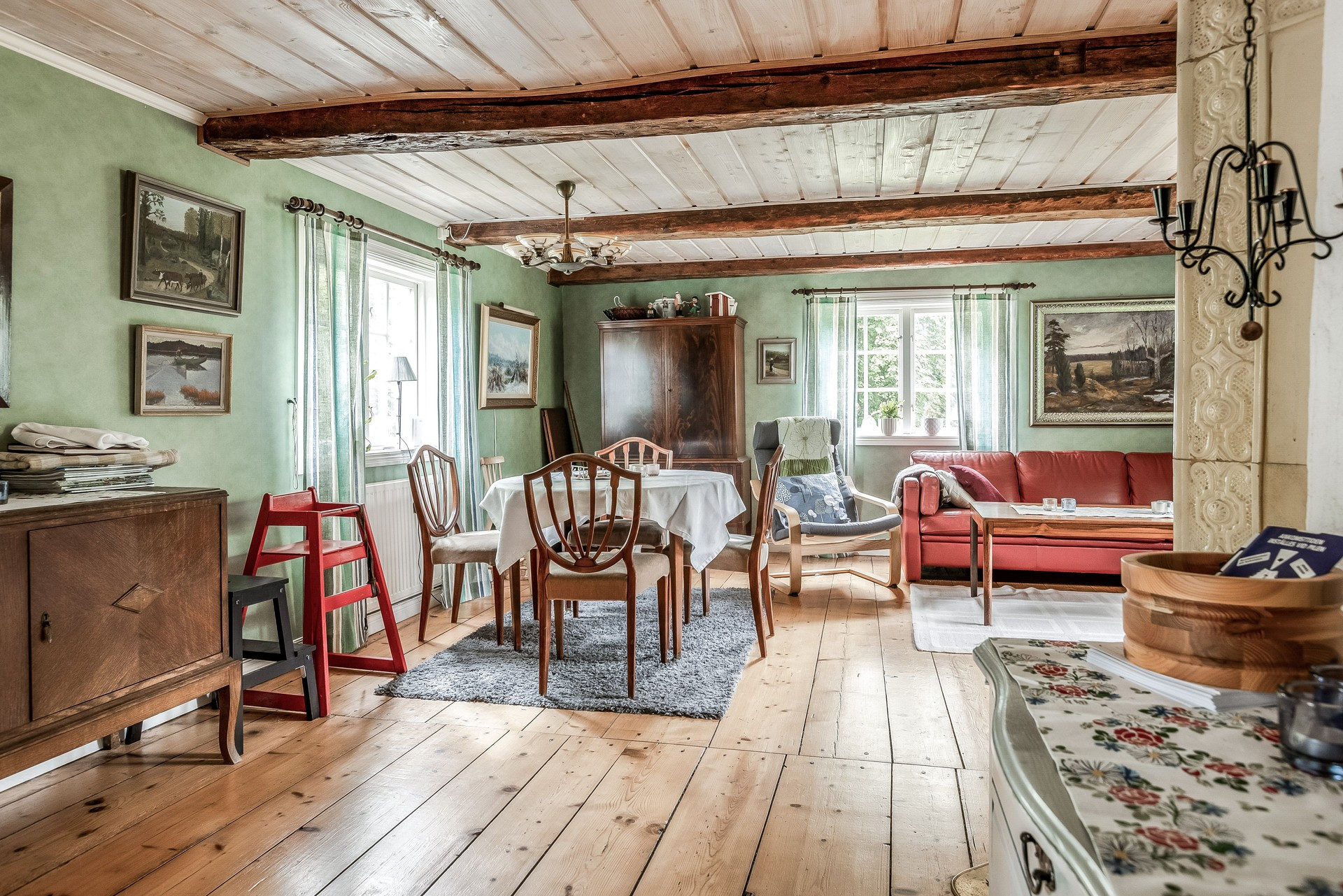 You have a sauna and relaxation room in the house. For colder evenings, there is a fireplace and a tiled stove. It is lovely to sit with a cup of coffee on the glazed veranda.