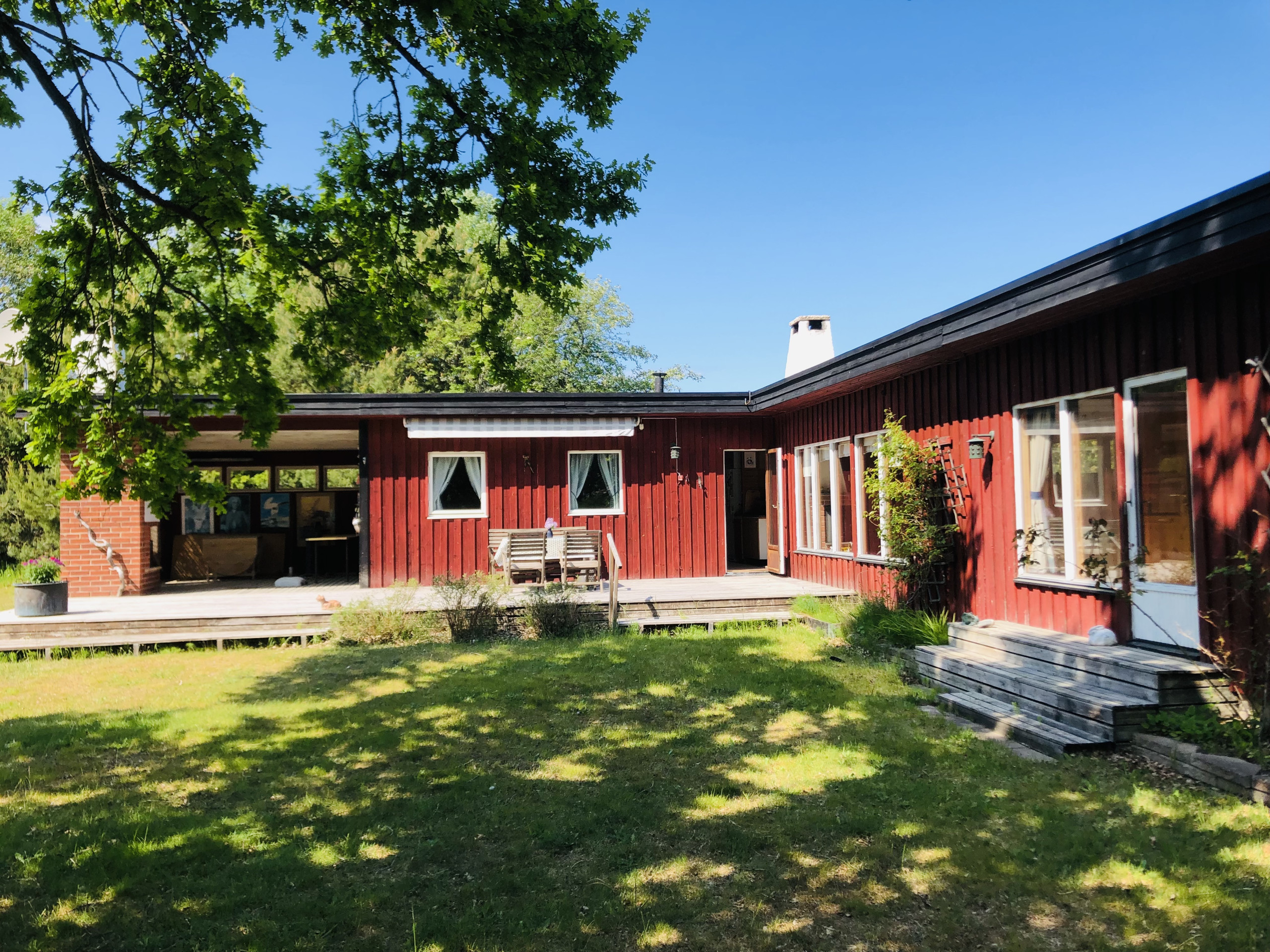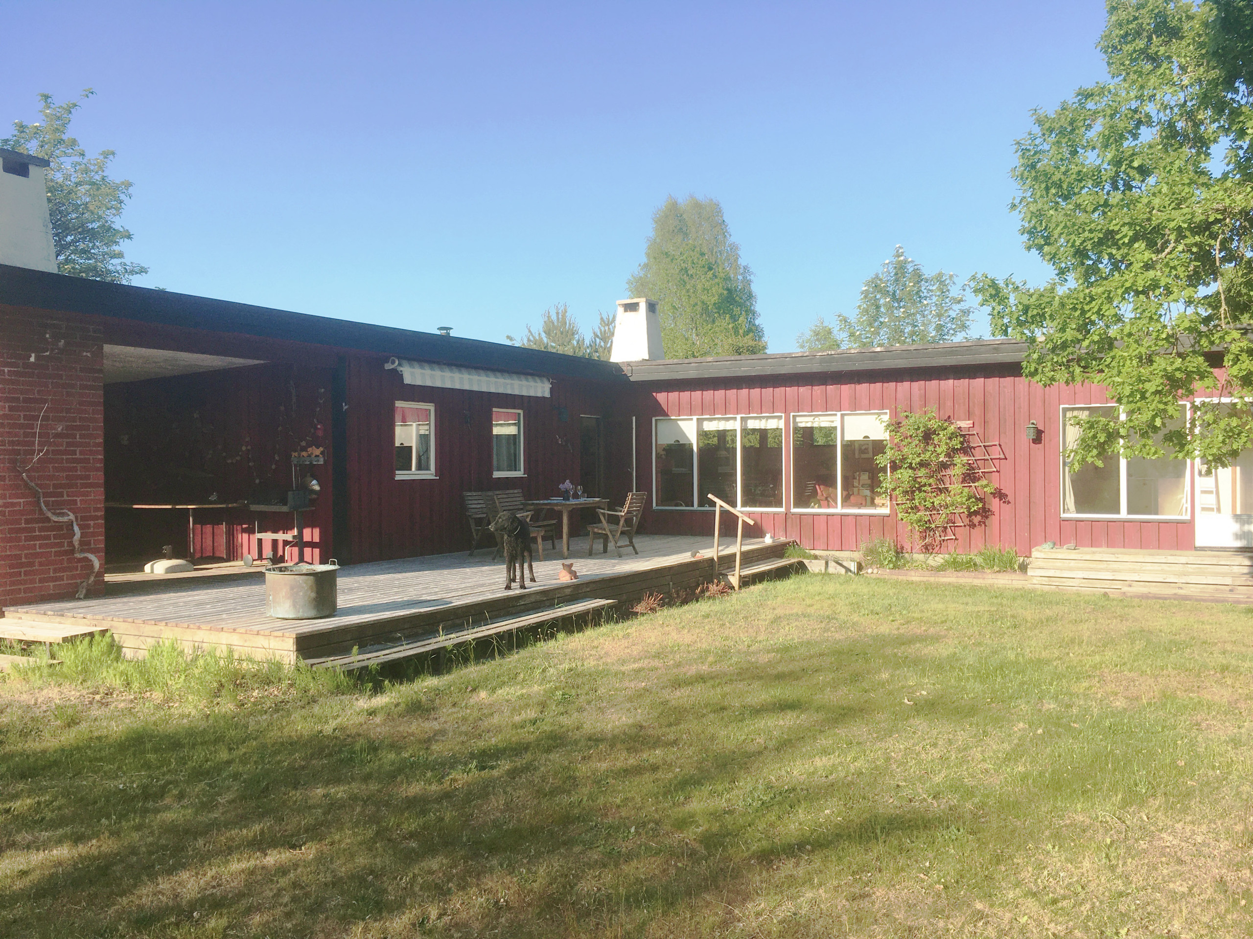 Sauna with shower is in a separate building. Large terrace with where you can eat a good dinners and cozy up in front of the fireplace during the summer evenings. There is also a barbaque. Beautiful, fenced natural plot and lawn. Well behaved dogs are welcome. Calm and peaceful surroundings with meadows and woods, where you can pick both berries and mushrooms.