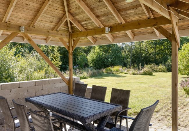 Nice and fresh holiday home in Sjöared in Halland on the border with Småland. The house is well equipped with three bedrooms (one of which is a walk-through room) and a sofa bed in one of the living rooms. Then another bedroom with a kitchenette is included in the annex house. Right next to it there is also an extra bathroom with WC and shower. In the holiday house itself, you have a bathroom with a jacuzzi and an open-plan layout with large living rooms and a large terrace at the back. You have free Wifi / fiber and an Apple TV. Perfect for larger groups or companies as you can also rent the cottages SE02025 and 26 which are next door.