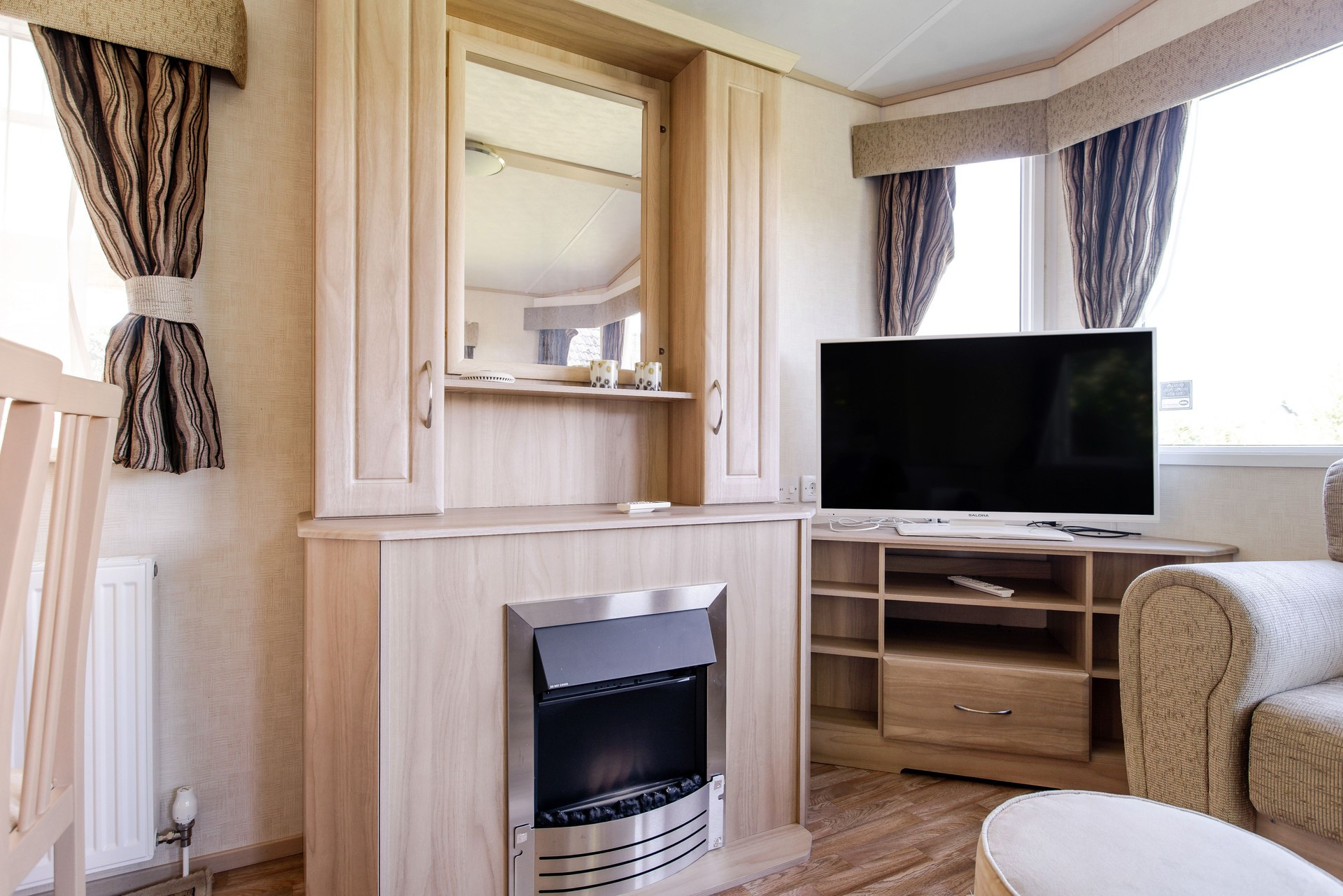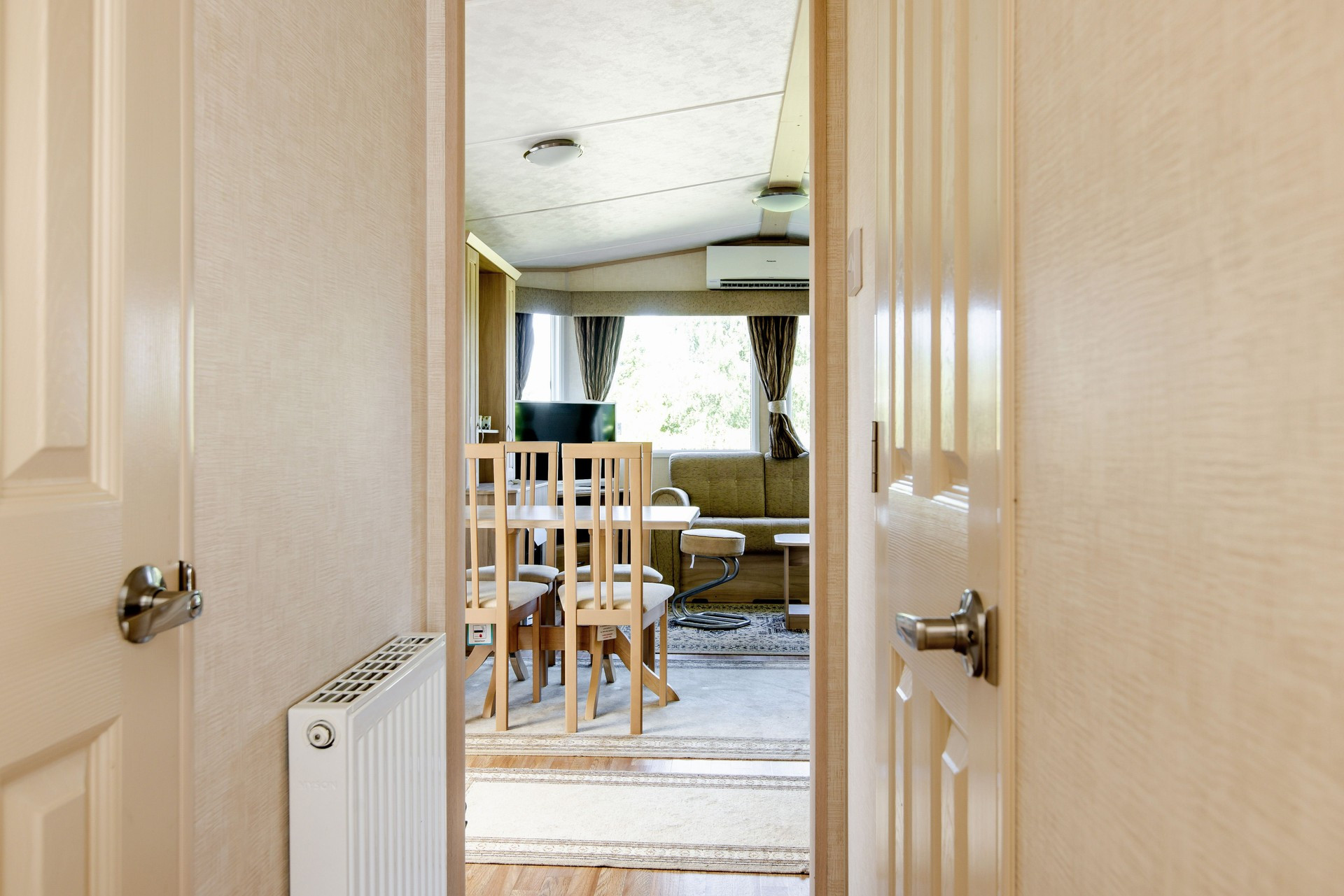 Fresh mobile home in Sjöared, Halland. Your accommodation has 2 bedrooms (one with a double bed and one with 2 single beds which is more suitable for children 1.80 x 60 m). Shower and toilet are available. You have a large terrace of 28 m2. You have free access to wifi / fiber and there is a TV in the caravan. If you are a larger group, you can also rent the cabins SE02024 and 25 which are in the neighboring area.