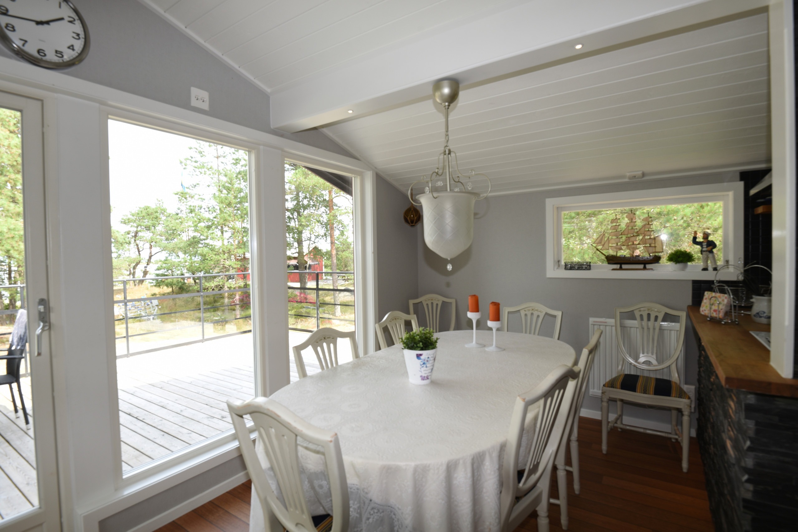 Here you are warmly welcomed to a lovely cottage on the shore of Lake Vänern and with a fantastic panoramic view. The holiday home has 3 cozy bedrooms, 2 of which are inside the house, both equipped with a double bed. In addition, there is a bunk bed with 2 sleeping places in the associated annex. The house has an open plan between the living room and the nice, functional kitchen. There is also a fresh bathroom. From the terraces surrounding the house you can enjoy the beautiful lake view and a relaxing stay.