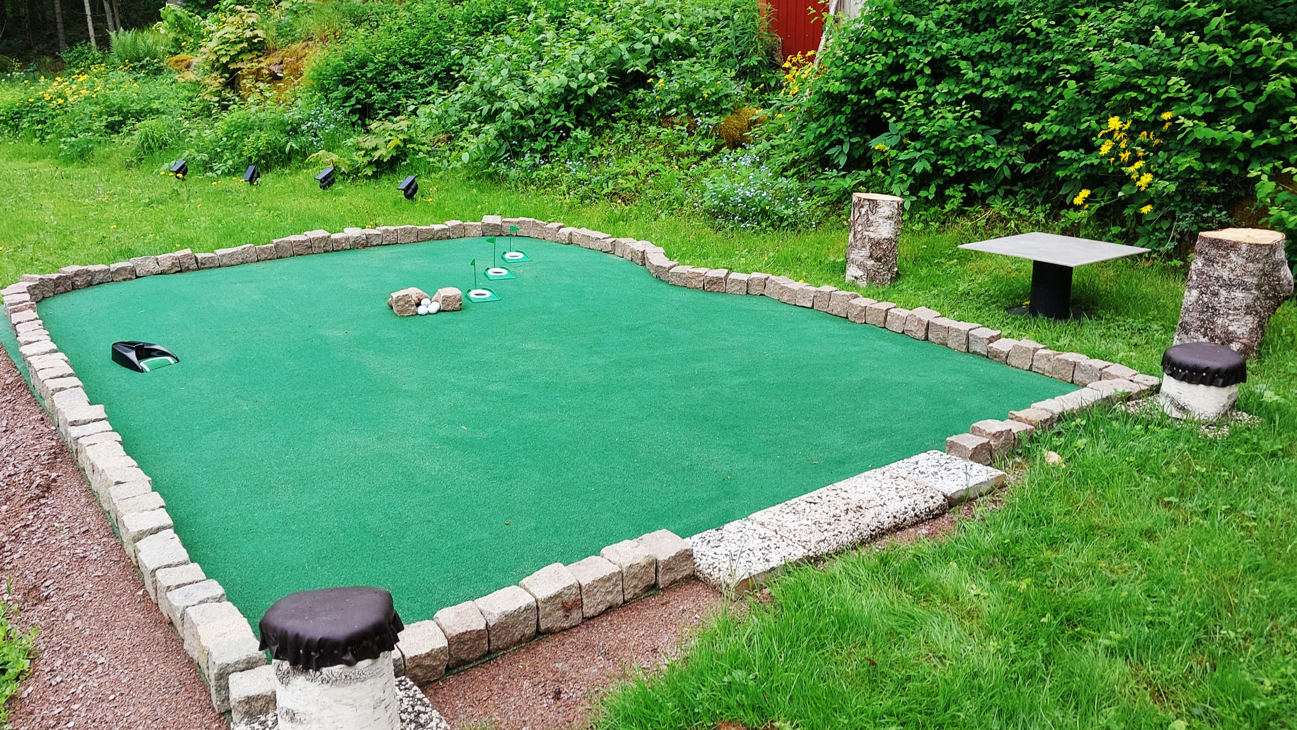 One of the cottage's big draws is the proximity to Miskarp Golf Course, which is right next door. For golf enthusiasts, this is a dream - you literally have the golf course a stone's throw away, and there is the option of booking guest rounds. After a day on the track, you can enjoy a good meal or a drink at the track's own restaurant and bar. For those who want to practice their shots at home, there is a mini putting course in the cottage's garden.