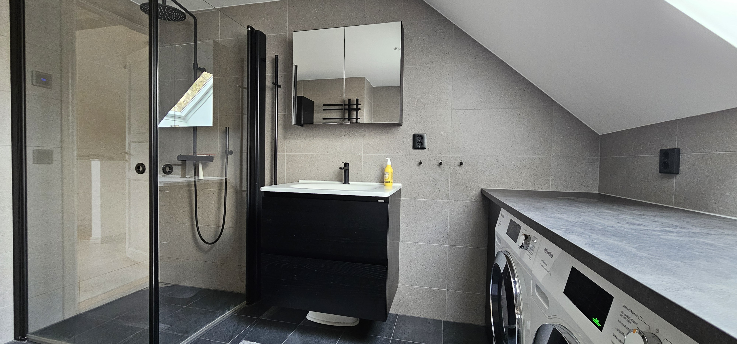 The kitchen is fully equipped with everything you need: induction hob, oven, microwave, dishwasher, large fridge and freezer, coffee maker, toaster and plenty of workspace. Fiber internet, washing machine, tumble dryer, fireplace and heat pump make the stay comfortable and pleasant all year round. Note: Outdoor furniture is available from May 1st to October 1st.