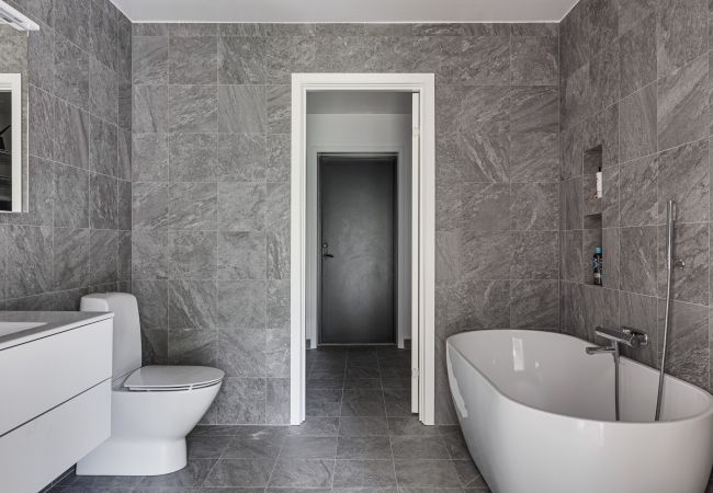 The house has four bedrooms. The master bedroom is equipped with a 1.80 m double bed and an adjustable desk for work. One bedroom has a bunk bed with space for up to three people. The other two bedrooms have double beds of 1.40 m each, one of which also has a desk and computer screen. There is a large and modern fully equipped kitchen, adapted for large dinners and baking, and a spacious living room with a large sofa facing the forest and a glimpse of the lake. The house has two fully tiled bathrooms in natural granite, with both a shower and a bathtub. There is also a separate laundry room with a washing machine, dryer and its own entrance. For a comfortable temperature all year round, there are two heat and AC pumps. Fiber internet, TV with Google Chromecast, cinema sound and HDMI connection as well as two dedicated workplaces make the house well suited for remote work. For quiet days and evenings, there are plenty of board games and books.