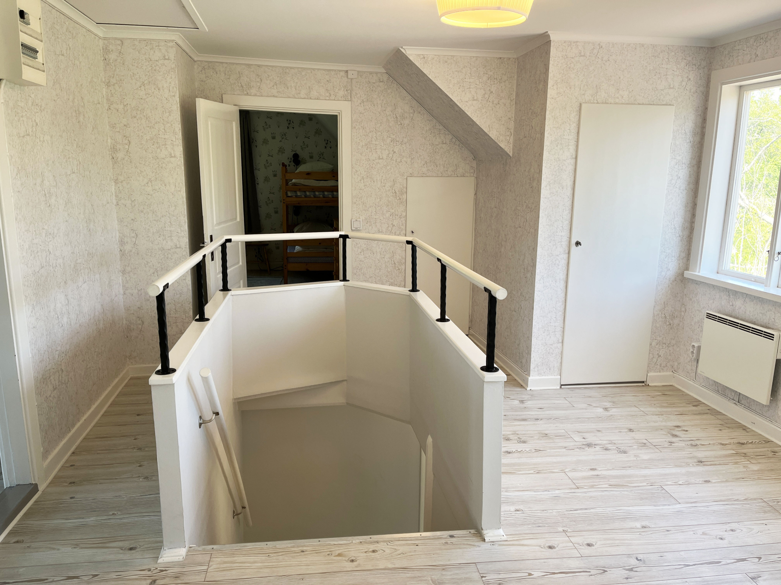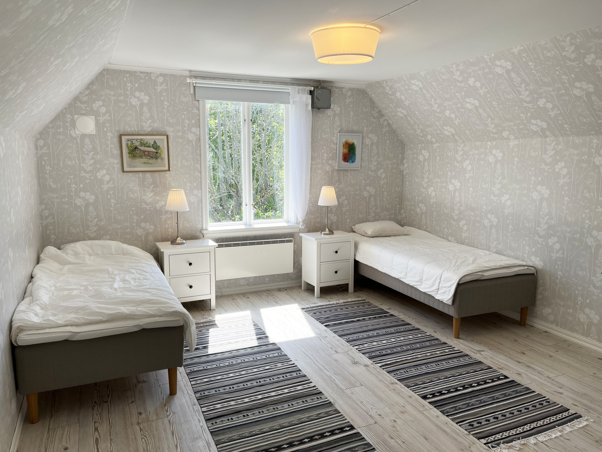 Large house that offers a fantastic view of Emån. Just 20 meters away is the rowing boat if you want to take a fishing trip or take a cooling dip during hot summer days. On the first floor is the kitchen, which is modern and fully equipped with everything you need to prepare good meals. Adjacent is the dining area with access to the balcony deck where you can grill, sit and eat or just enjoy the view. Cozy furnished living room. Down here, two of the bedrooms also have two single beds in each. At the entrance is a large and nice bathroom. On the second floor there are three more bedrooms with two bunk beds in one and two single beds in the other two.