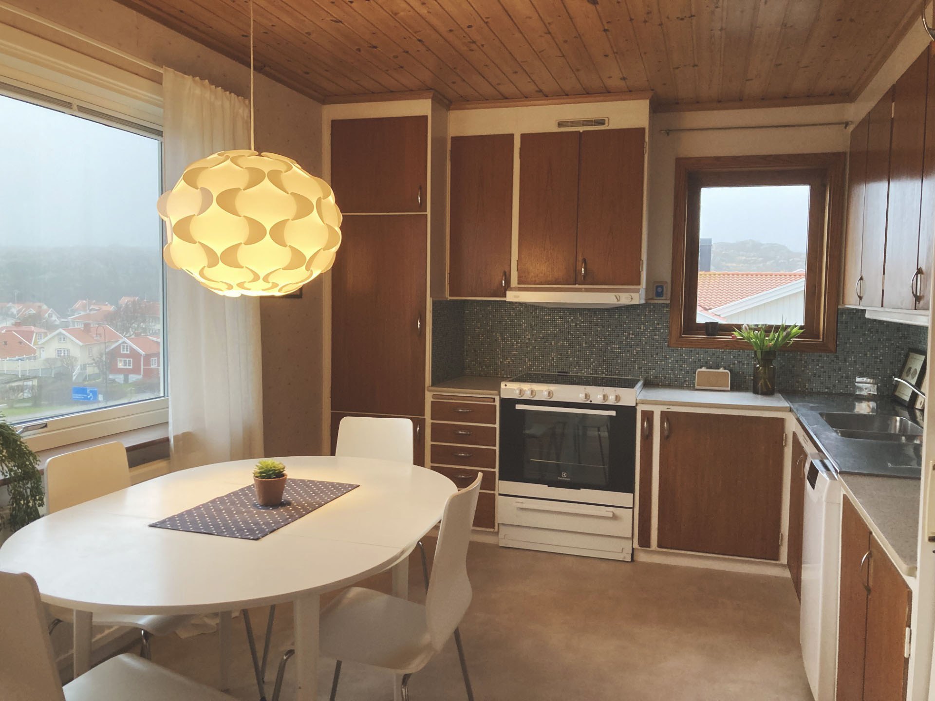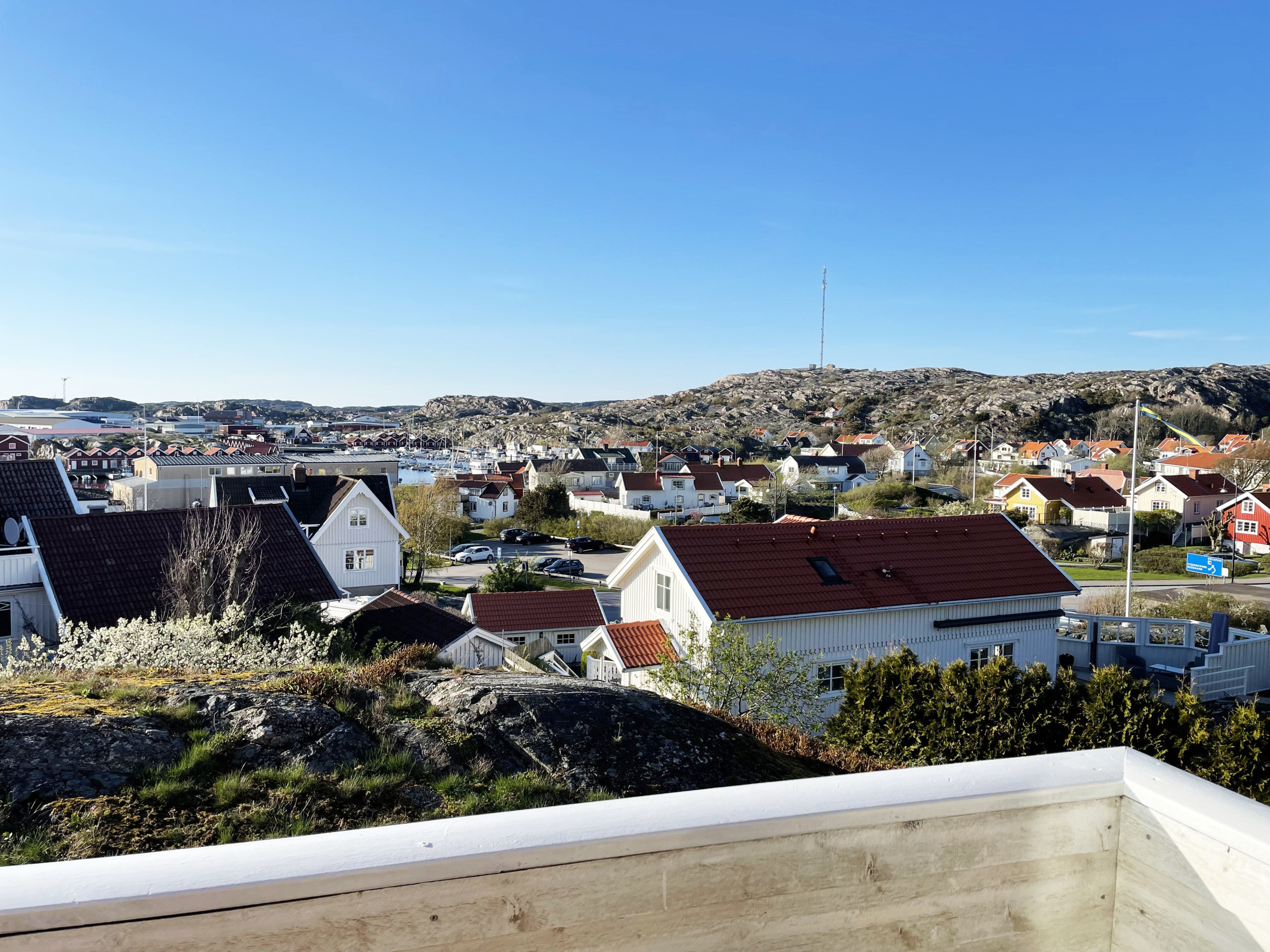 Rustic spacious villa on three floors at the bottom of southern Tjörn. There is room for 2 families here. On the first floor on the ground floor there is a bedroom with a double bed, a shower with toilet that will be completely renovated for the summer of 2025, as well as a large lovely living room and access to the patio with furniture and barbecue.