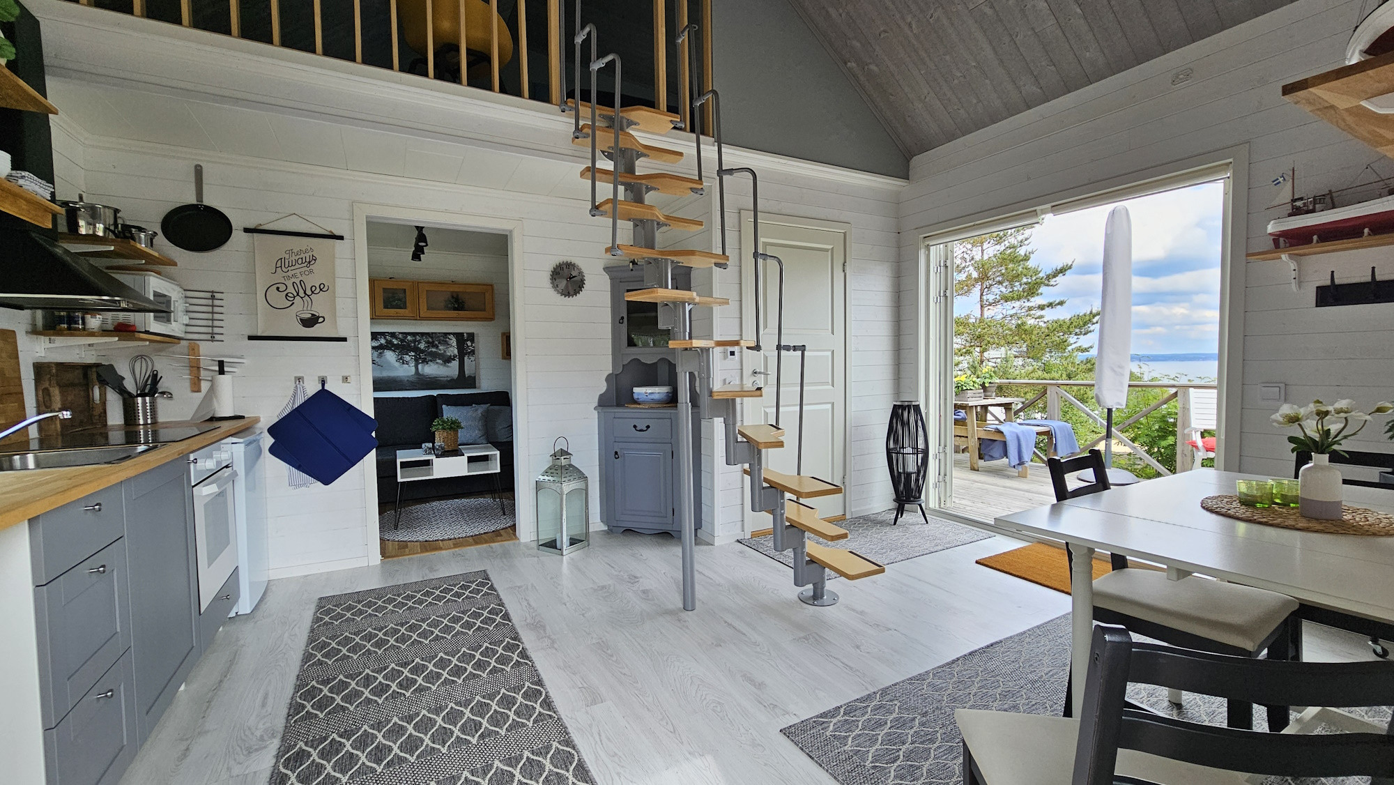 Welcome to this fresh cottage built in 2019 with a view over Hakefjorden. Here you stay in a quiet area close to both sea and nature, only 600 meters from a natural beach. The cottage has a bright and open floor plan with kitchen, dining area and living room in one, as well as large windows that let in plenty of light and open up towards the terrace.