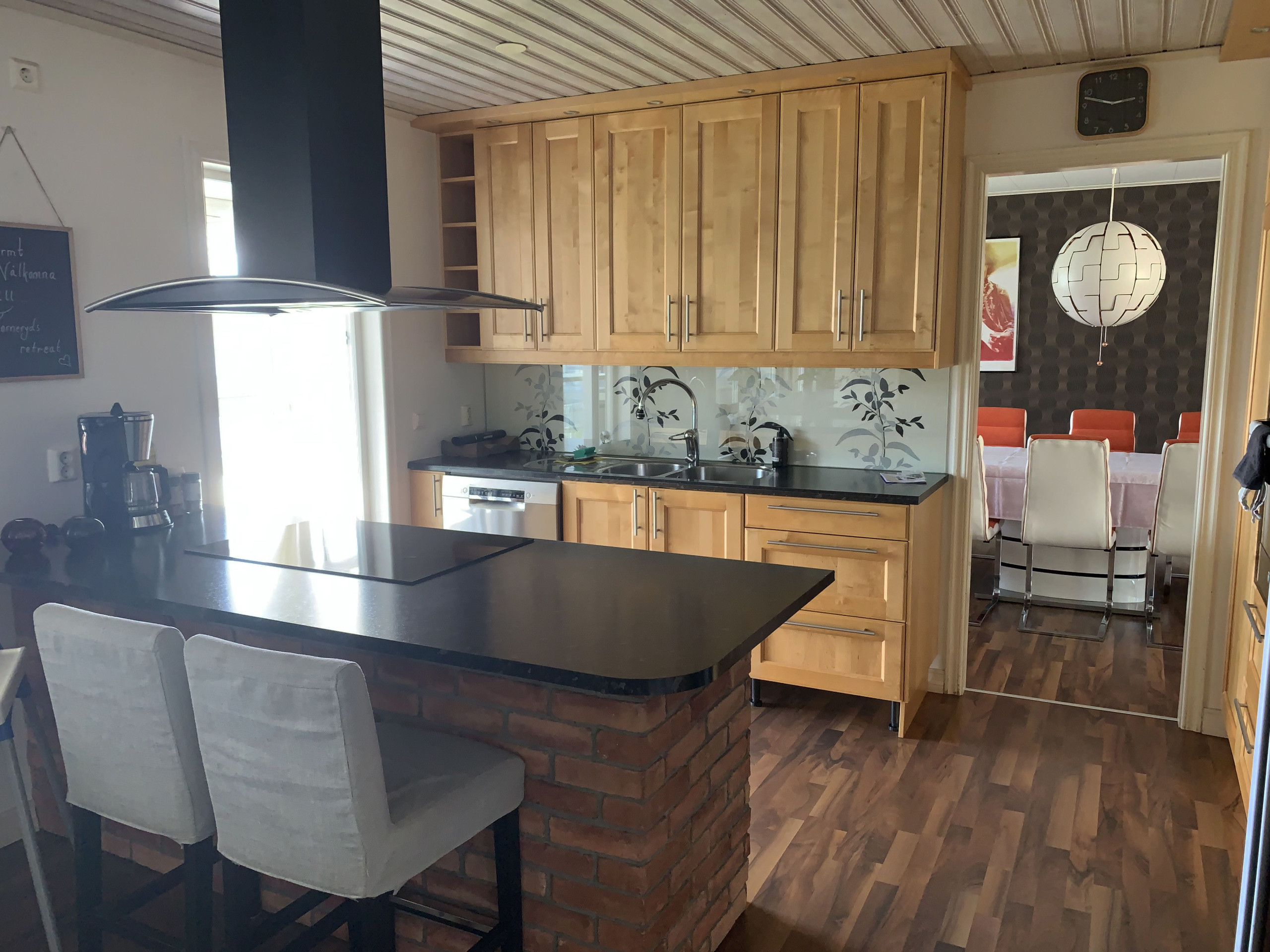 Welcome to Blekinge and Ronneby and this fantastic house. Beautifully located with a swimming area and a jetty, in the immediate vicinity. Large balcony that runs along the back of the house and with a wide view of Härstorpssjön. The balcony is glazed in connection with the kitchen.