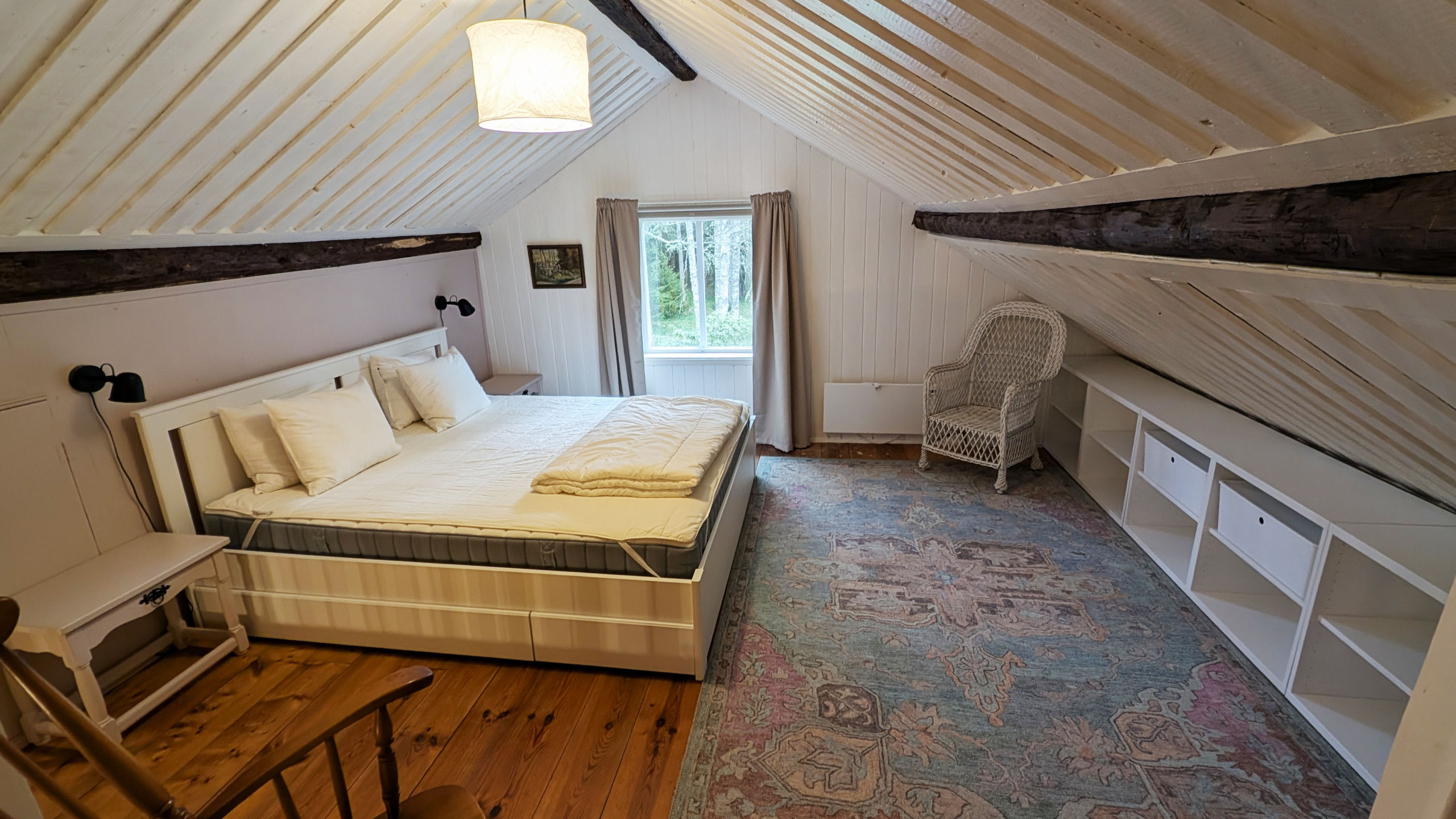 The cottage in Mårarp is a genuine red cottage from 1929, located in a მშვიდ and tranquil landscape between Ljungby and Växjö. Here you are welcomed by a warm and personal atmosphere where the old has been preserved while important parts have been carefully renovated. The house offers a newer kitchen and bathroom as well as refreshed surfaces, but still retains its original layout and charm. The accommodation is perfect for a family or group seeking peace, nature and an authentic Swedish cottage experience. There is space for up to 4 people distributed across two bedrooms, one of which is an open loft like bedroom with a double bed and one separate bedroom with two single beds as well as a crib. The living room invites relaxation with a sofa, armchair and TV, while the dining room offers space for shared meals and game nights. The kitchen is fully equipped for both simple meals and baking. An additional lounge with access to the garden creates a natural gathering place for both children and adults. The large garden and adjoining forest provide plenty of space for play and exploration. There is also a playground, outdoor furniture, barbecue and opportunities for activities such as kubb and cycling. Please note that the water in the house contains iron which gives it a brownish color. It is completely safe to use for showering and washing dishes, but drinking water is recommended to be brought or purchased.