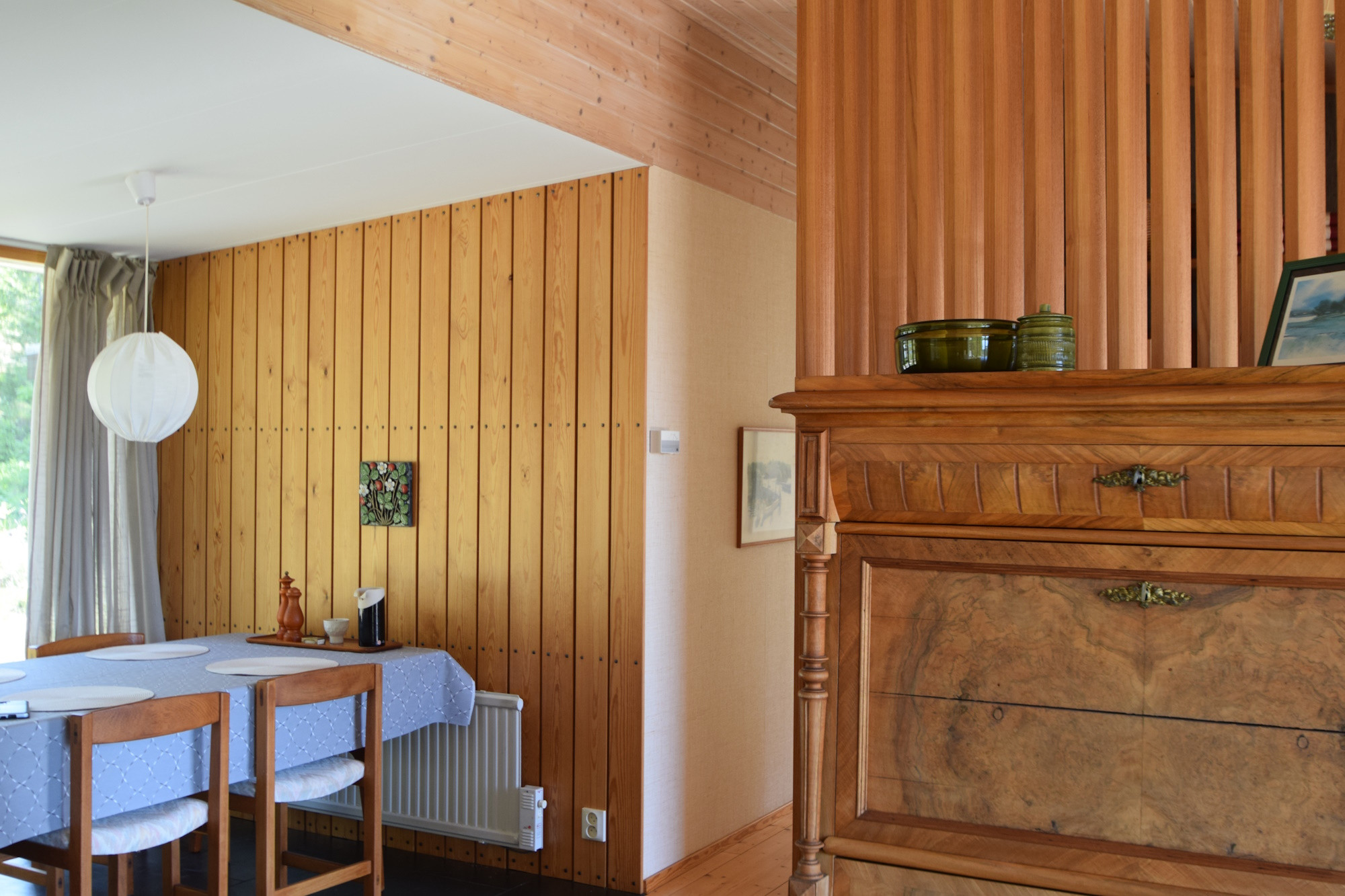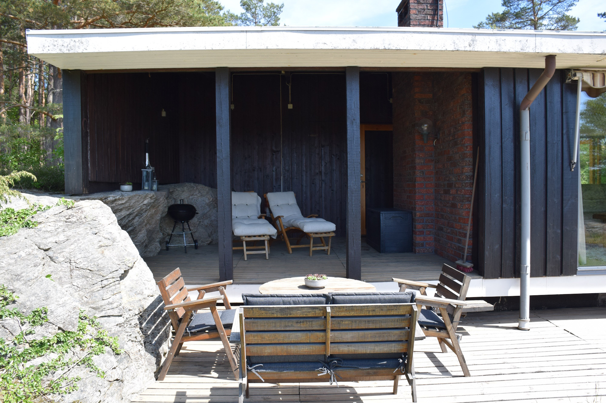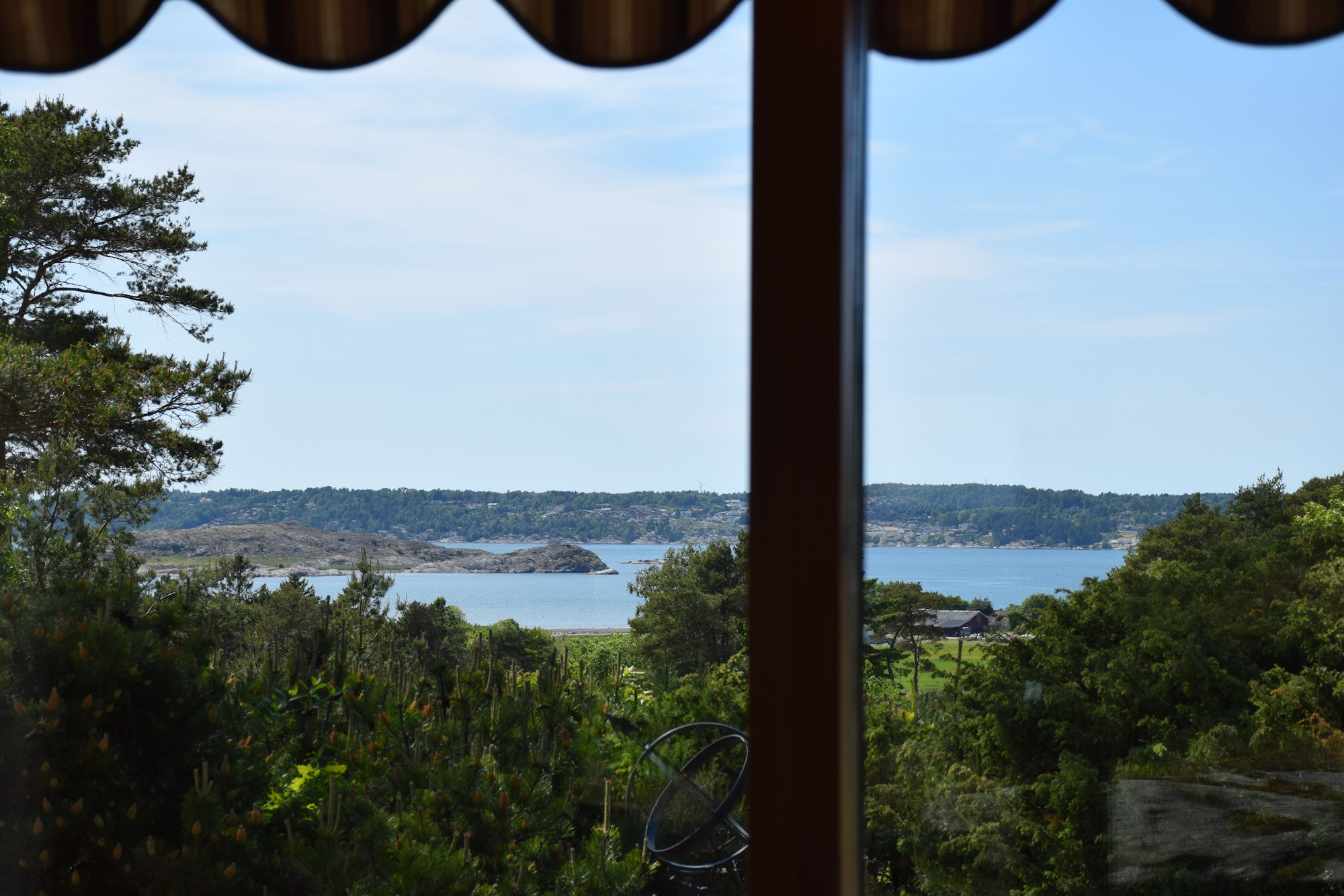 Welcome to this charming architect-designed holiday home, beautifully situated on a hilltop with a lovely glimpse of the sea and nature right outside your door. The house is privately located at the end of a cul-de-sac, surrounded by forest and rocks where elk and deer sometimes pass by.
