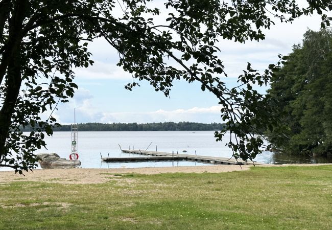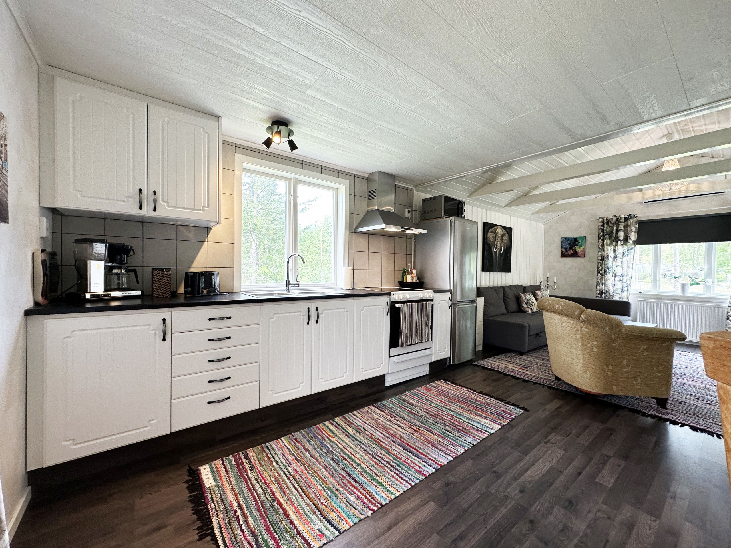 Close to a very nice and family-friendly swimming area with jetty, barbecue area and playground equipment such as swing and slide. The forest and land around the cabin are rich in berries and mushrooms.