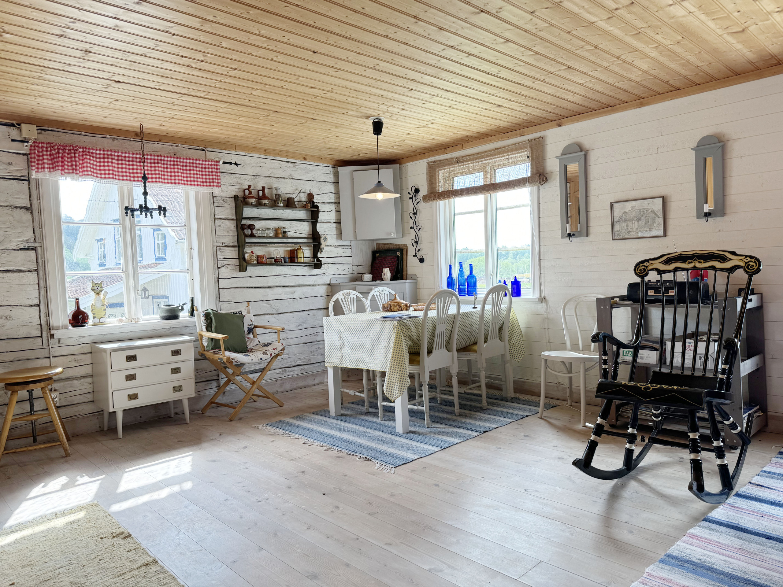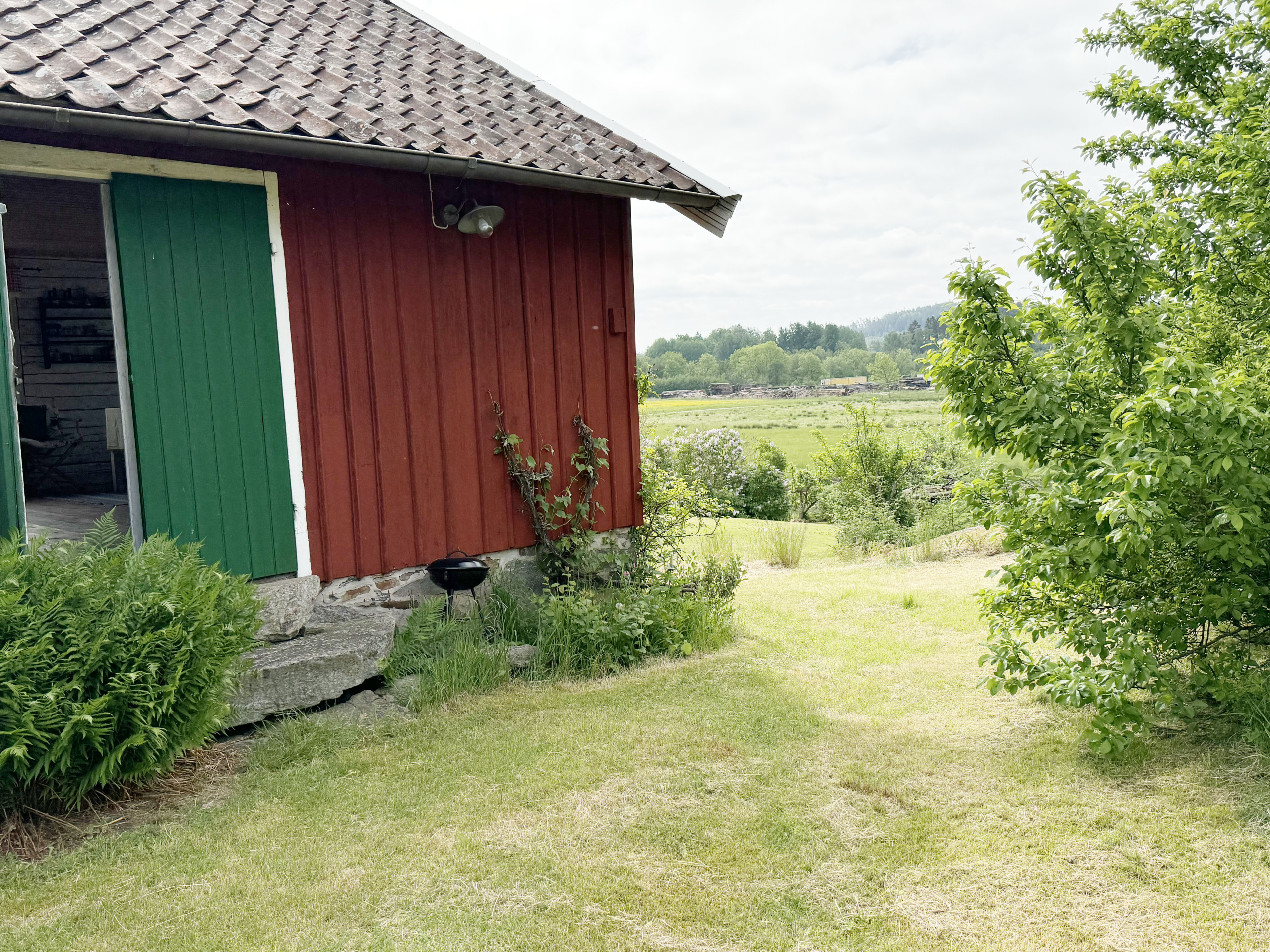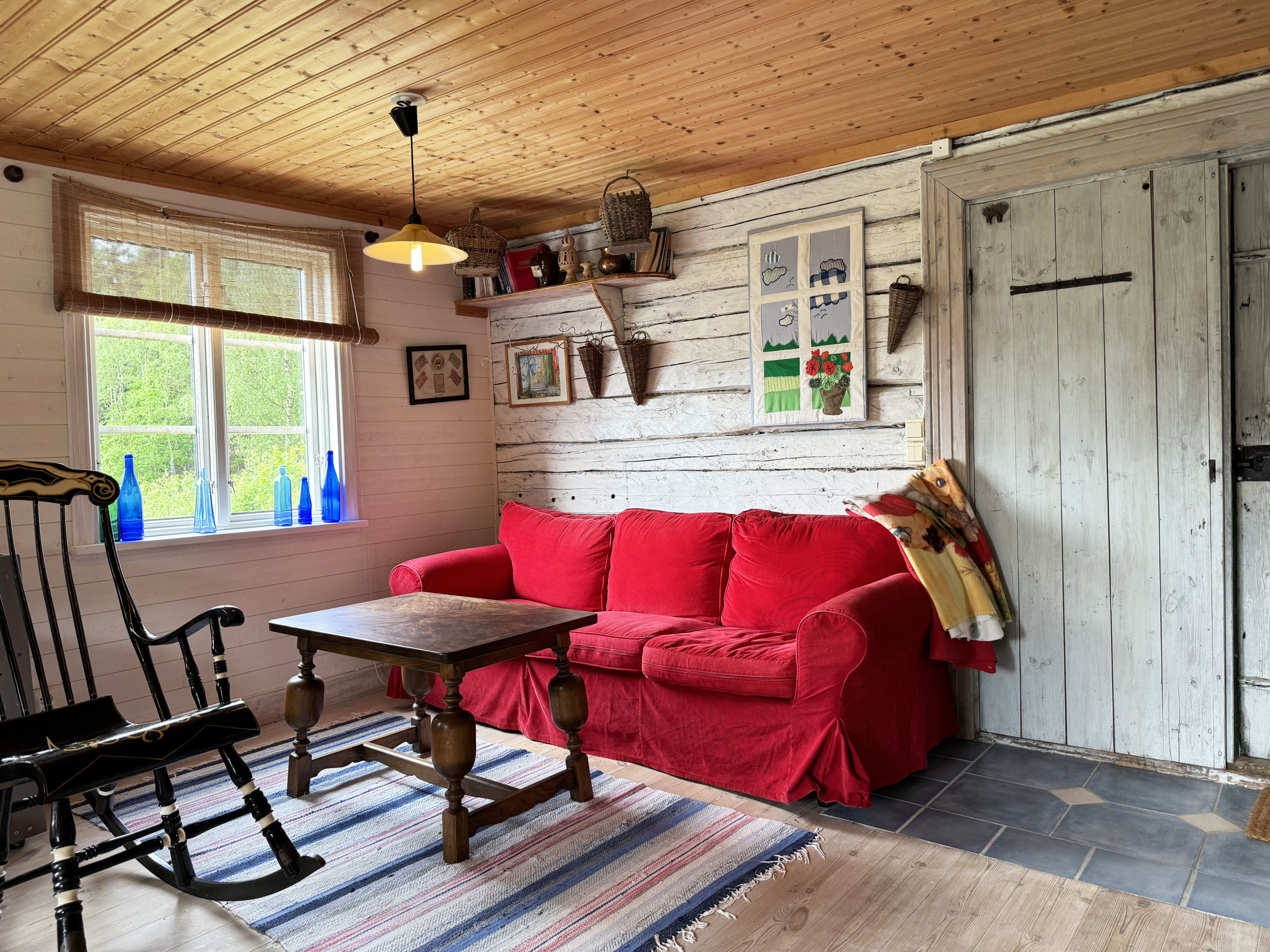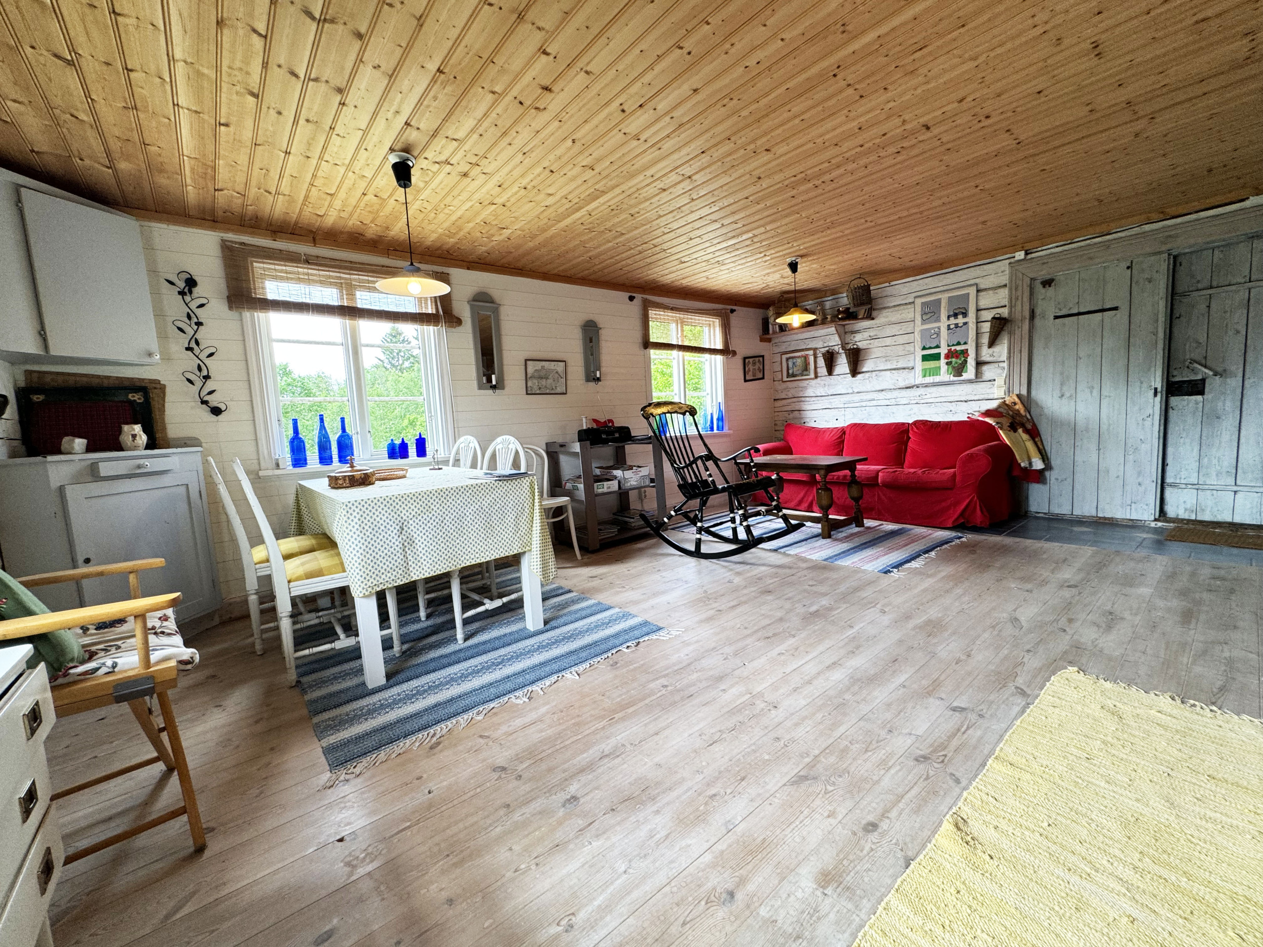 Special summer stay on a historic farm. Exciting and appreciated. Large family room with open plan kitchen. Bathroom with shower. A bedroom with a double bed, a bunk bed and a single bed for a child under twelve. Rustic wooden walls and floors. Small garden with outdoor furniture and barbecue for cozy barbecue evenings.