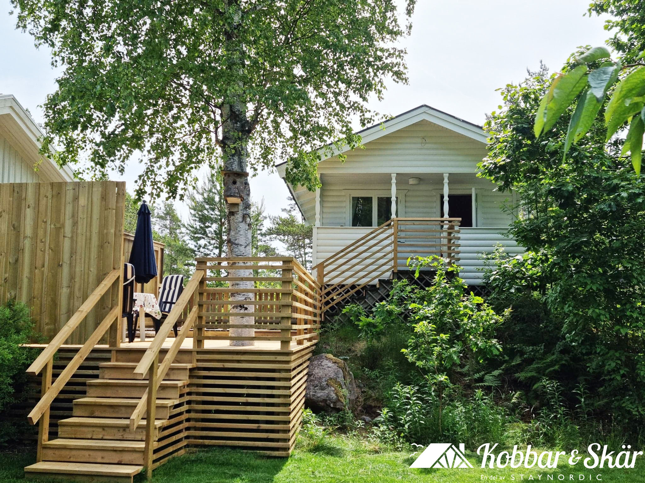 Outdoors, there are two lovely seating areas – one covered and one by the gable of the house – where you can enjoy your morning coffee or a barbecue in the evening sun. The large plot (approx. 2000 m²) is framed by dramatic Bohuslän cliffs and soft greenery – perfect for children to play, nature lovers, and relaxation. Three parking spaces are available on the plot, and the house is pet-friendly, so your dog is also welcome.