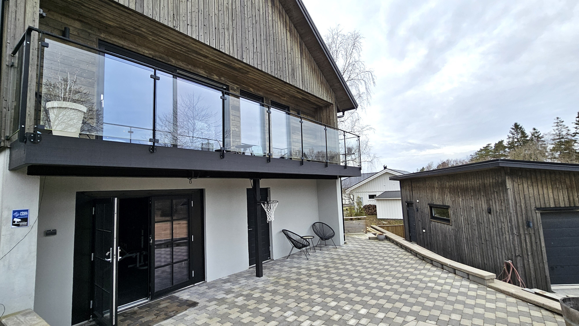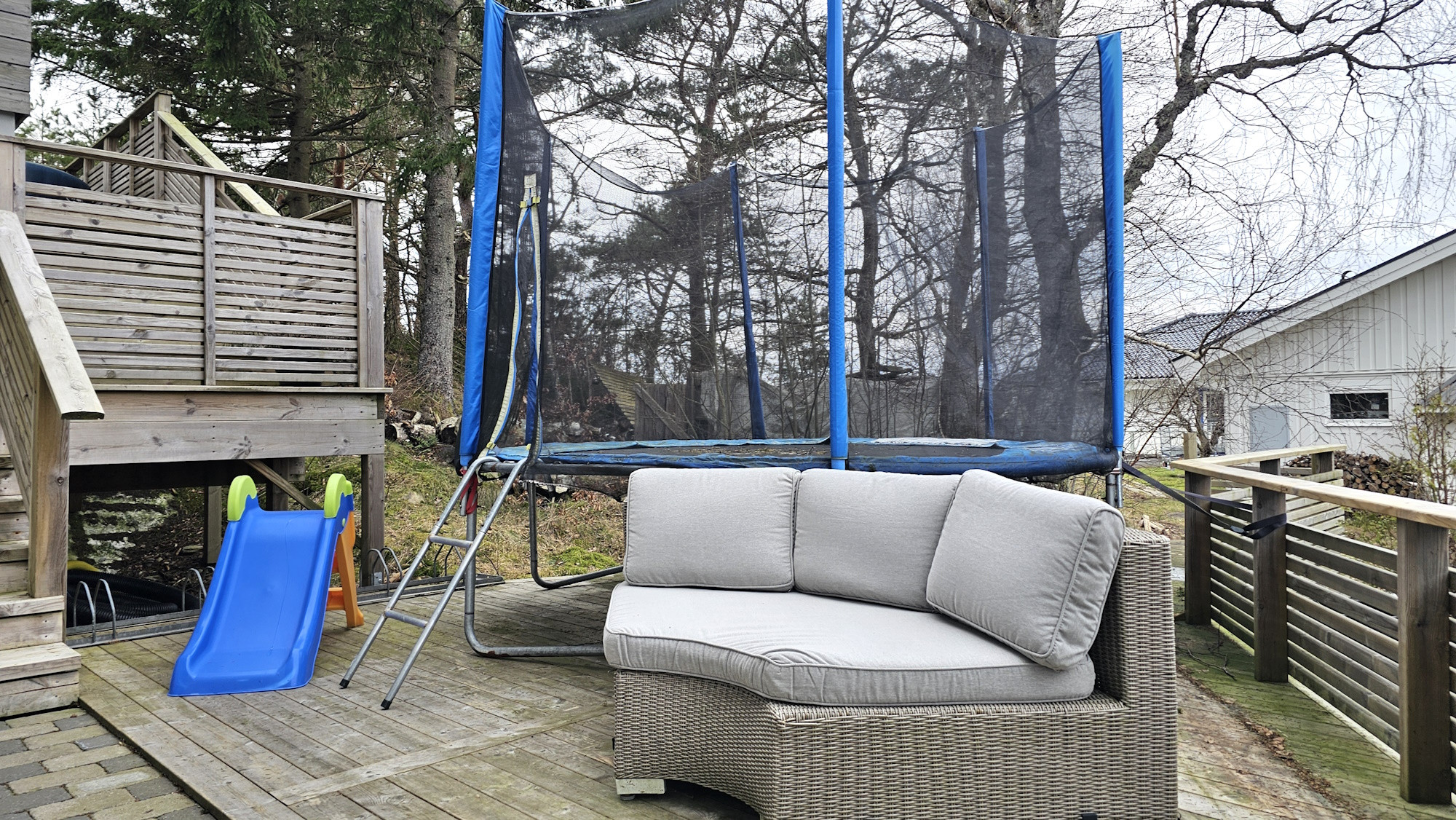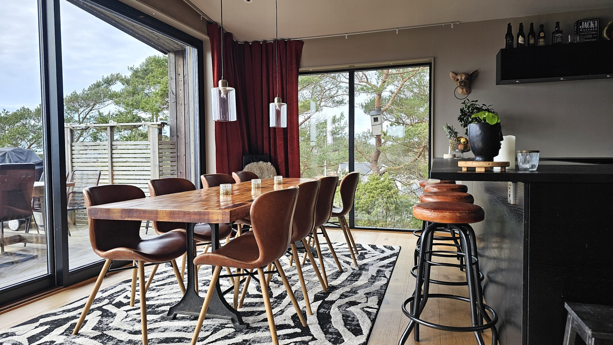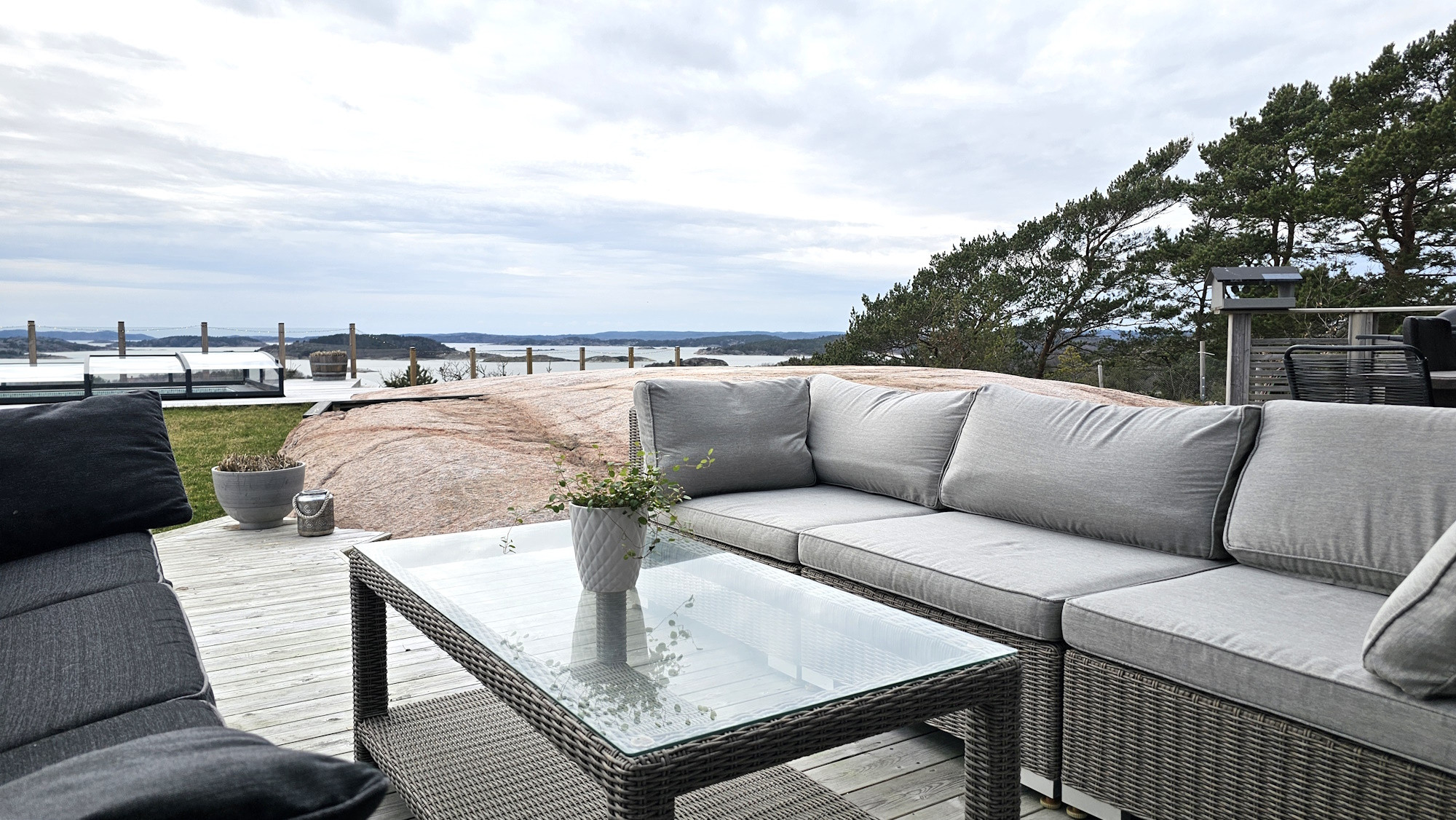 The pool area is a private oasis with sun from early morning until late evening. The heated saltwater pool is beautifully integrated into the natural rock and framed by a fantastic view over Stigfjorden. The terrace offers plenty of space for relaxation and outdoor dining, complete with a dining table, lounge furniture, sun loungers and a gas grill. For children, there is a trampoline and swings, and for adults a fully equipped gym with treadmill, crosstrainer, free weights and Apple TV. The house is also pet friendly and has a small dog enclosure next to the property. This is a place where comfort, nature and luxury meet in perfect harmony.