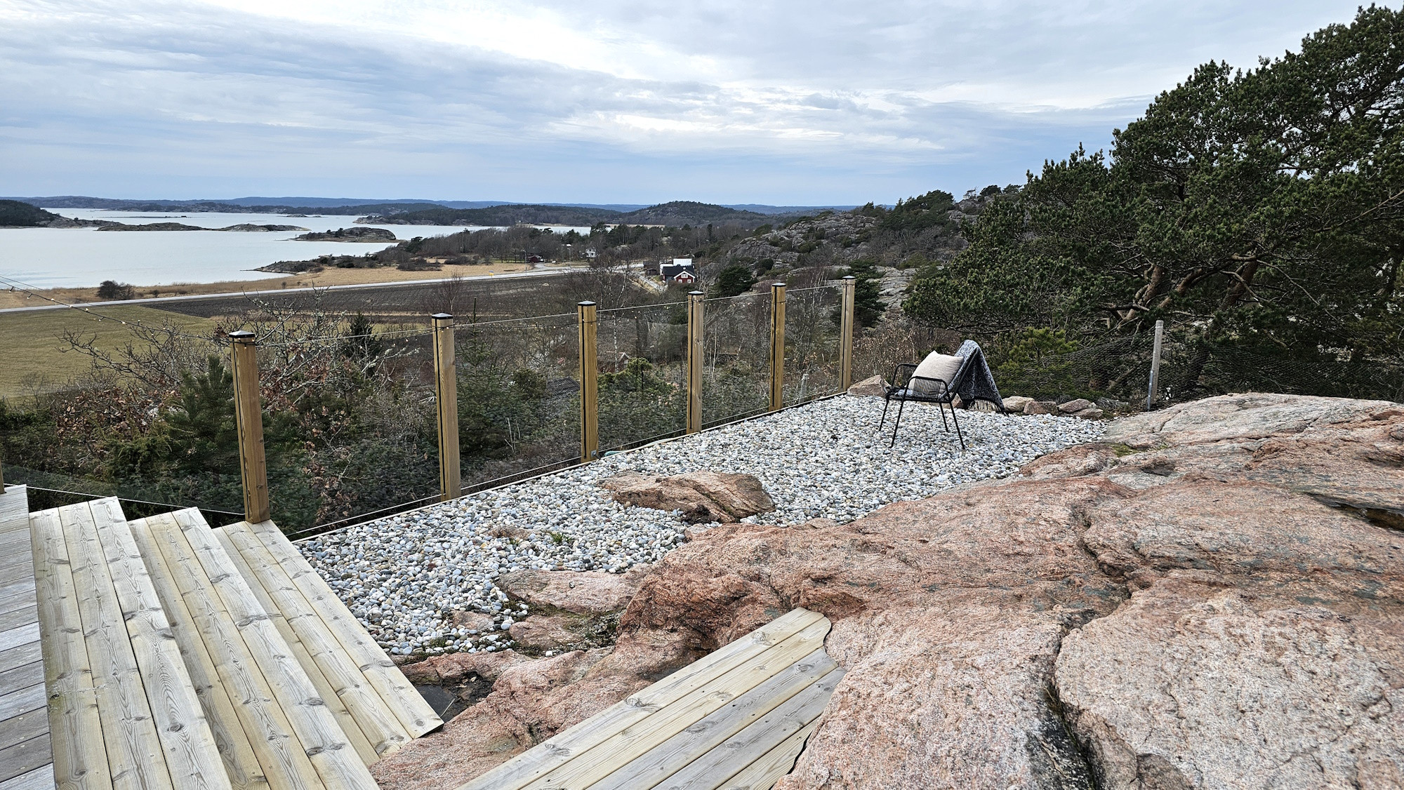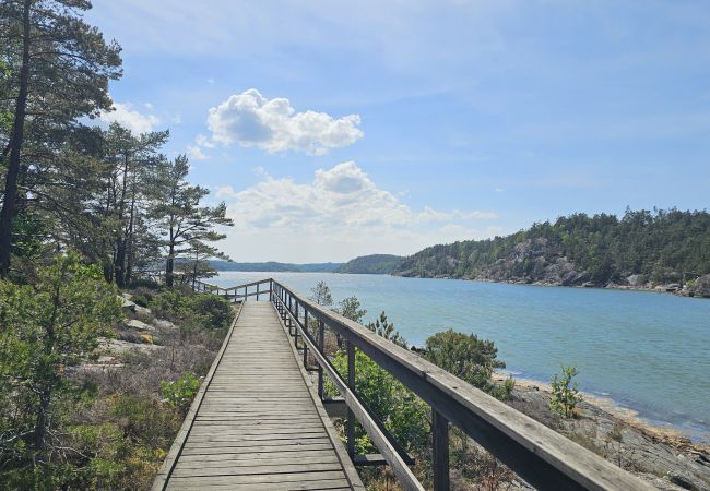 The villa is located in a scenic environment with views stretching over the fjord and the surrounding mountain landscape. There are beautiful walking and cycling paths right outside the house. A short trip takes you to Varekil where you will find a grocery store, pizzeria, café and petrol station. For those who want to explore more of Tjörn and Orust, there are many great excursions. A popular route goes to Sundsby Säteri via charming small roads. Here you’ll find good food, a café, caves and beautiful hiking trails. The nearest natural swimming spot is just 2.5 km away and can be reached by bike path. Several other beaches are located within a short drive, including Lilla Askerön only minutes away.