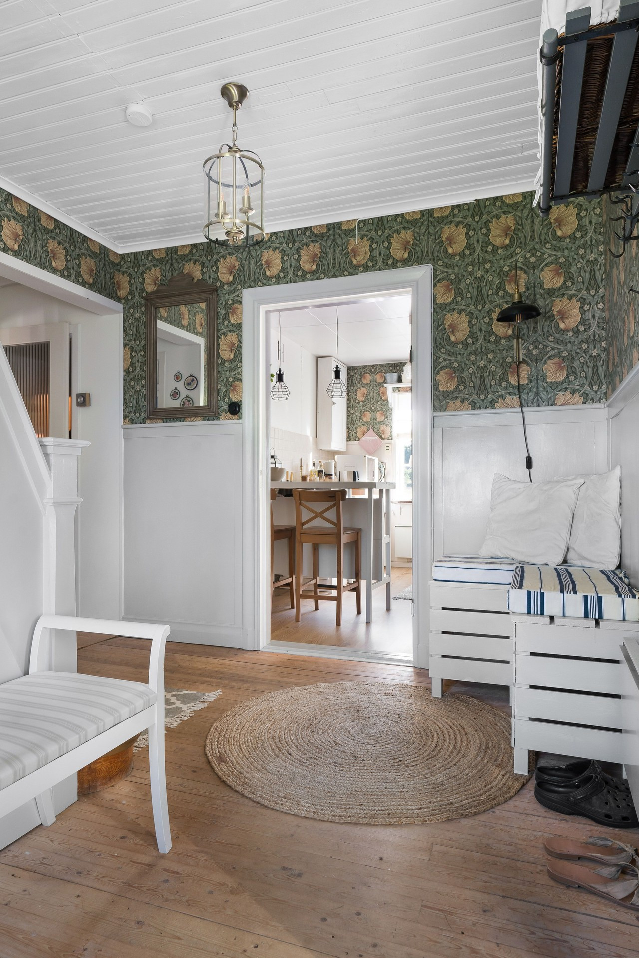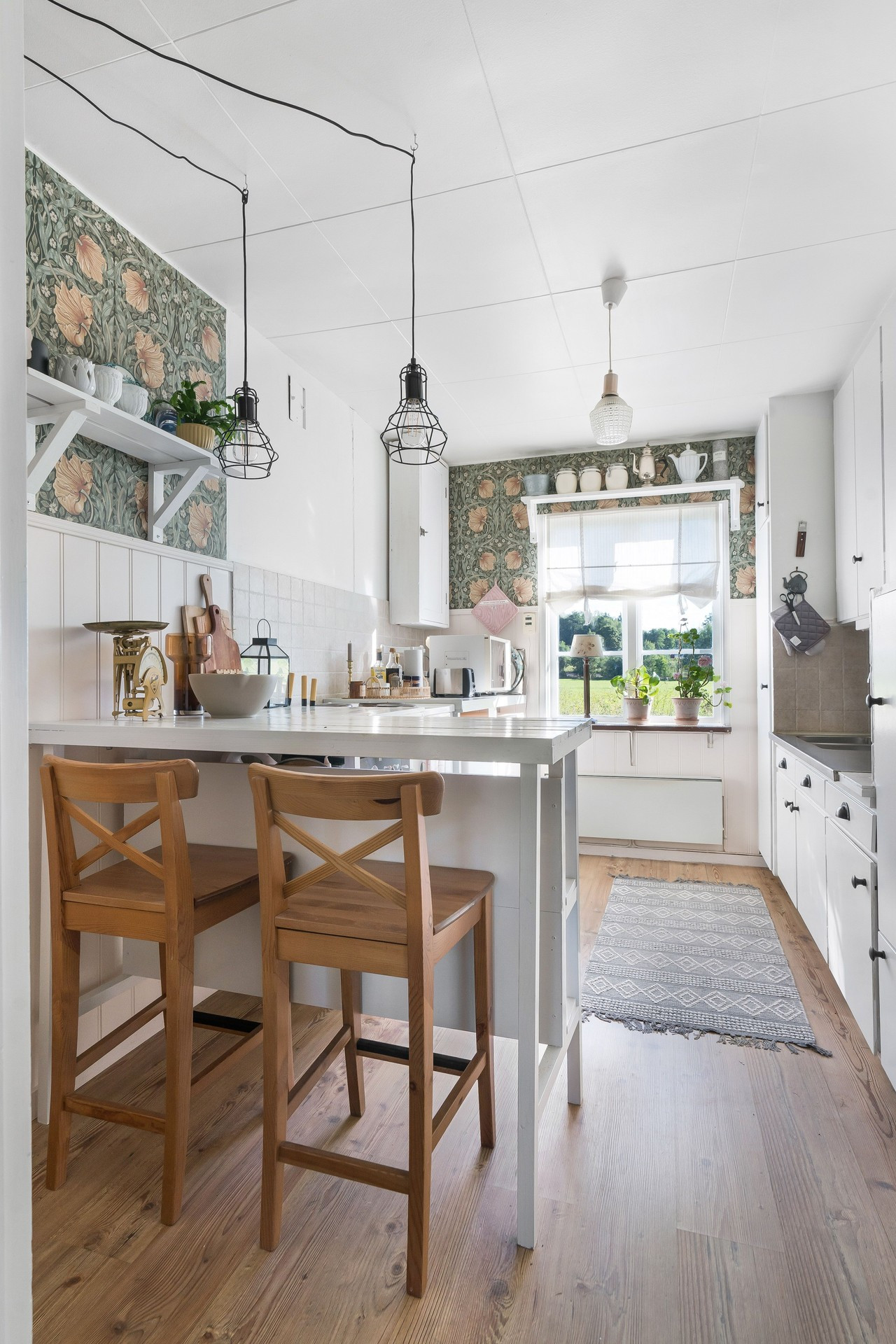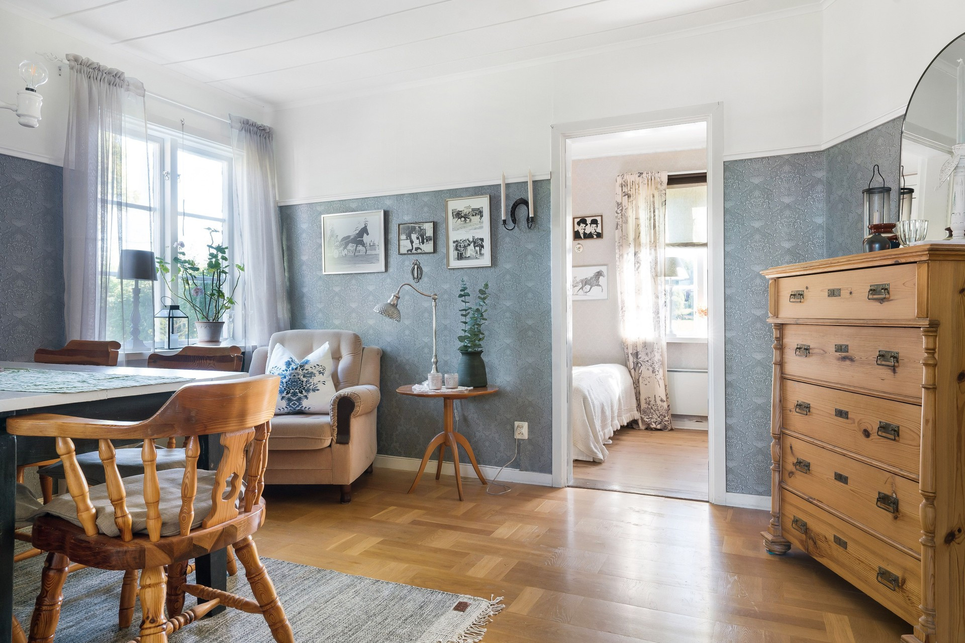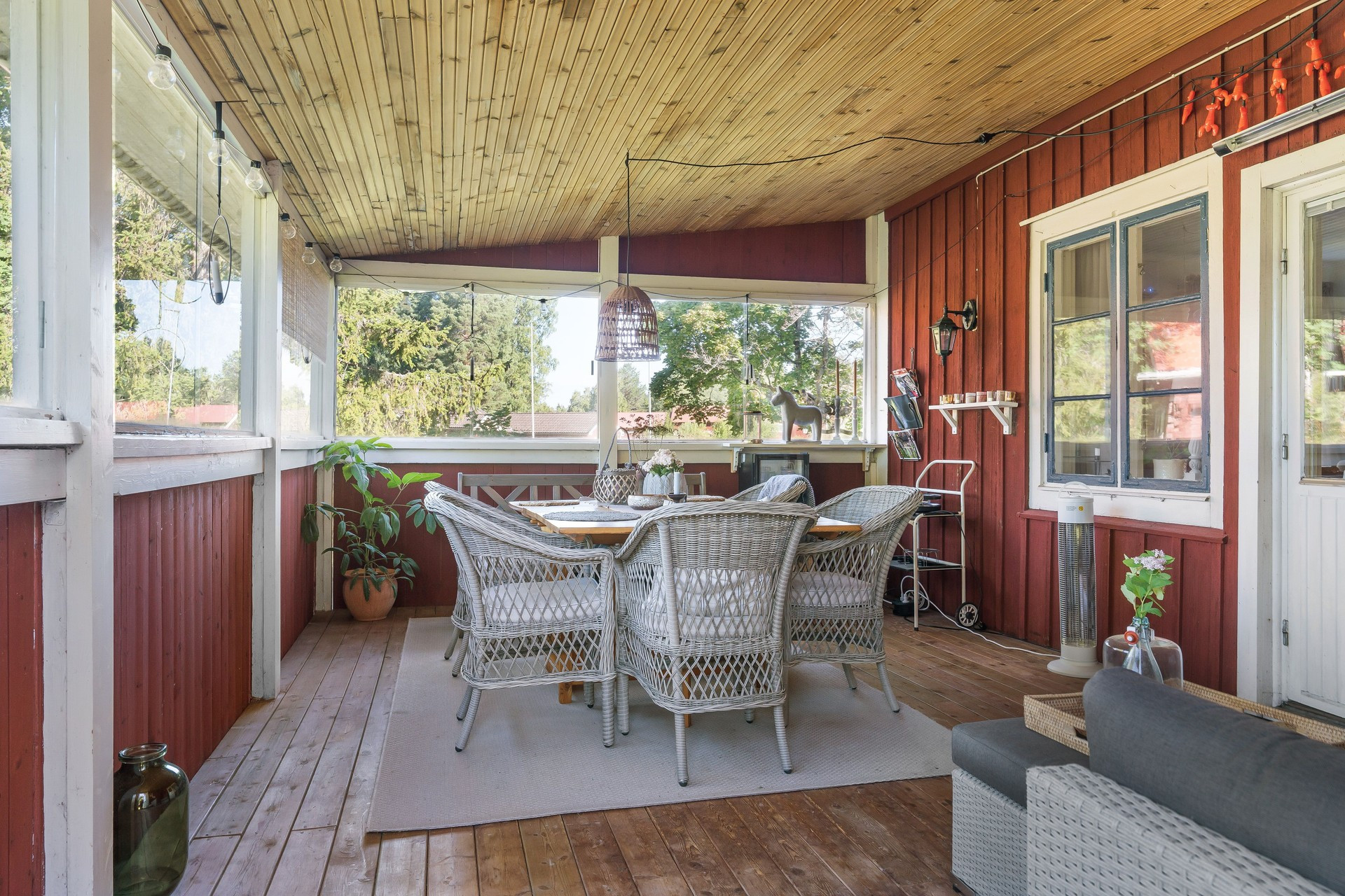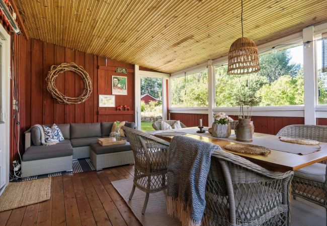 The cottage has room for five guests with its three bedrooms, two of which each have a double bed and the third has a single bed. There is one bathroom with a toilet and then another with only a shower. In the cozy little living room there is a sofa and TV for calmer evenings. The kitchen is bright and has most things, although no dishwasher, but this is outweighed by its charm and beautiful decor, perfect for preparing the family dinner. There is also a grill if you want to make a little extra effort for a summer meal. Then set the table in the glazed conservatory and enjoy the food with a view of the lovely garden.