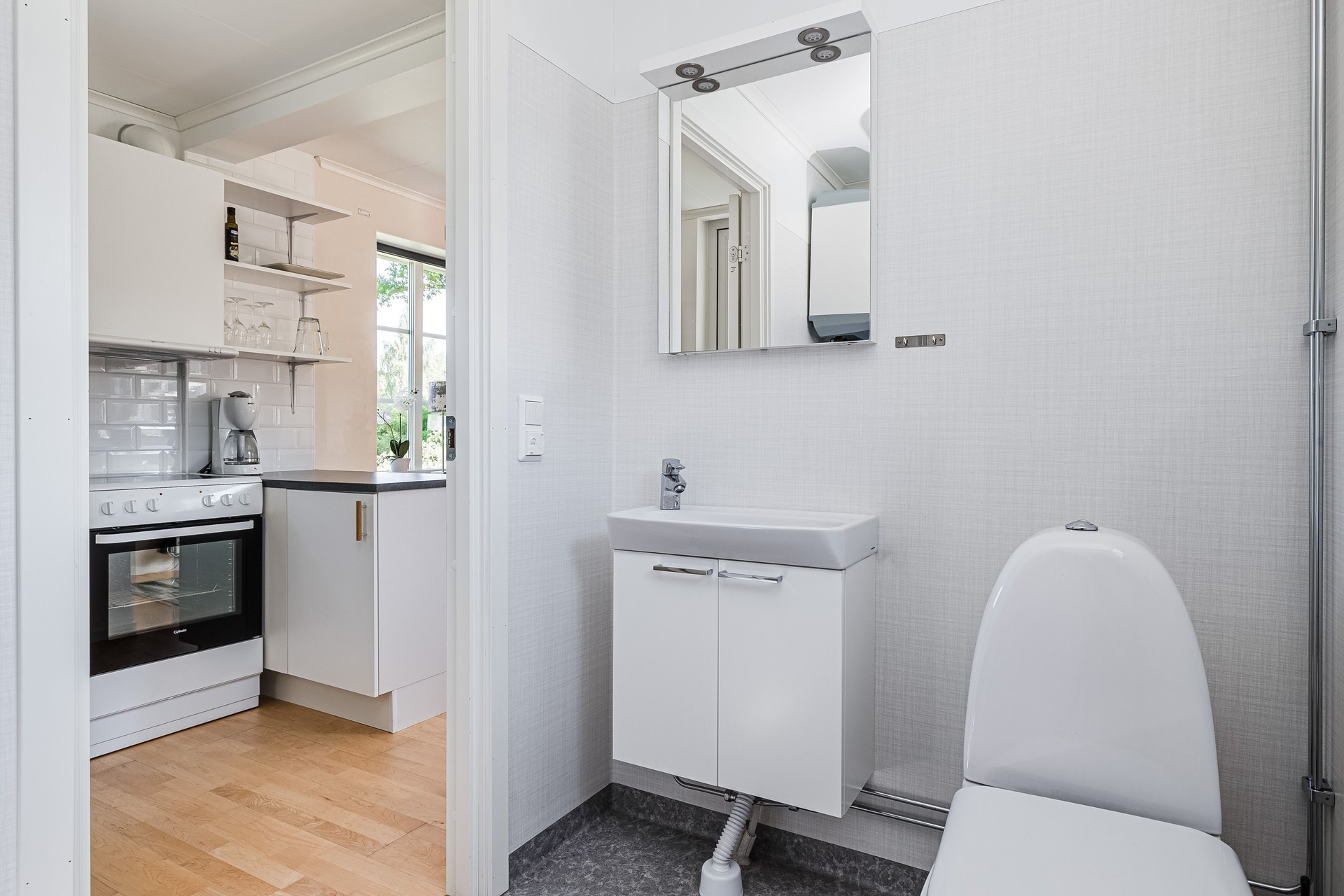 Step outside to a furnished wooden deck where you can enjoy meals and warm summer nights. Just a few minutes' walk from the house, you’ll find two restaurants – one at Tobo Golf Club and the other at the beautiful Fredensborg Manor. For golf lovers, the first tee is only 300 meters away. At Fredensborg, you can also play padel, tennis, or mini golf.