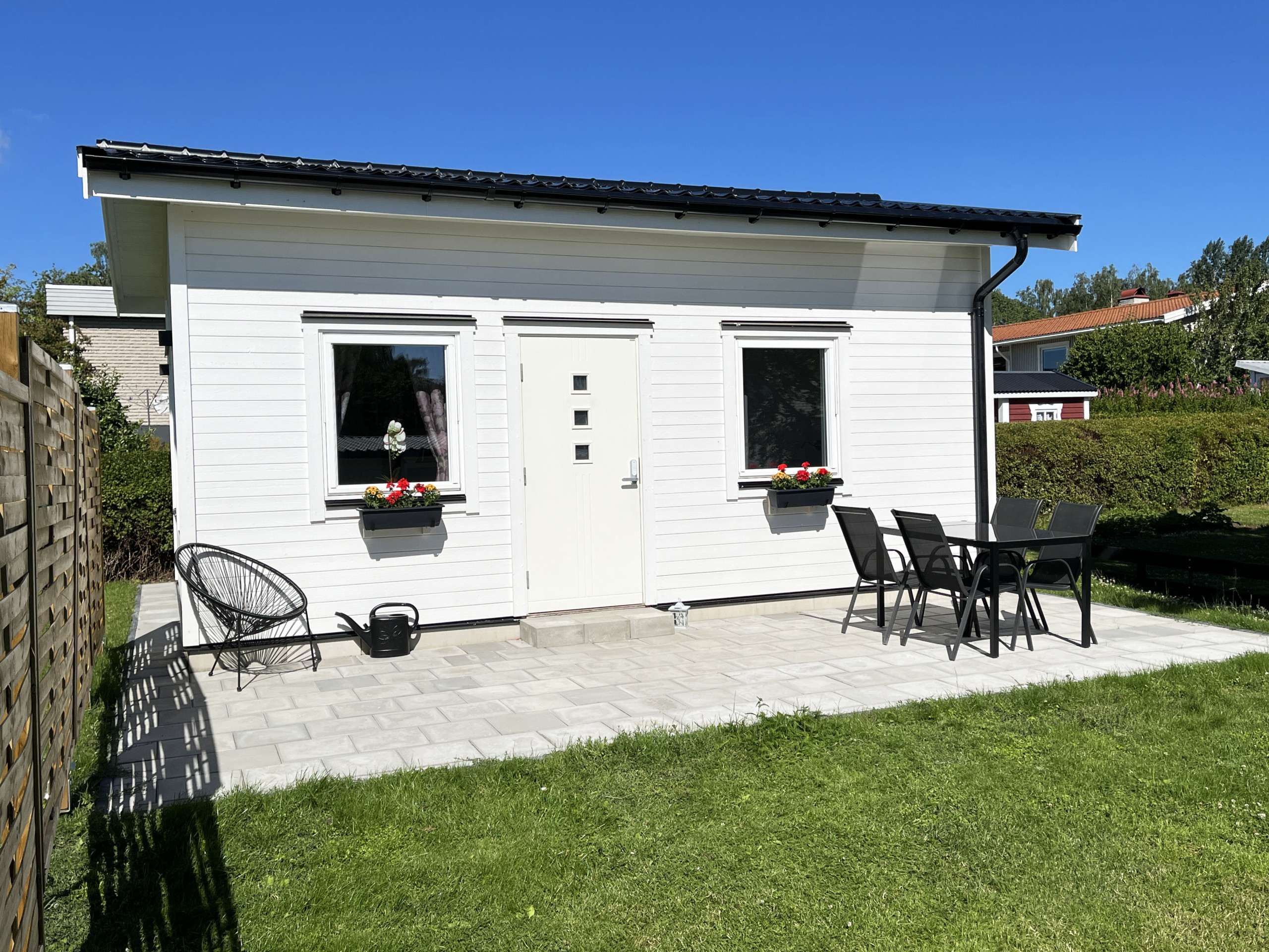 Newly built and cozy guest house of approximately 30 m2 in Vimmerby with room for 4 people. The cottage has a fully equipped kitchen with dining area and cozy sofa. In the bedroom there is a double bed, and there is a sleeping loft with two single beds. Nice bathroom with shower. Everything for a comfortable holiday stay. On the small terrace in front of the cottage you can have lovely barbecue evenings or just enjoy the warmth of the sun. In 10 minutes, you go to Vimmerby Camping, which is located by Lake Nossen. Here you can swim, eat, wash your clothes, or play mini golf. The house is secluded on the owner's property.