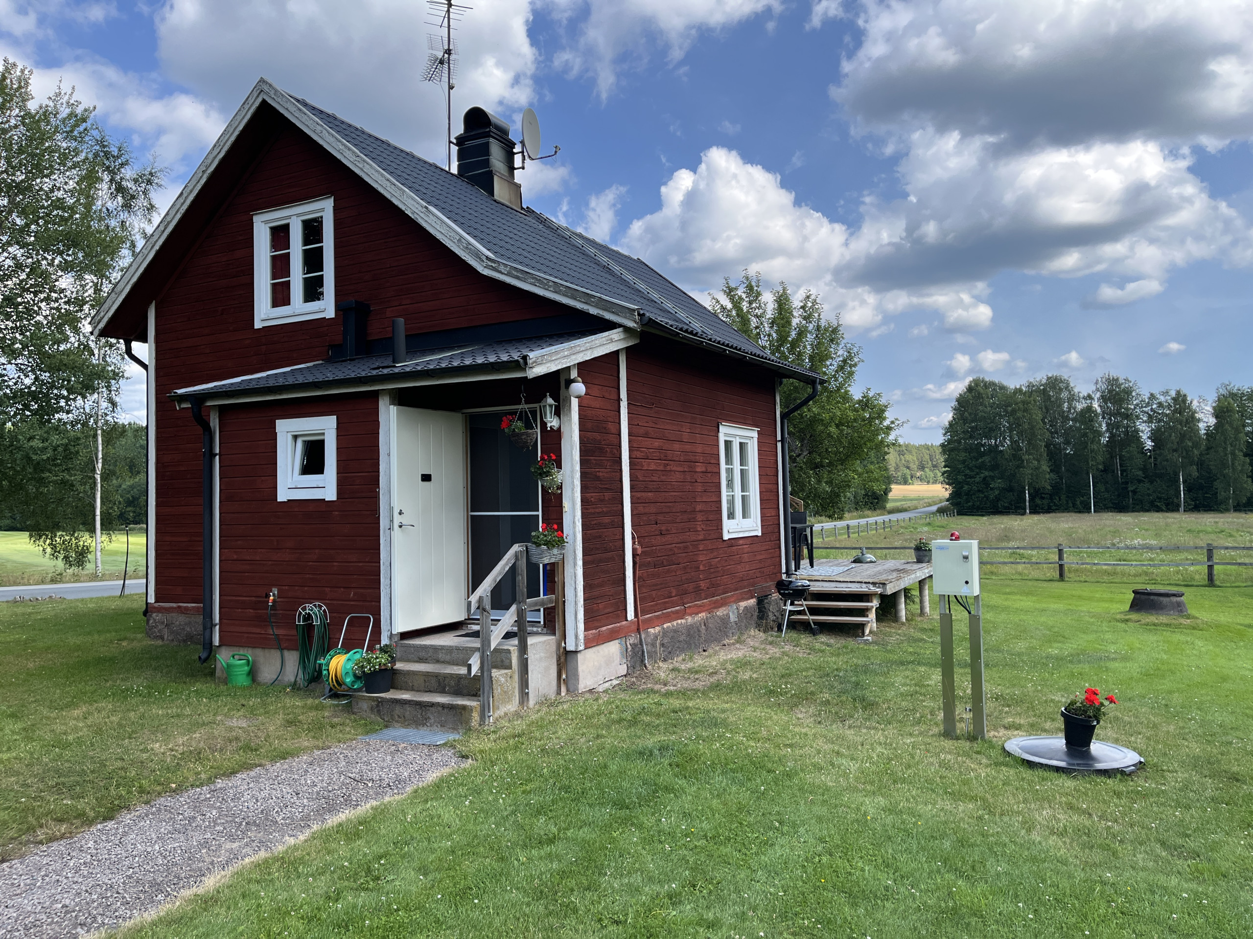 Welcome to this cozy cottage with its own sandy beach and jetty by Lake Krön! The house has one bedroom but there is also an annex with a double bed and a double sofa bed in the living room. On the glazed terrace there is both a barbecue and space for large dinners during the summer evenings with a view of the lake and the sunset. A boat is included in the rent for those who want to try to catch their own dinner. An electric motor can also be rented if you want.