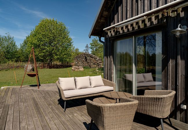 ligger denna lägenhet mitt på Hallandsåsen. Man möts av fågelkvitter och gårdens djur precis utanför dörren. Husdjur tillåtet vid förfrågan. Lägenheten rymmer 6 personer fördelat på 3 sovrum med varsin dubbelsäng och ett allrum. Huset har en altan som vetter ut mot får och hästhagar och ger en idyllisk upplevelse för den som vill finna lugnet i naturen men ändå nära till allt såsom affärer, restauranger och storstadens puls.En grill/bastukåta går att beställa till om man så önskar, och ligger i anslutning till boendet.