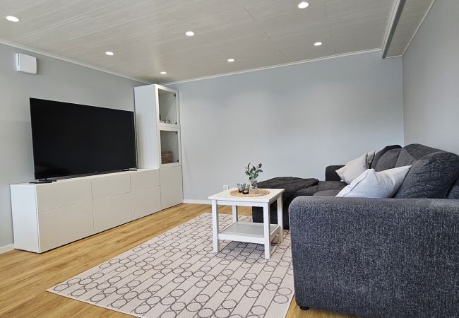 Här finns två separata sovrum – ett med en dubbelsäng och ett med våningssäng där den undre bädden är bredare – samt en rymlig bäddsoffa i vardagsrummet. Boendet erbjuder även två toaletter, varav ett helkaklat badrum med dusch, samt separat tvättstuga med både tvättmaskin och torktumlare.
