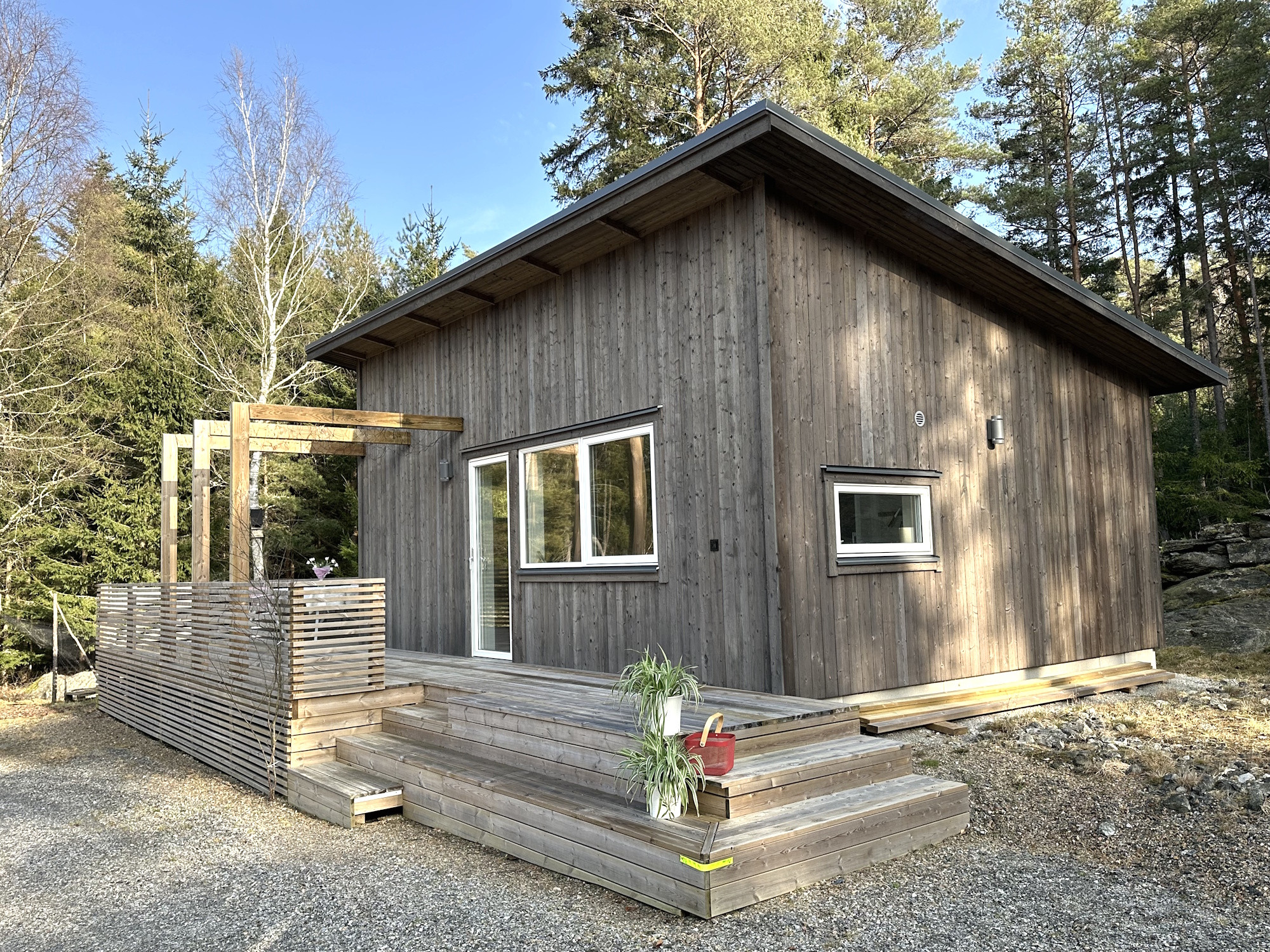 Välkommen till Lingonriset – en nybyggd, stilfullt inredd stuga med öppen planlösning, högt i tak och stora fönster som släpper in naturens lugn. Här bor du mitt i skogen med doft av tallbarr och fågelkvitter, men ändå med närhet till både bad och samhällsservice. Den mysiga altanen med utemöbler och grill bjuder in till sköna kvällar under bar himmel.