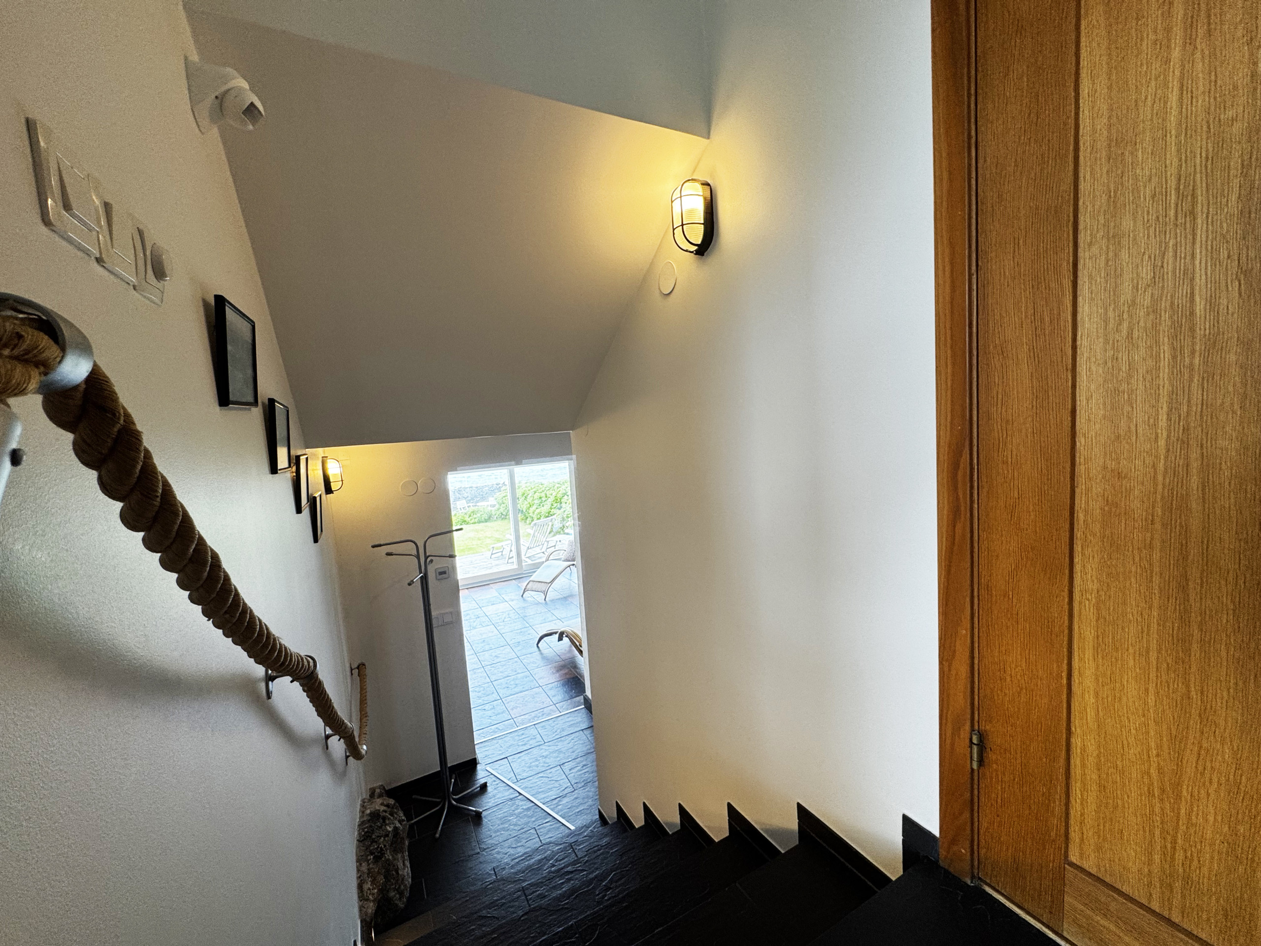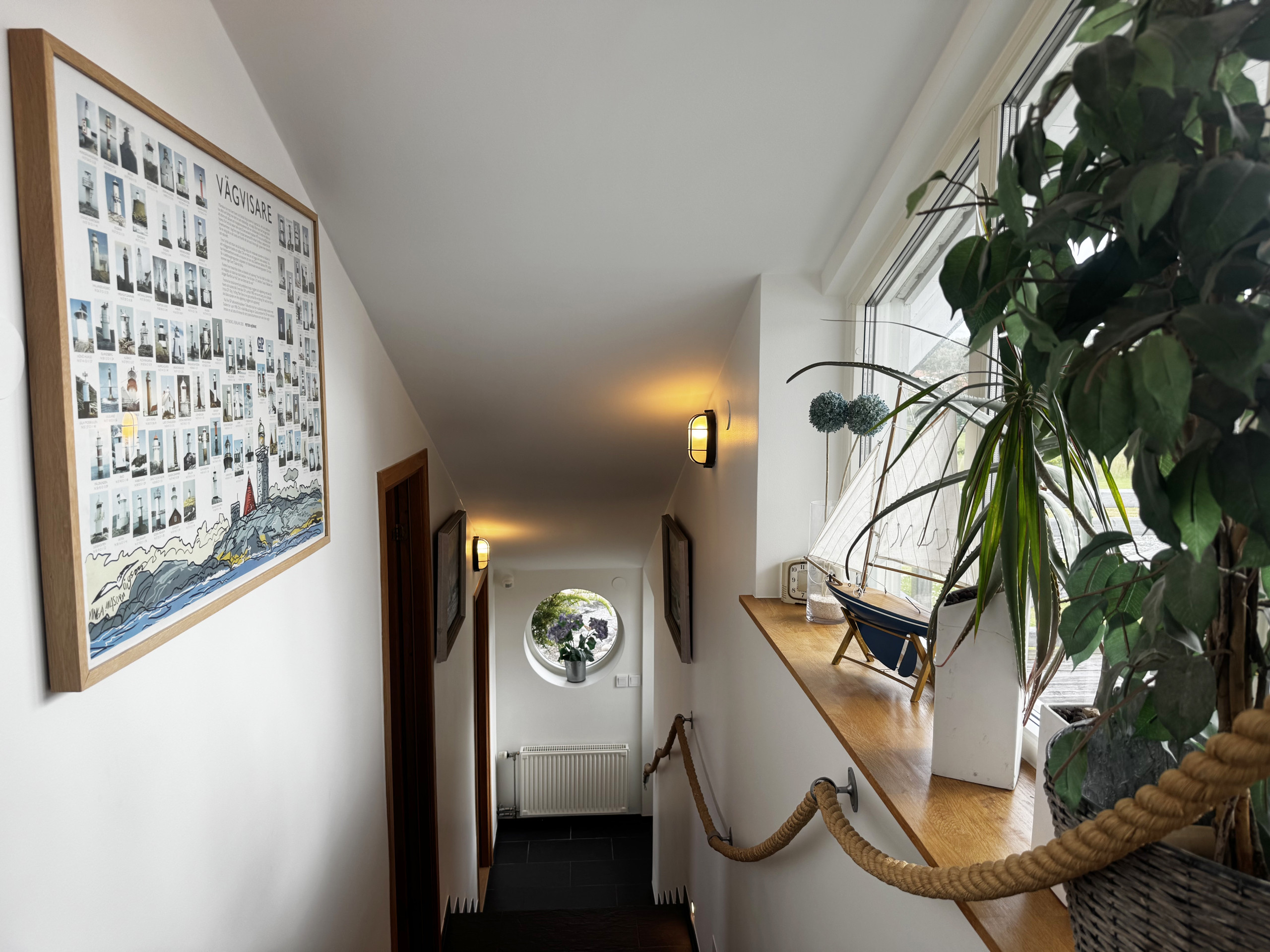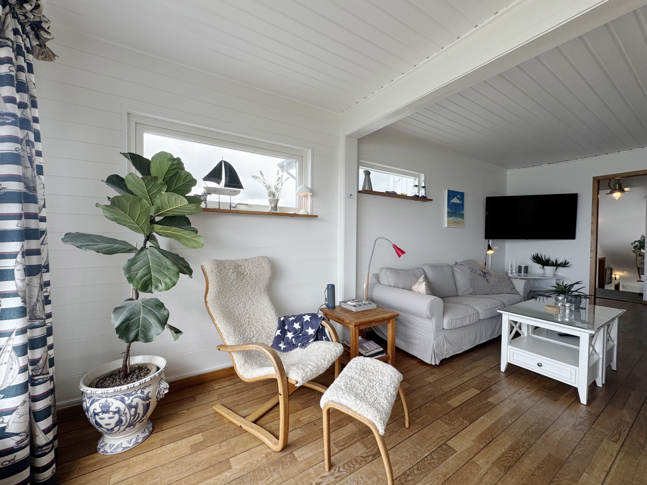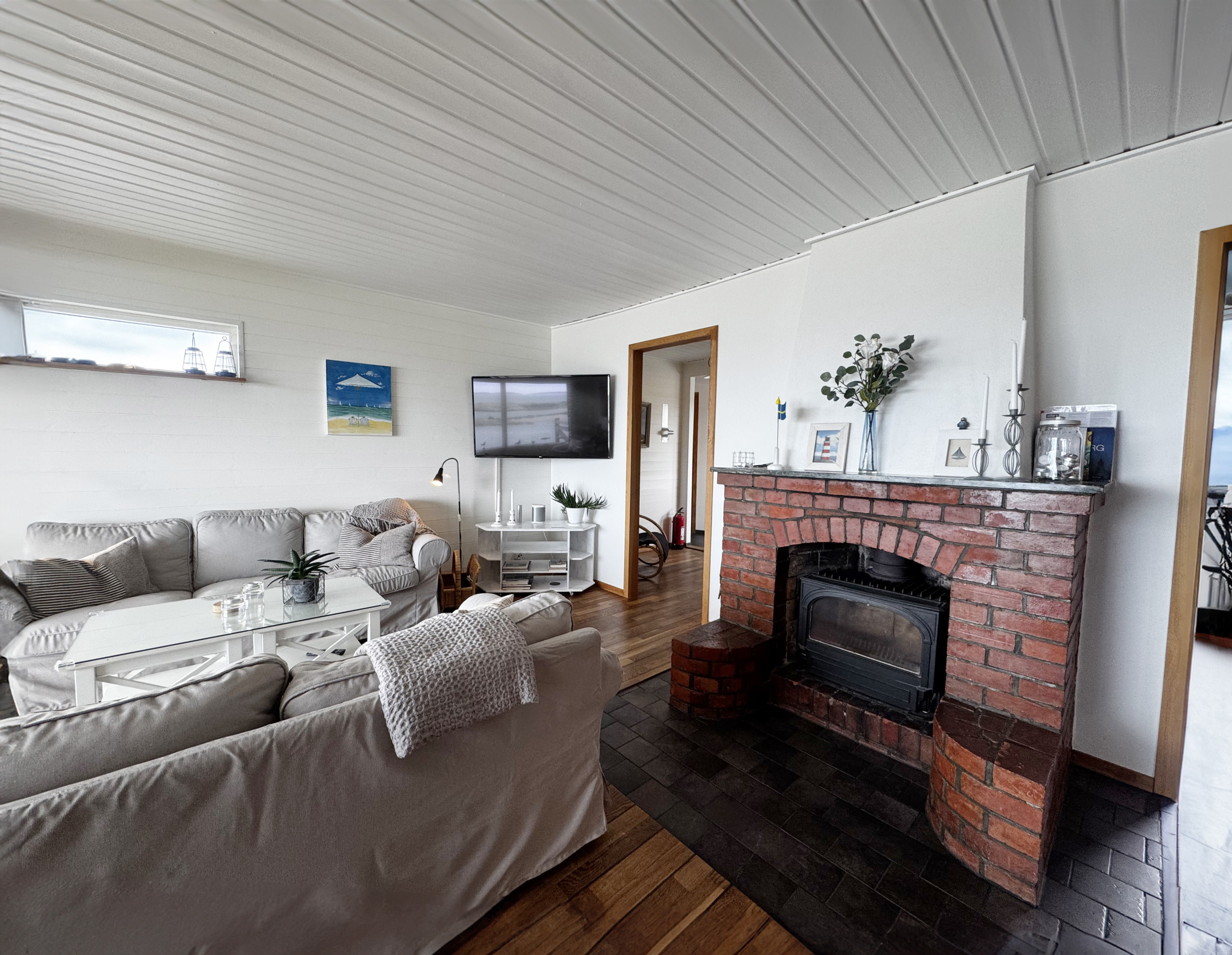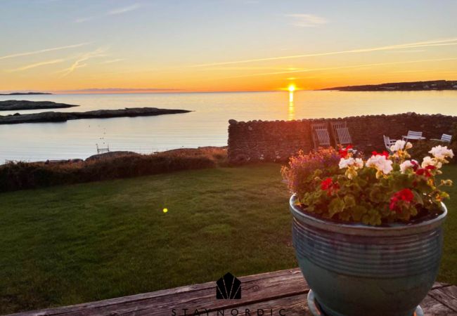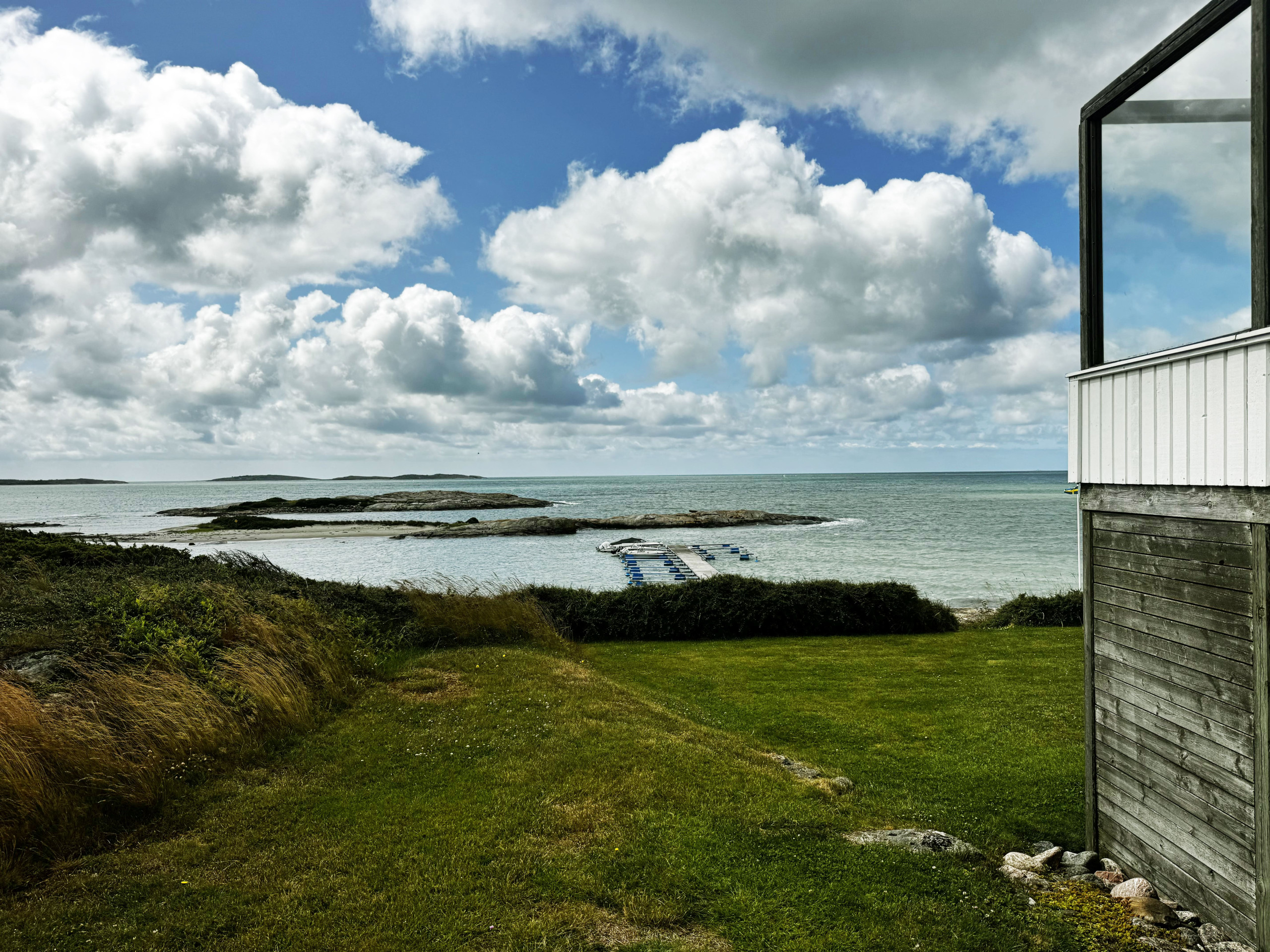 Ute finner du både inglasad och öppen terrass med grill, där du kan njuta av långa sommarkvällar med utsikt över havet.