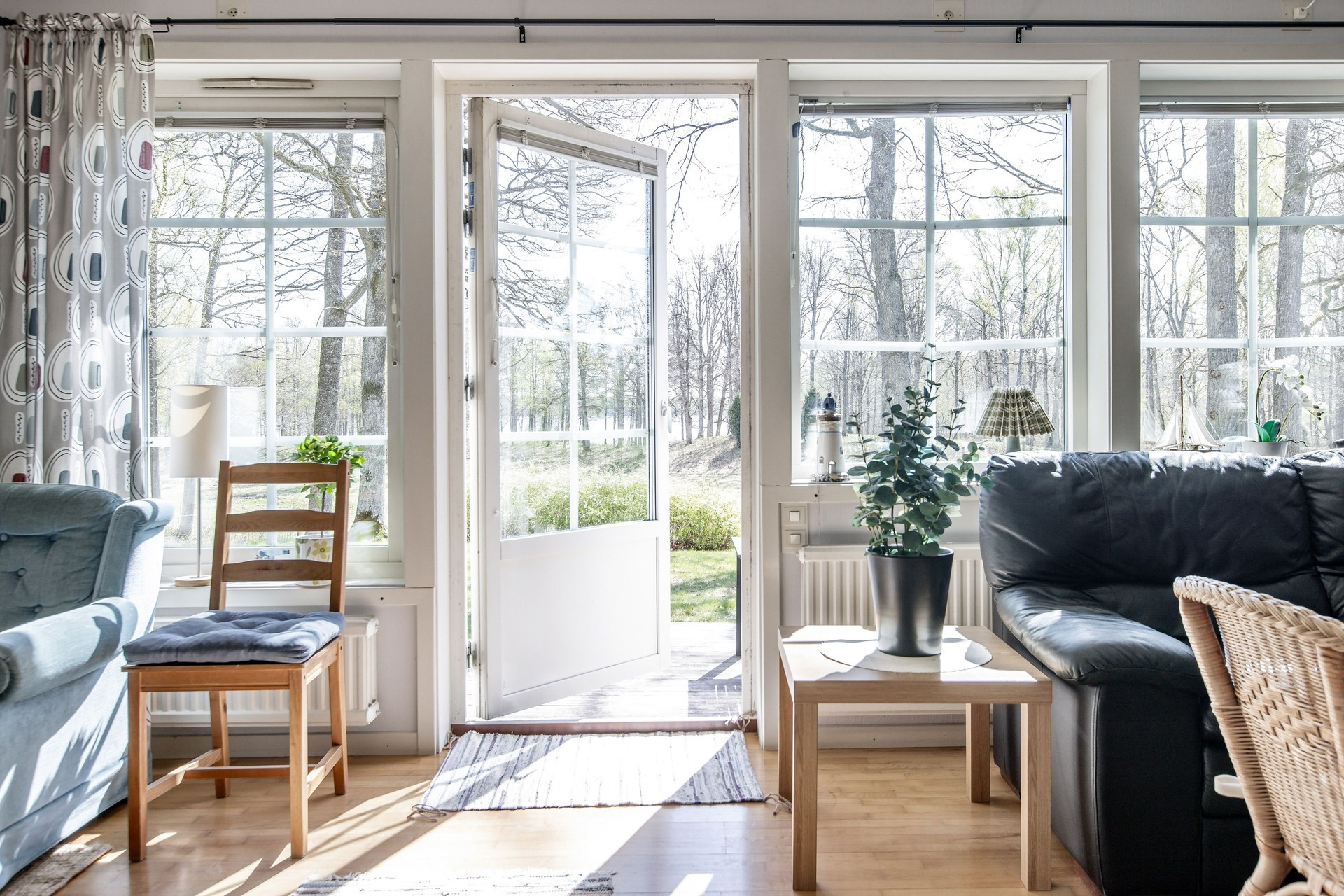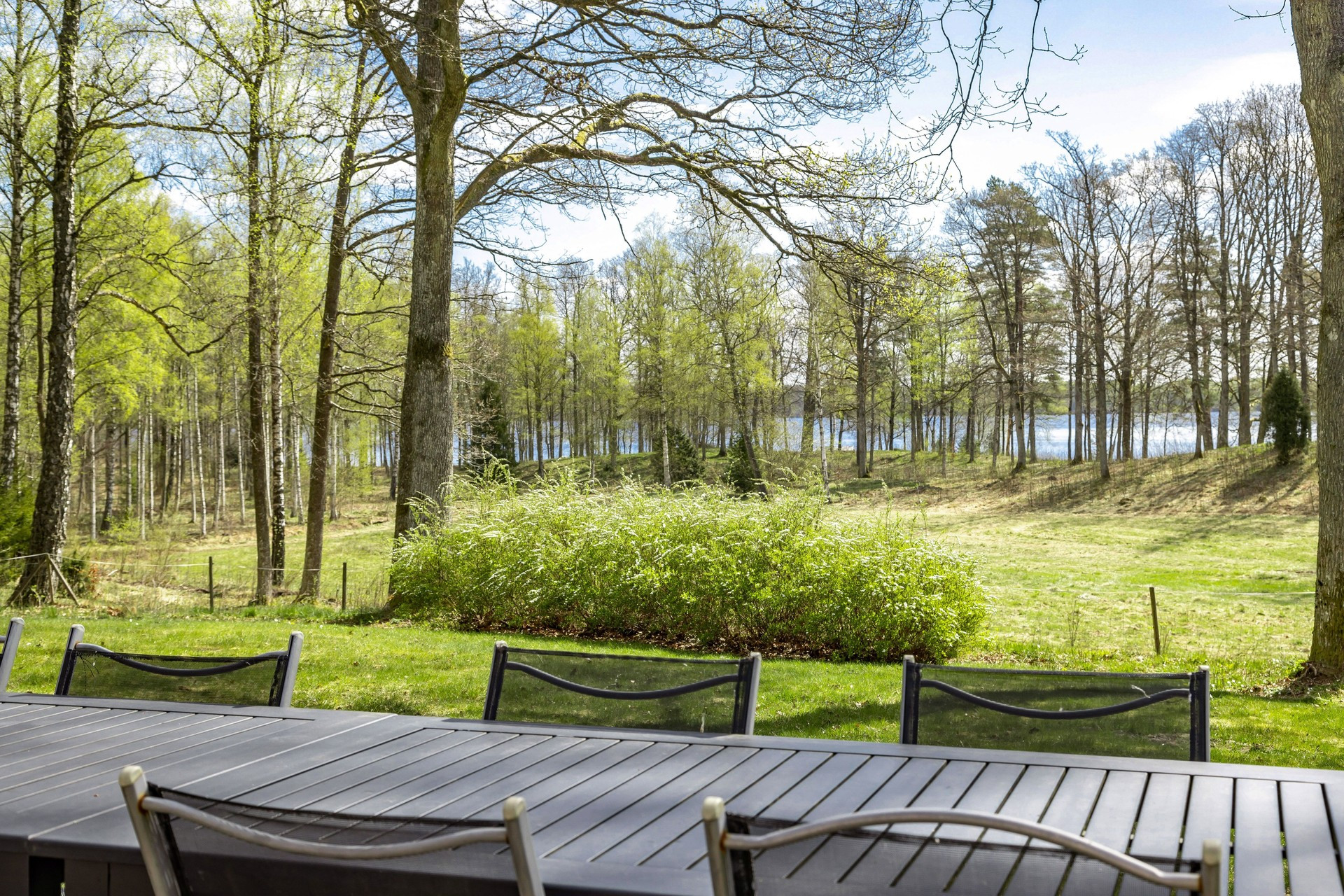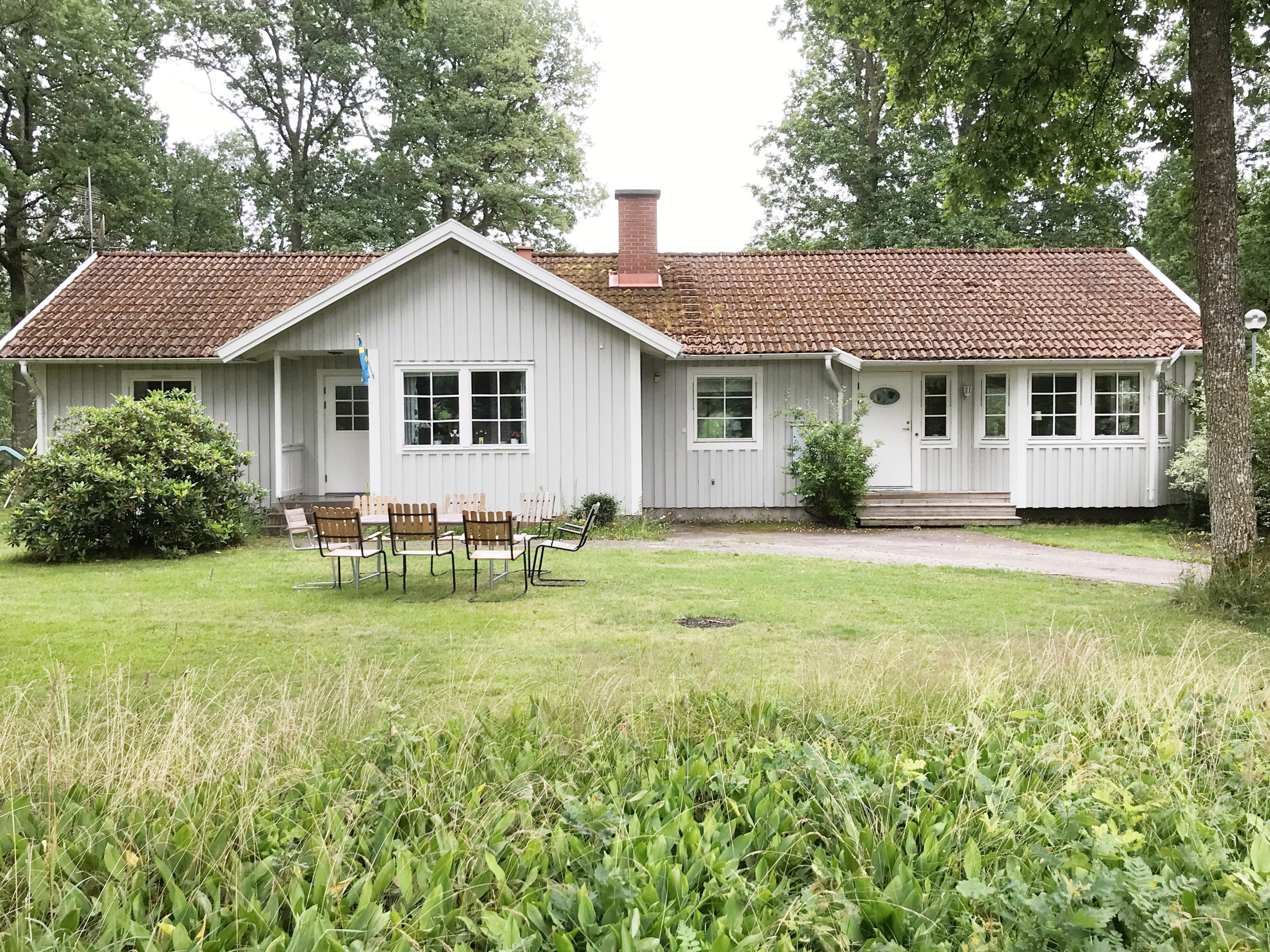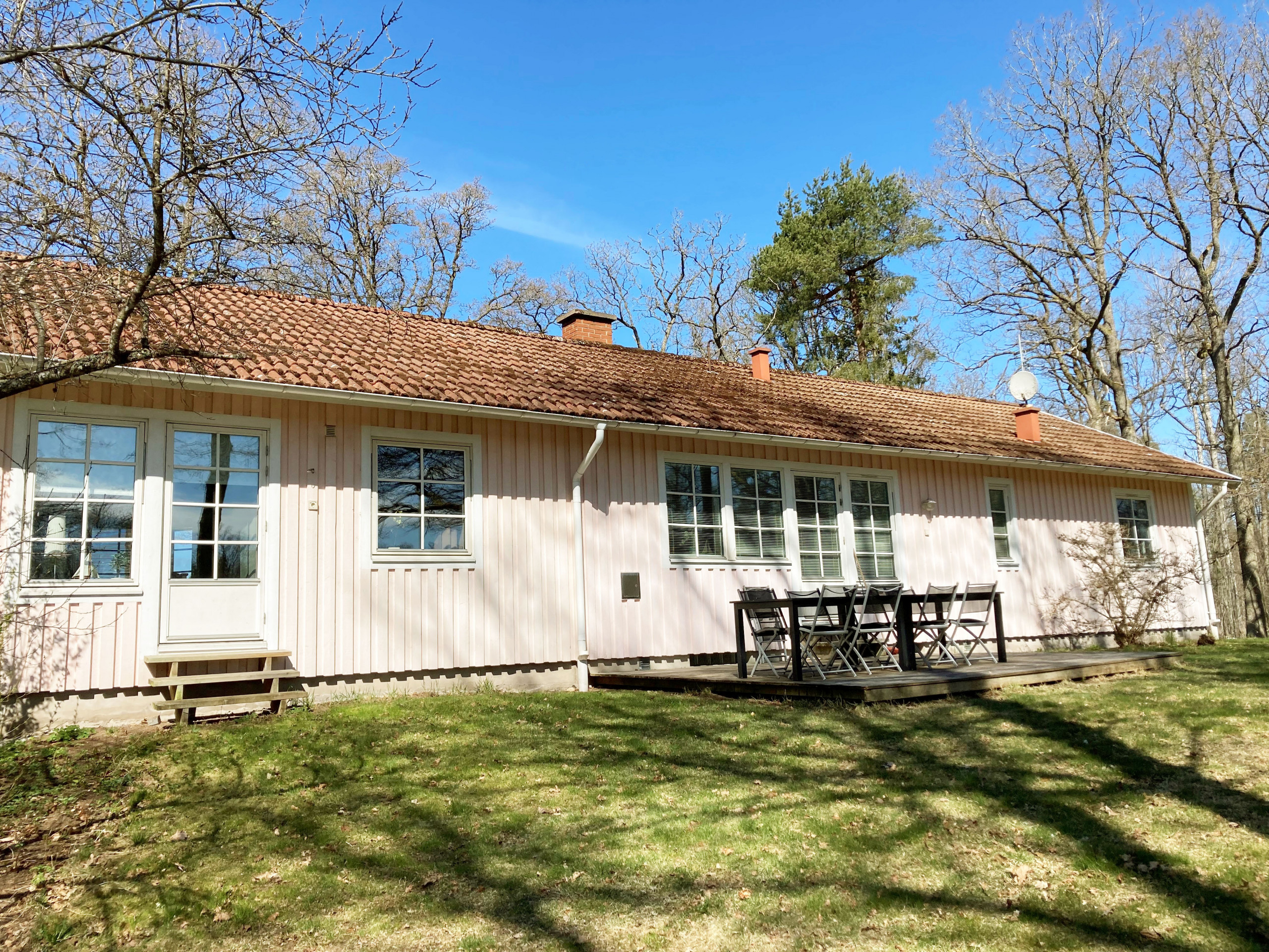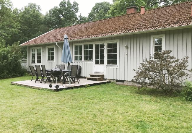 Huset har 4 sovrum varav ett med utgång till balkongen. På baksidan av huset finns det en altan med sjöutsikt och stora gräsytor för lek och spel. En ruschkana och gunga finns för barnen. På terassen finns en kolgrill där ni kan tillaga en härlig middag i kvällssolen. Ni bor väldigt naturnära med mycket ekskog ner mot sjön, dit ni kan ta en trevlig promenad bland ibland betande djur på sidorna. Nere vid sjön finns också en grillplats, där ni kan grilla samtidigt som ni fiskar eller badar. Det finns två badrum varav det ena är i källaren. I källaren finns också ett garage och här står 5 cyklar varav 1 barncykel som ni gärna får nyttja. Garaget är tillgängligt för 2 bilar.