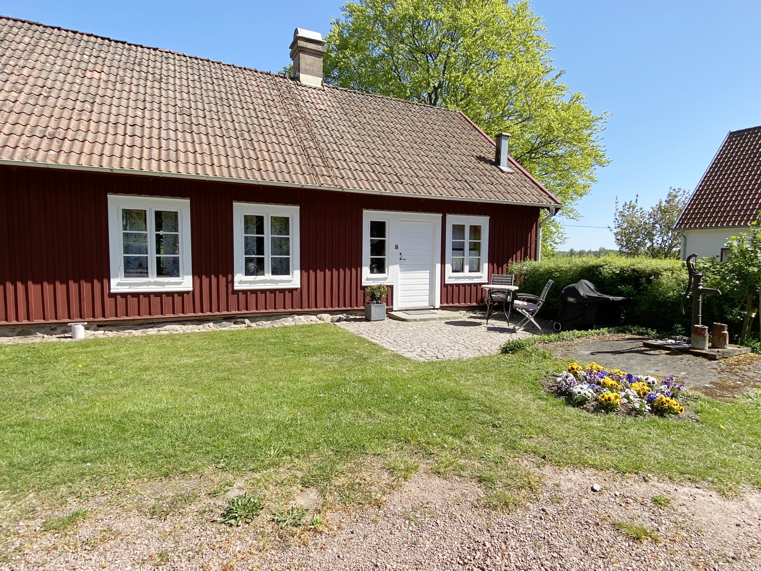 Charmig stuga i natursköna Broby, Skåne med plats för 4 personer. Boendet är fördelat på 1 sovrum med 2 enkelsäng och en bäddsoffa för 2 personer i vardagsrummet. Stort och rymligt kök, stor toalett med dusch och en härlig uteplats på framsidan med grill och trädgårdsmöbler. Även en lite mindre terrass på husets baksida med bord och stolar som bjuder på en rofylld utsikt över fält och skog.