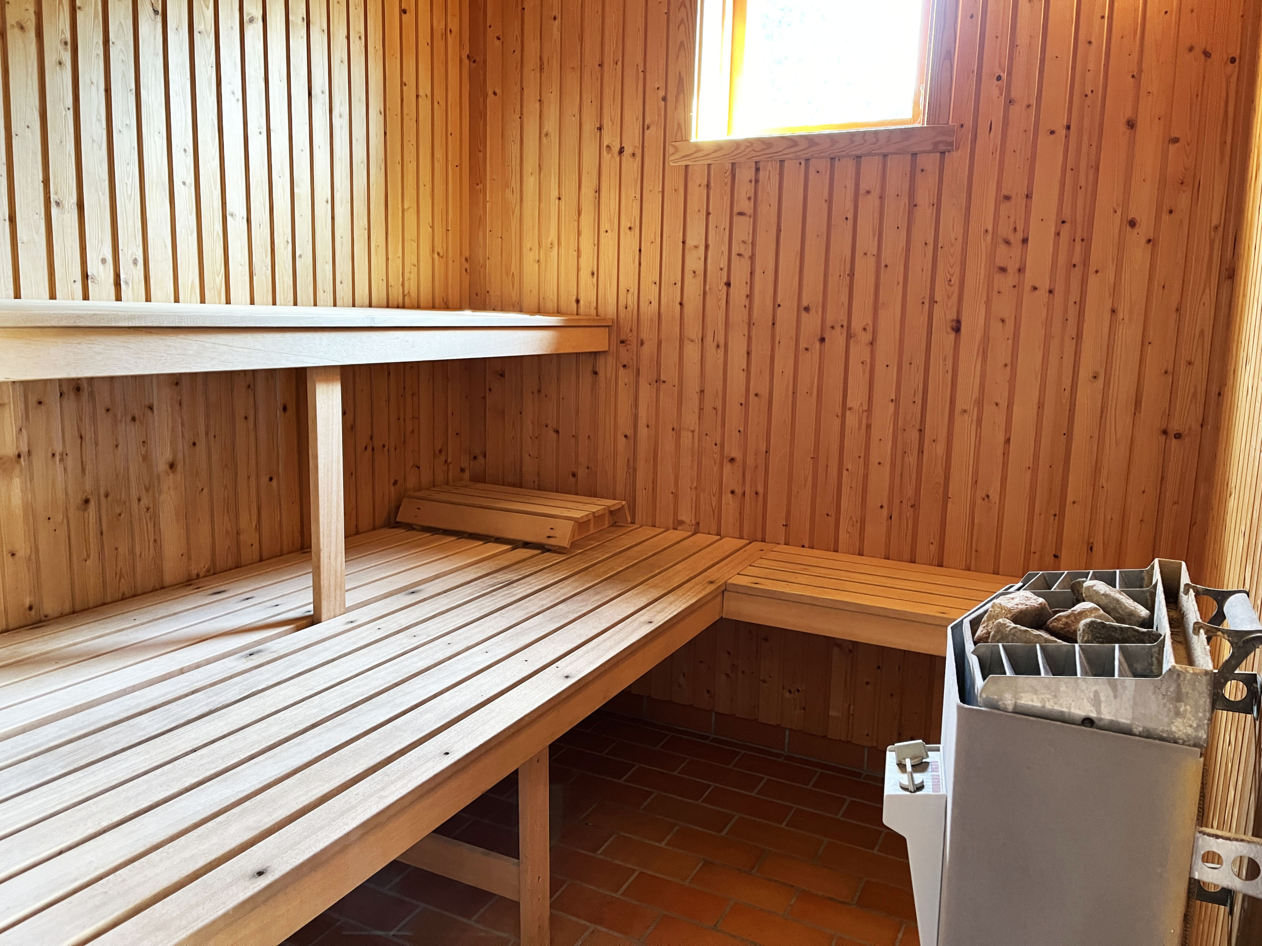 Det större huset har ett stort och fint vardagsrum på entréplan, som öppnar upp mot ett möblerat altandäck med söderläge och stor pool. Kök som är fullt utrustat och med matplats samt en toalett. På övre våningen hittar ni tre sovrum, ett med dubbelsäng och de andra två med enkelsängar, samt ett helkaklat badrum. Det fjärde sovrummet ligger i direkt anslutning till altandäcket och har två enkelsängar, tillsammans med en separat toalett, dusch och en bastu för avkoppling.