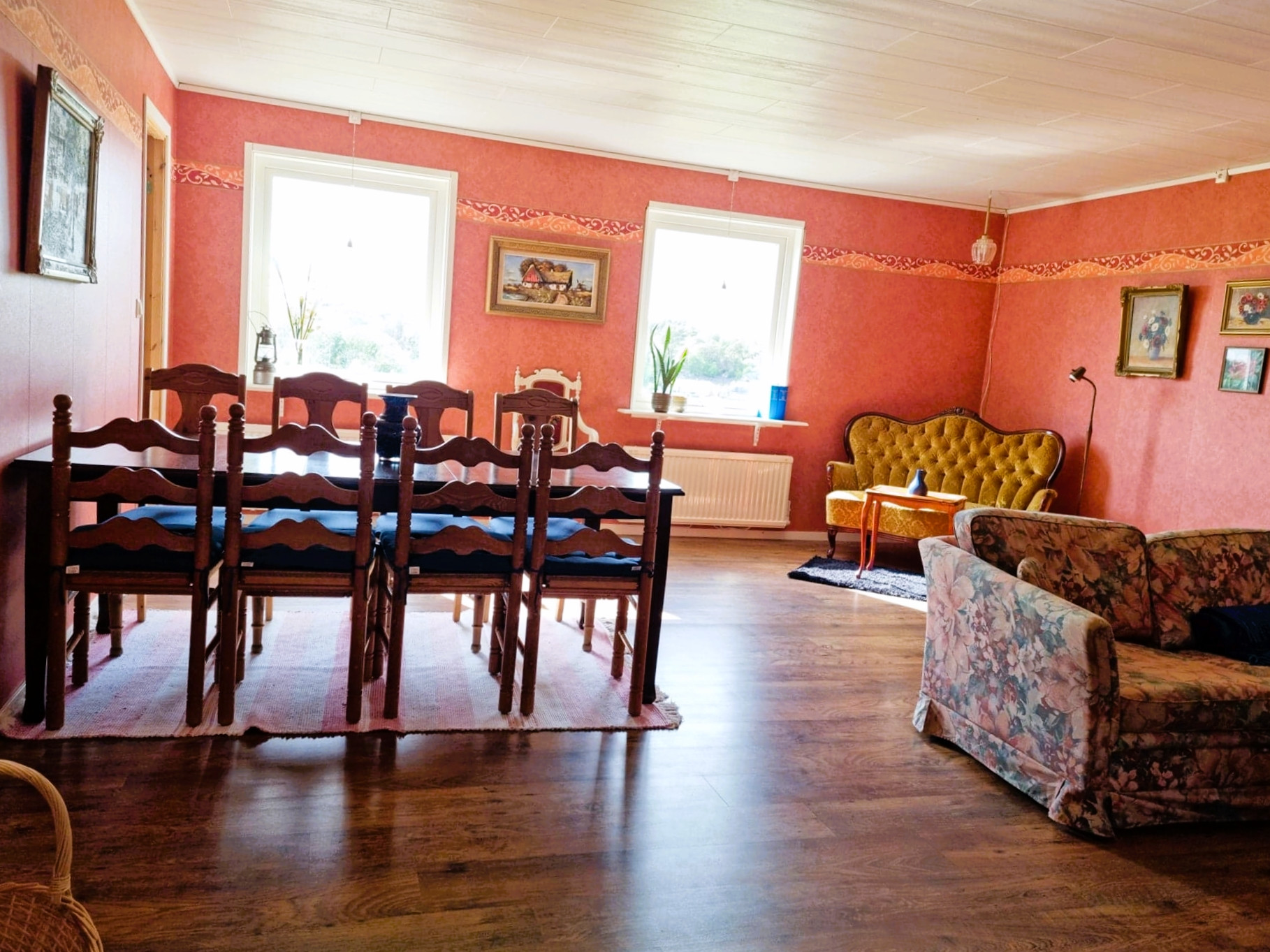 Välkommen till ett rymligt och charmigt semesterhus bara 2,5 km från det pittoreska fiskesamhället Hälleviksstrand på Orust. Här bor du i ett klassiskt rött hus med vita knutar, generösa utrymmen och gott om plats för upp till 12 personer inklusive barn – perfekt för två till tre familjer som vill semestra tillsammans. Med hela 6 sovrum, 2 badrum och en extra toalett finns det gott om plats för både avkoppling och umgänge. I huset finns två allrum – ett på varje våningsplan – samt ett fullt utrustat kök och en härlig matsal med plats för alla.
