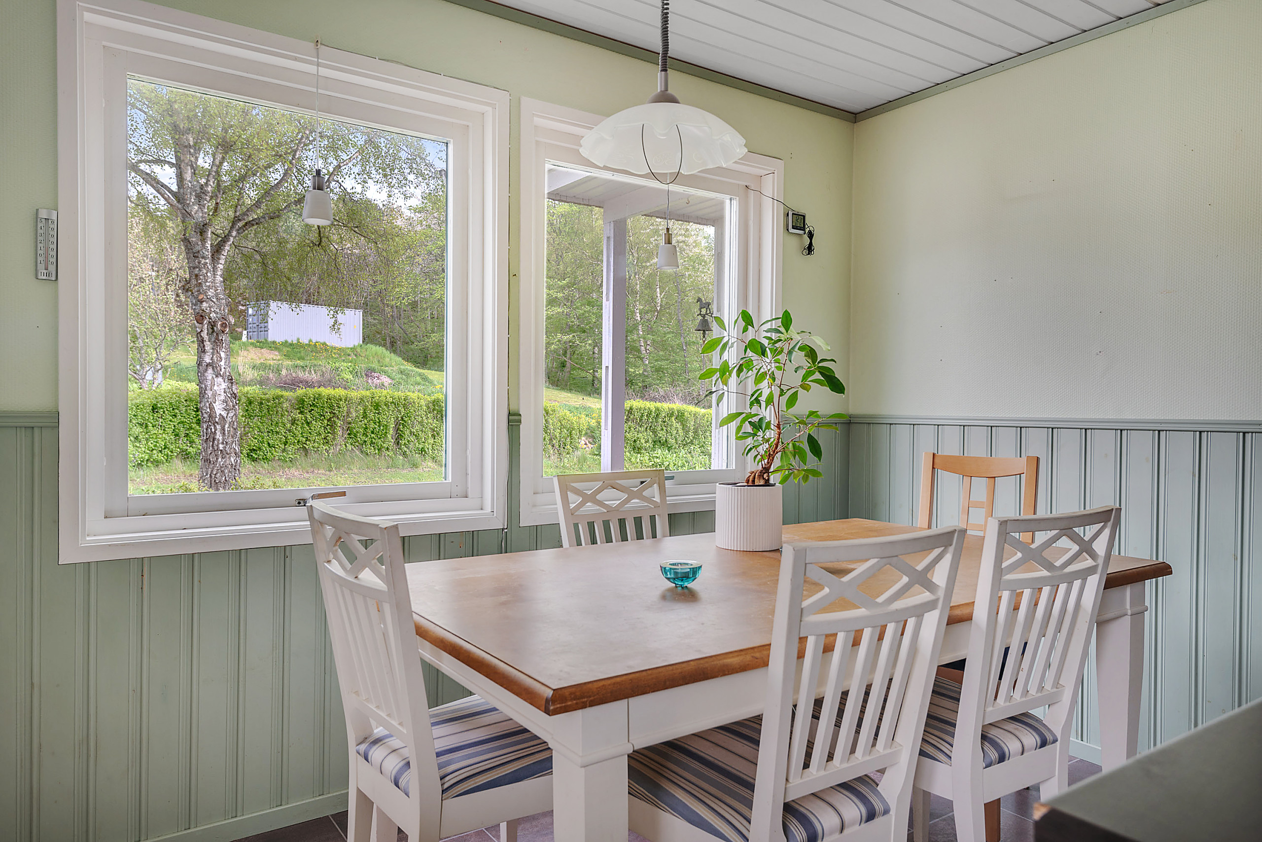 Boendet bjuder på ljusa, luftiga ytor med hemtrevlig känsla. Badrummet på övervåningen har både dusch och ett härligt badkar med lejontassar, medan entréplanets badrum är praktiskt i anslutning till tvättstugan. Ute finns en altan med sittbänkar och ett bord för upp till 10 personer samt en gräsmatta med ytterligare utemöbler – perfekt för middagar, kubbspel eller bara soliga dagar i lugnet. Huset ligger naturskönt med härliga promenadstråk, utsikt mot ängar och fina klippor i närheten att utforska. Hundar är välkomna efter förfrågan, och WiFi samt stort TV-paket ingår.