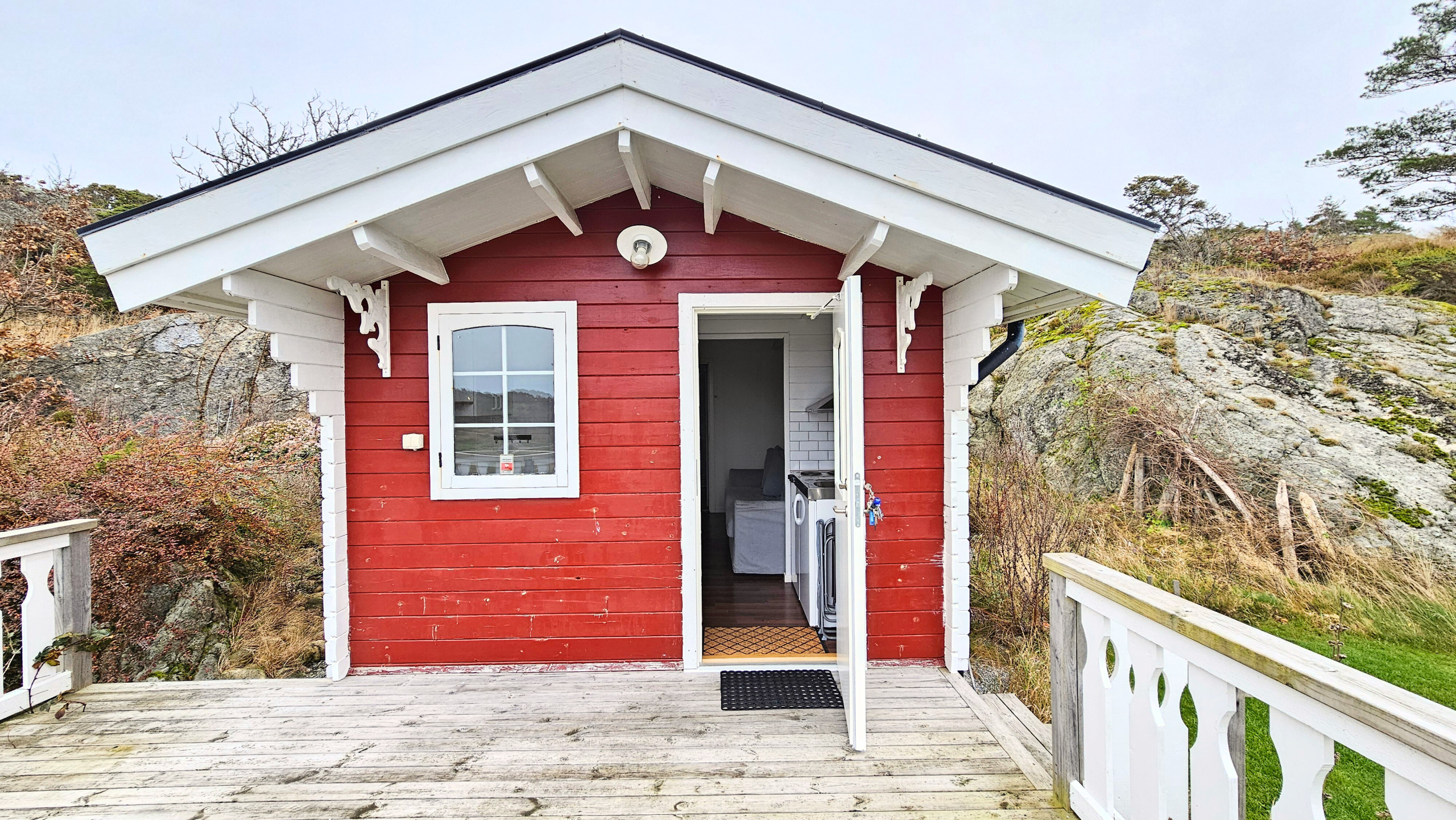På gångavstånd, cirka 100 meter uppför backen, ligger en liten gäststuga som tillhör boendet. Den är utrustad med pentry, toalett, dusch och en bäddsoffa med plats för två personer – en idealisk plats för tonåringen, mor- och farföräldrar eller den som söker lite avskildhet.