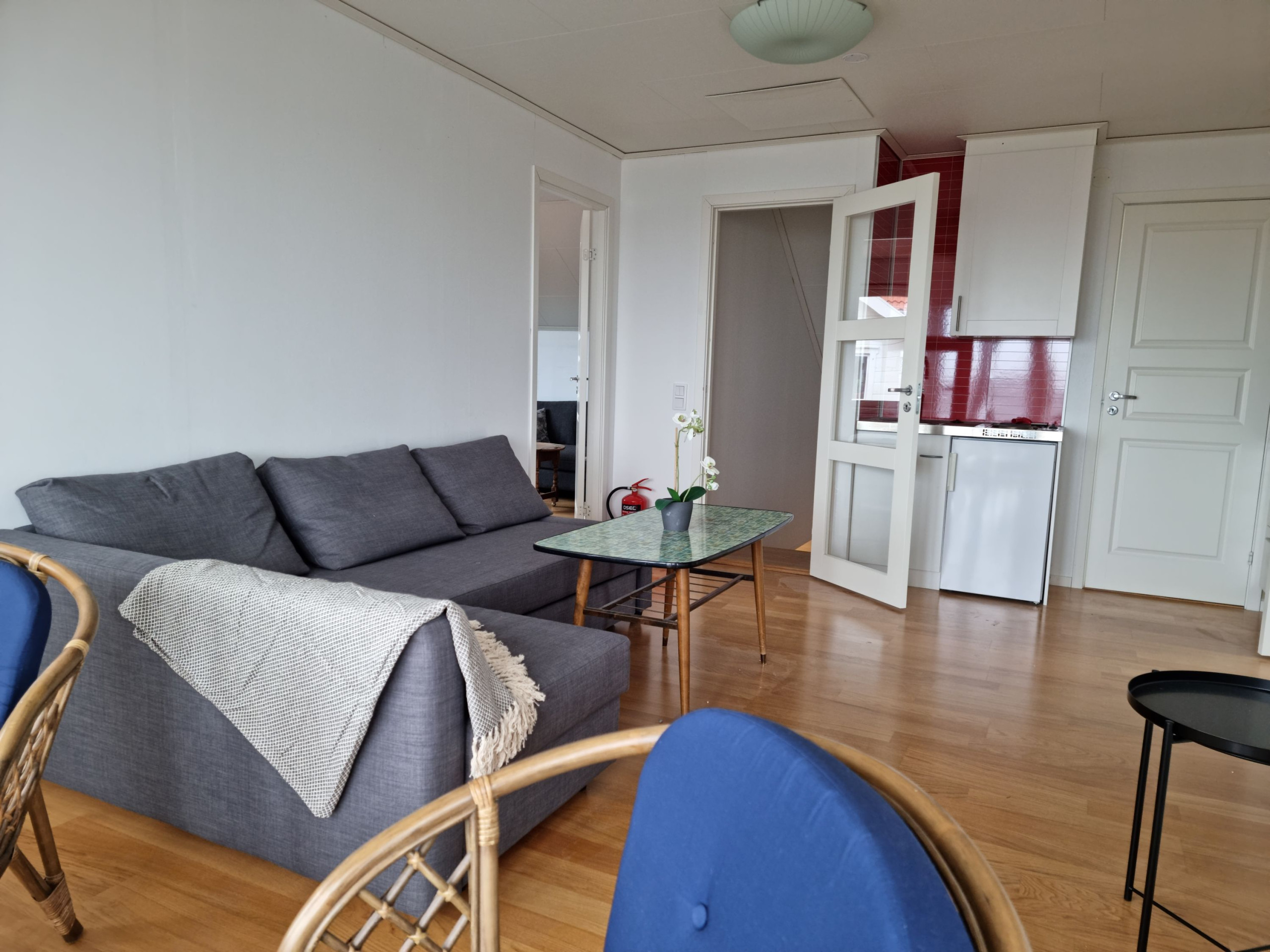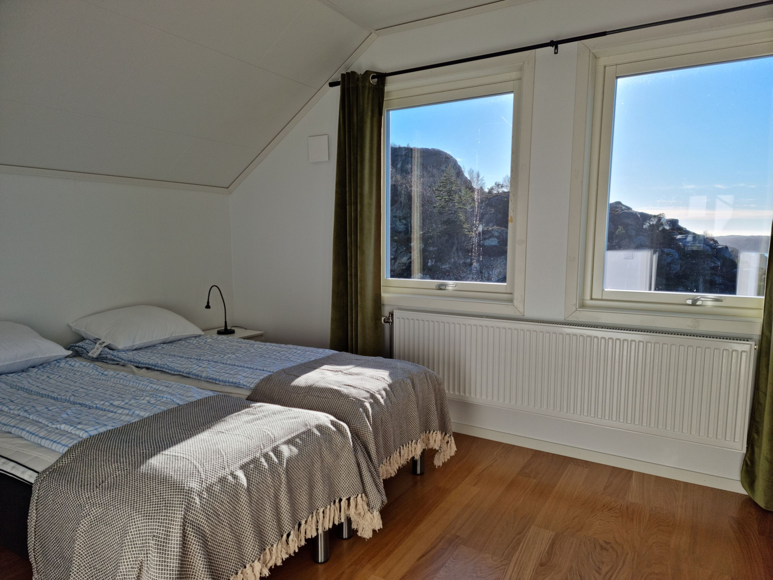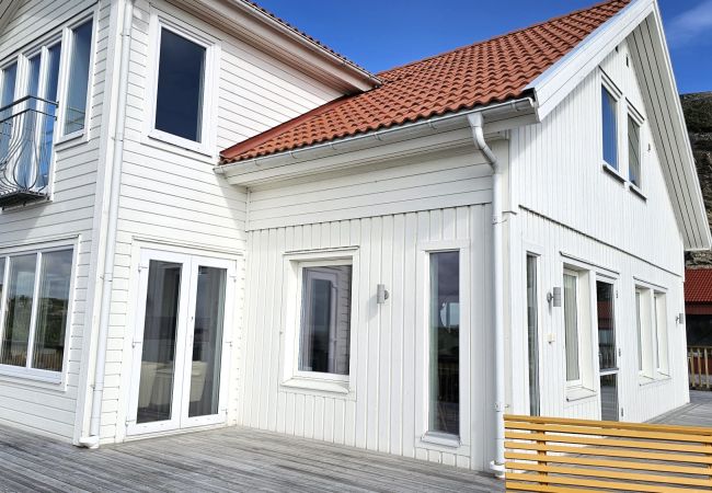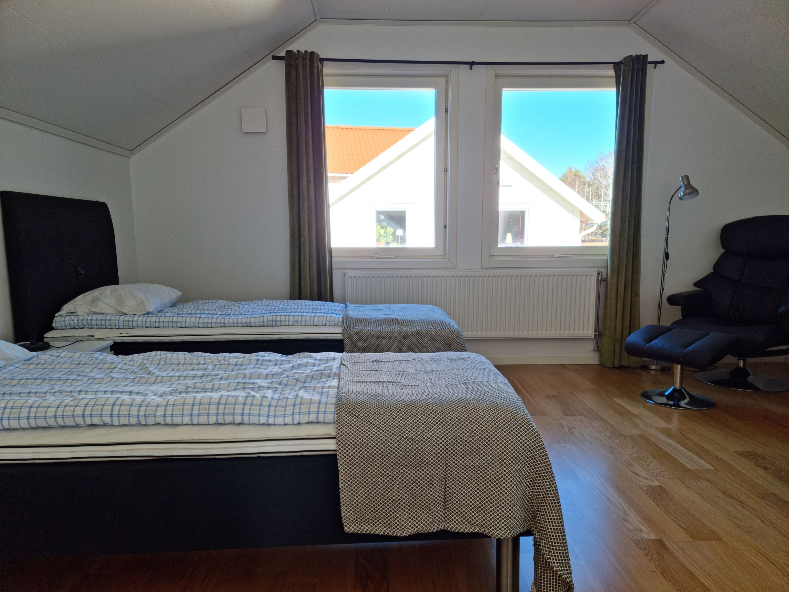Interiören är stilren och funktionell. Köket på entréplan är fullt utrustat med spis, ugn, diskmaskin, micro, kyl/frys och matplats. Härifrån har ni direkt access till altanen som har sol hela dagen. På övervåningen finns ytterligare ett mindre kök, vardagsrum med bäddsoffa och TV samt utsikt över havet. För er bekvämlighet finns även tvättmaskin och resesäng för baby. Utomhus kan ni njuta av grillkvällar, havsbrisen och den magiska solnedgången över Bohuslän. För extra avkoppling finns möjlighet att hyra en vedeldad badtunna.