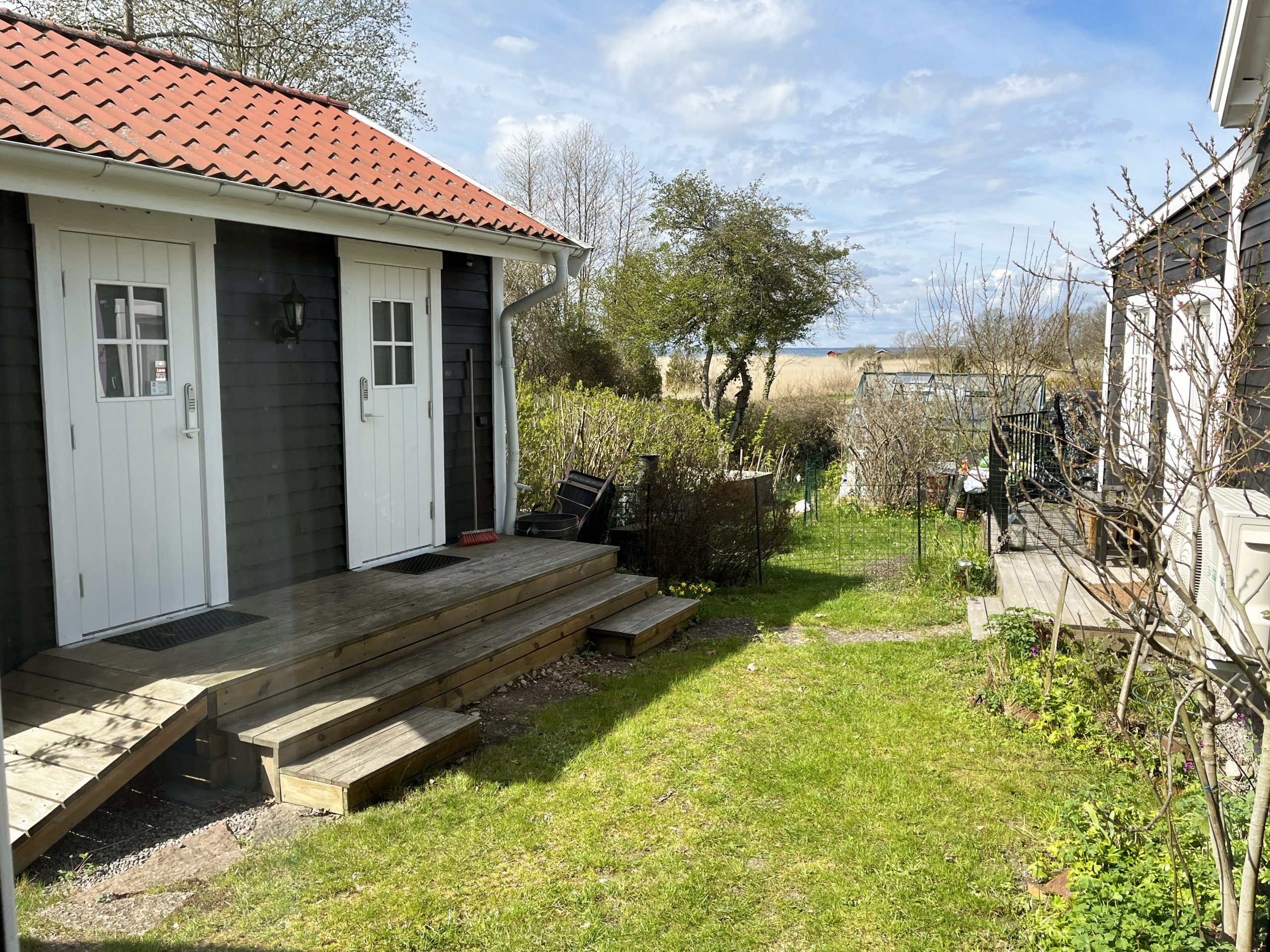 I den fina lilla trädgården på framsidan av huset kan ni sitta och koppla av. Här kan ni inta era frukostar eller middagar, då det finns både bord med stolar, en grill, ett parasoll och en gunga för barn. Att huset ligger intill ägarens bostadshus märker man knappt. Det finns också en gratis laddningsbox för elbilar och Wi-Fi. Cyklar, barnstol och badleksaker erbjuds utan extra kostnad. Gästerna har fyra cyklar till sitt förfogande, samt en för barn.