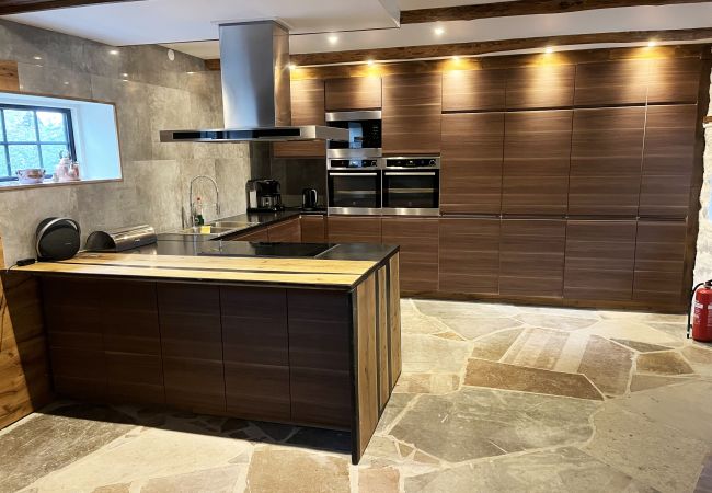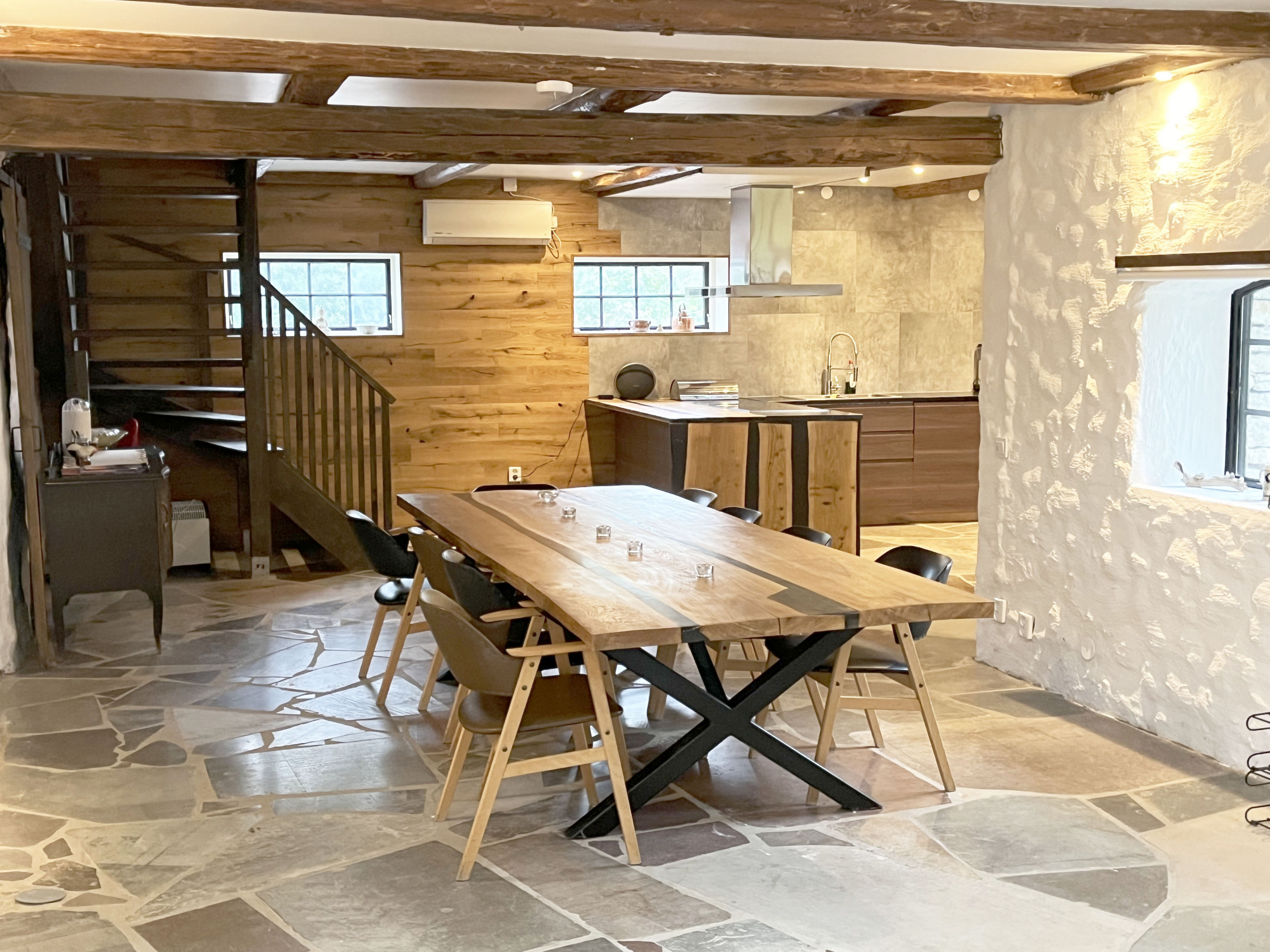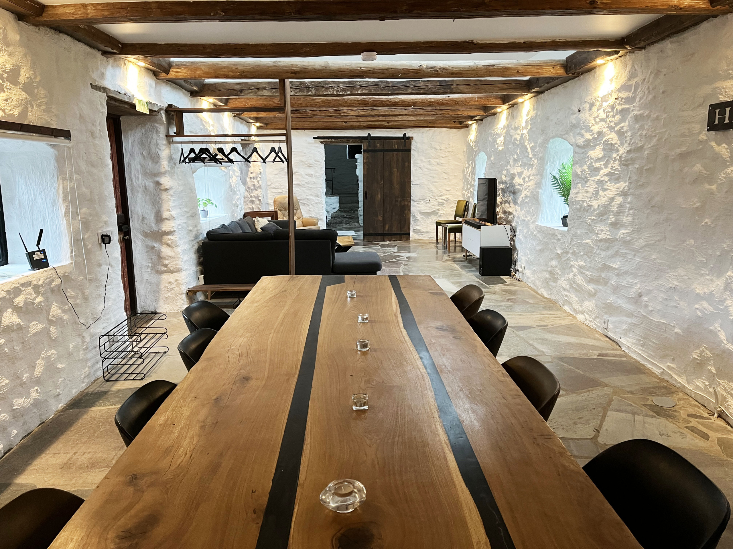 Entréplanet är ljust och rymligt med vitkalkade stenväggar och golv av kalksten. Planlösningen är öppen med synliga takbjälkar i taket och infällda dimbara spotlights. Vardagsrummet är möblerat med en soffgrupp och en Tv med chromecast. Intill finner ni matplatsen och det påkostade köket som bland annat har dubbla ångugnar. Huset har två helkaklade badrum med dusch. Via groventrén når ni den insynsskyddade baksidan som har kvällssol. I den bortre änden av huset ligger ett sovrum med dubbelsäng samt en enkelsäng på 120 cm. Övre planet har en möblerbar hall och tre sovrum med två enkelsängar i varje. Här är takhöjden lite lägre. På framsidan finns en parkering som bland annat används av den intilliggande restaurangens gäster under sommartid.