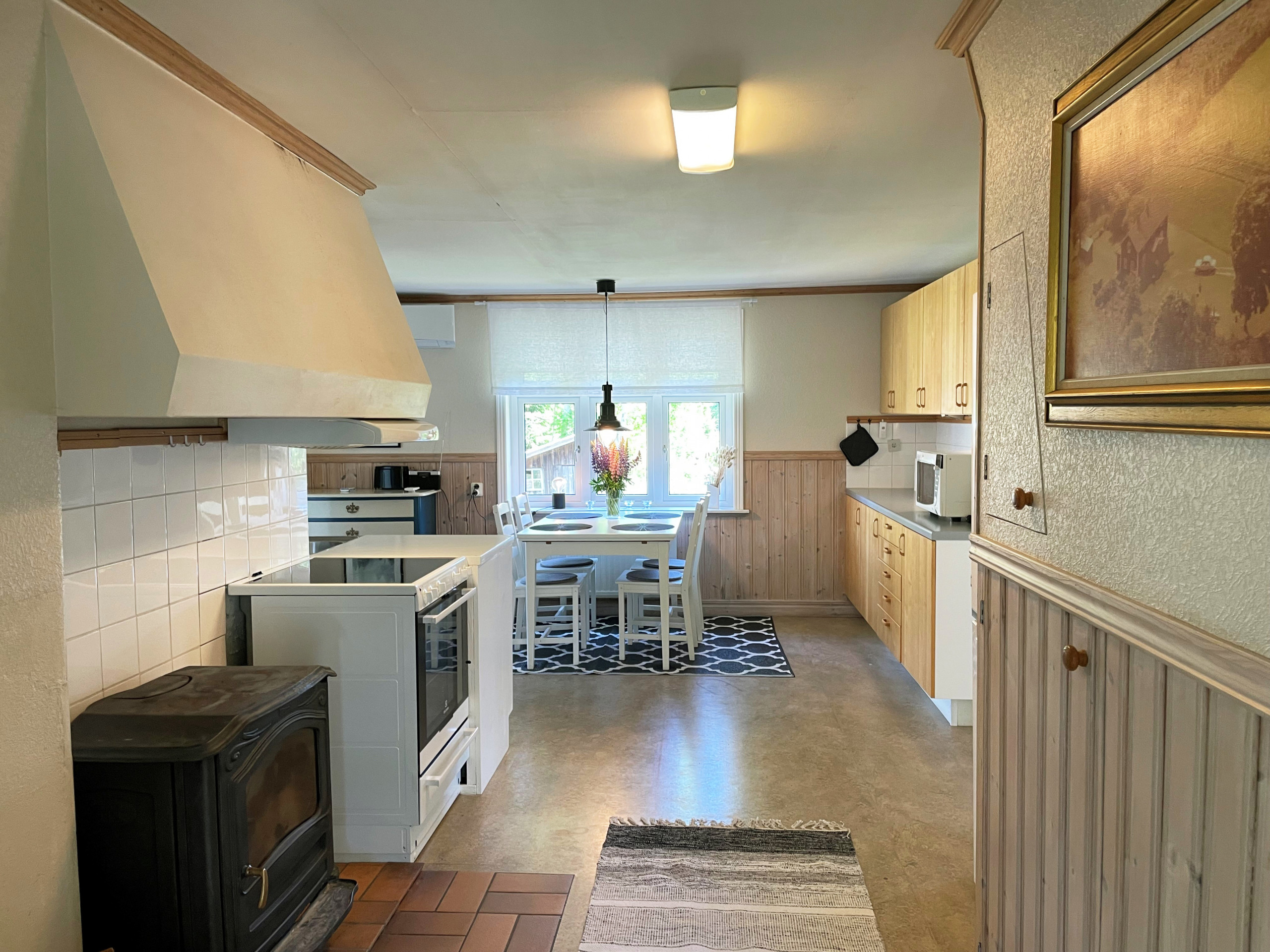 Ni bor lugnt och stilla på landet i Färle 10 km från Forsheda. Ert semesterhus som är på 90 m2, är väldigt bra utrustat och helårs isolerat och för max 8 vuxna och 1 litet barn. På övervåningen finns WC med handfat, 3 sovrum varav två med dubbelsäng och ett med 2 enkelsängar. Det finns även sittmöjlighet om man vill läsa eller en motionscykel och lite vikter om man vill träna lite. På nedre plan finns ett sovrum med dubbelsäng och det mysiga köket som är fullt utrustat med diskmaskin och kamin och sen har ni ett stort vardagsrum med TV, Wifi och Chromecast. Det finns ett badrum med WC, dusch, tvättmaskin, torkskåp, strykjärn och hårtork. Barnsäng och barnstol finns i huset. Brant trappa i huset. Huset värms upp via el och solceller och elen ingår. Tomten som är en naturträdgård med del klippt är på ca. 2000 m2 och lämpar sig väl för lek och spel. Ni kan sitta på köksfarstukvisten med morgonkaffet och njuta av tystnaden och det enskilda läget.