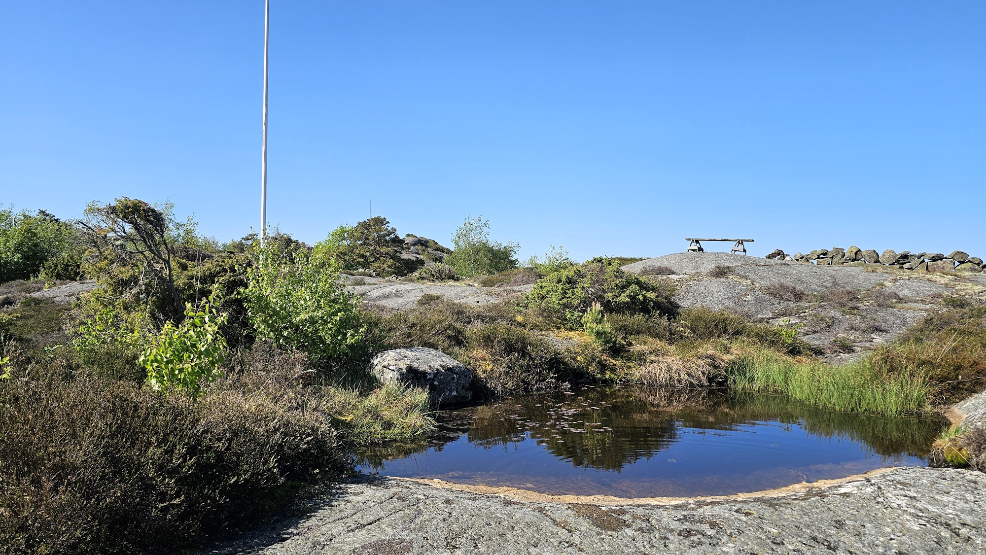 Tomten bjuder på en genuin bohuslänsk känsla med ljung, berg och en liten damm precis bakom huset. Här finns flera uteplatser, både med klassiska trämöbler och ett litet utekök där ni kan laga enklare måltider utomhus. På framsidan står utemöbler med parasoll och grill för sommarkvällar i solnedgången.