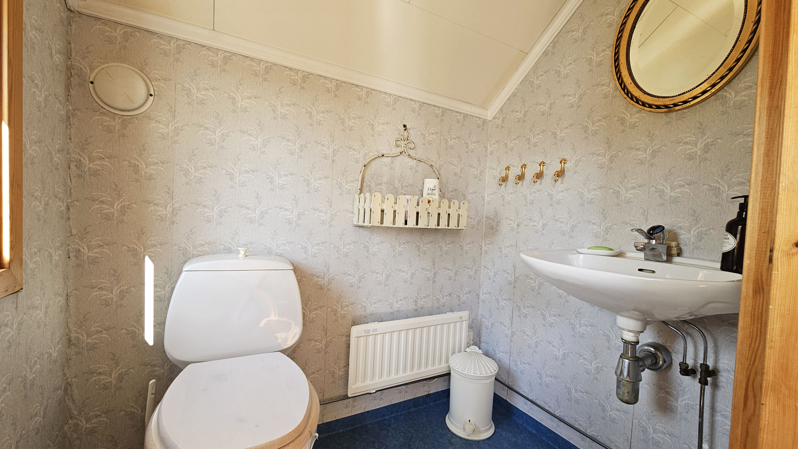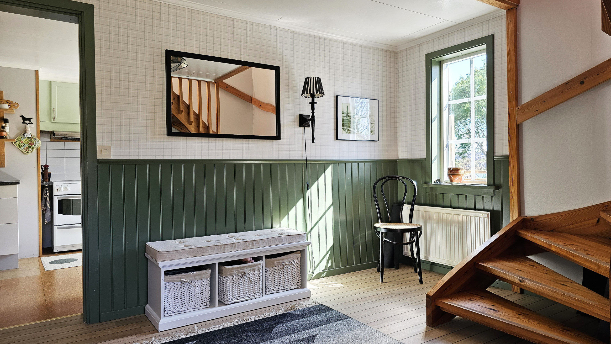 Huset har ett fullt utrustat kök med diskmaskin, ugn och goda arbetsytor för gemensam matlagning. Entréhall och sällskapsytor är ljusa och hemtrevliga och skapar en inbjudande atmosfär för umgänge. Boendet har badrum med dusch och toalett samt en extra WC.