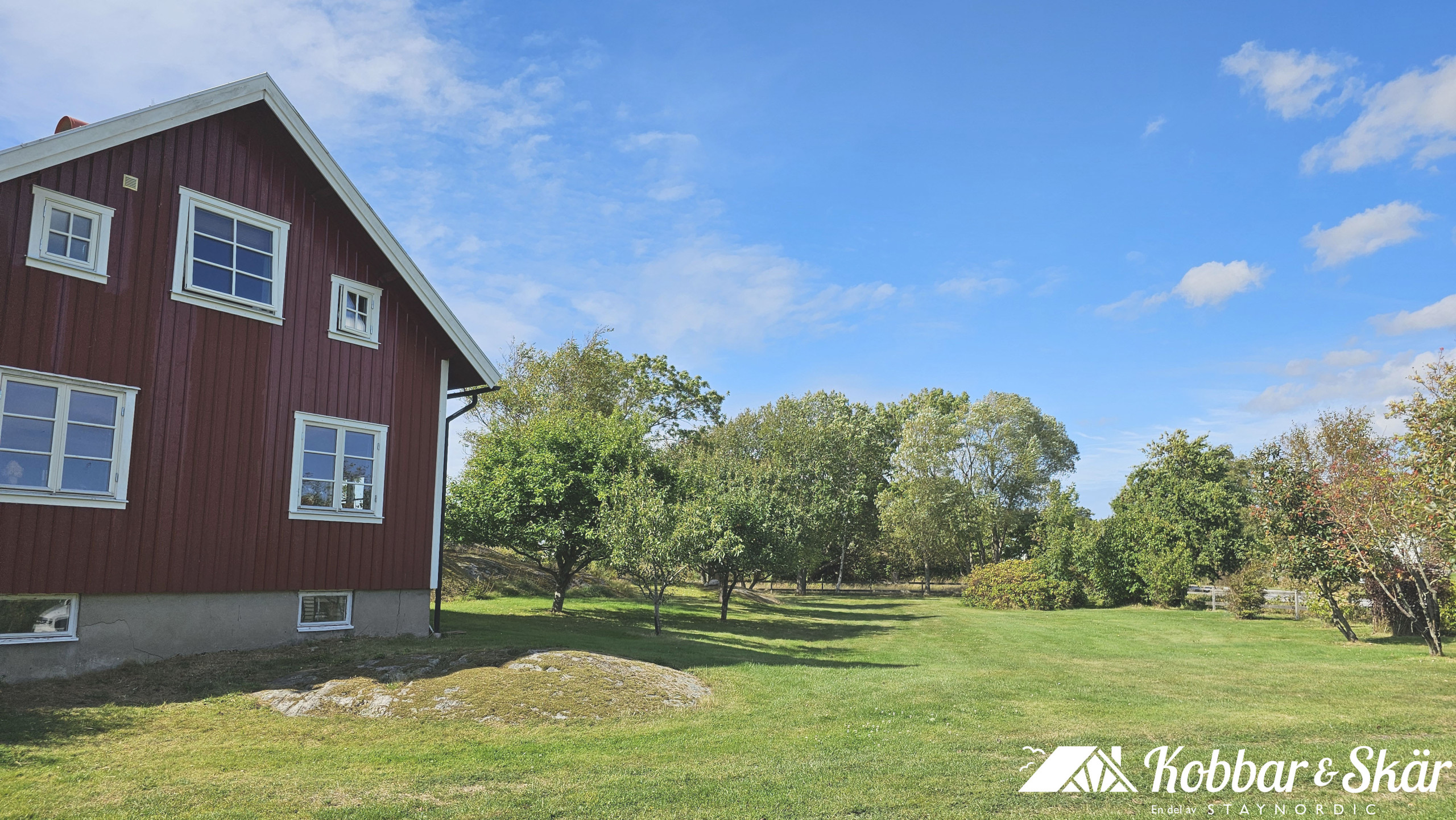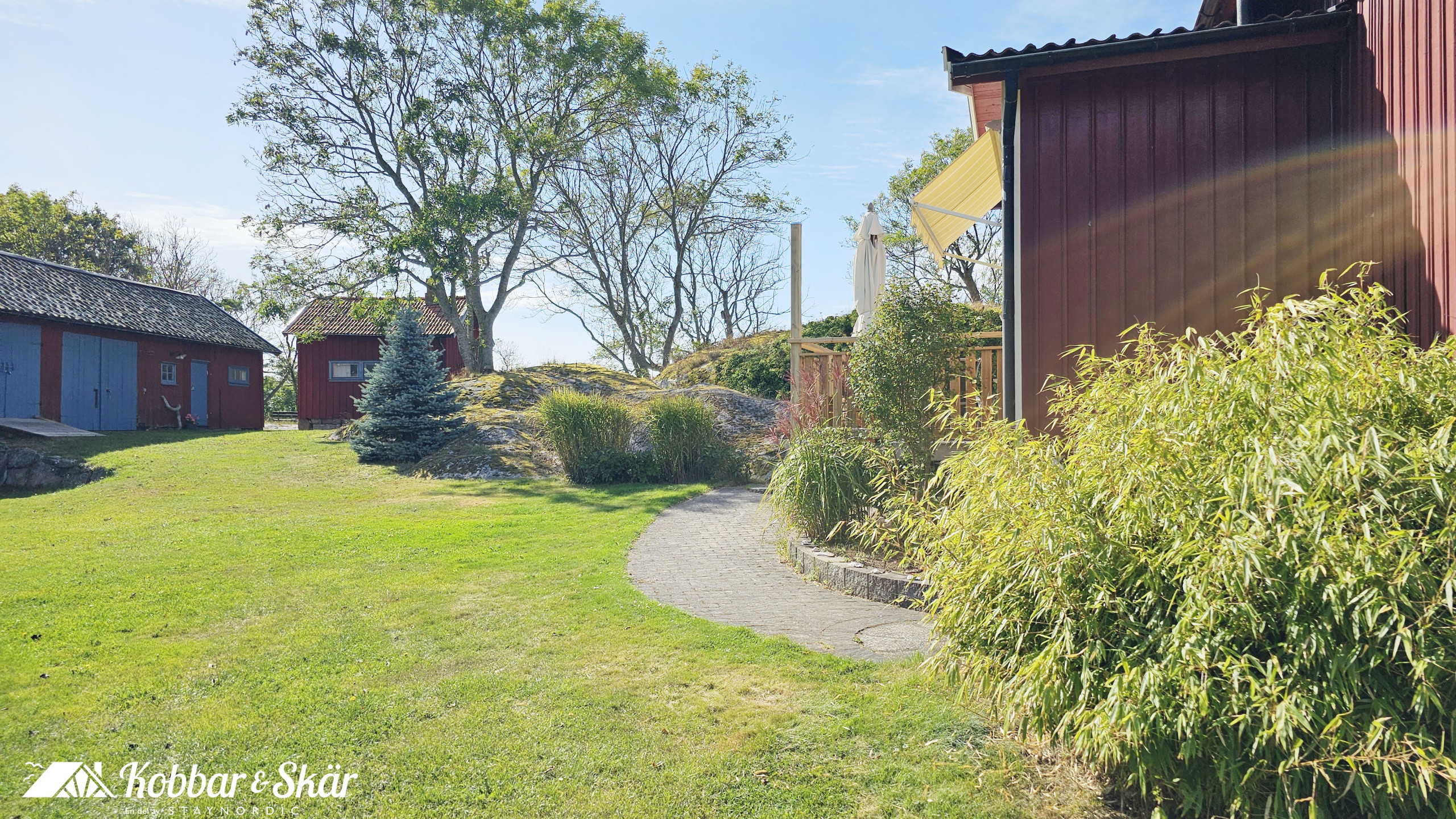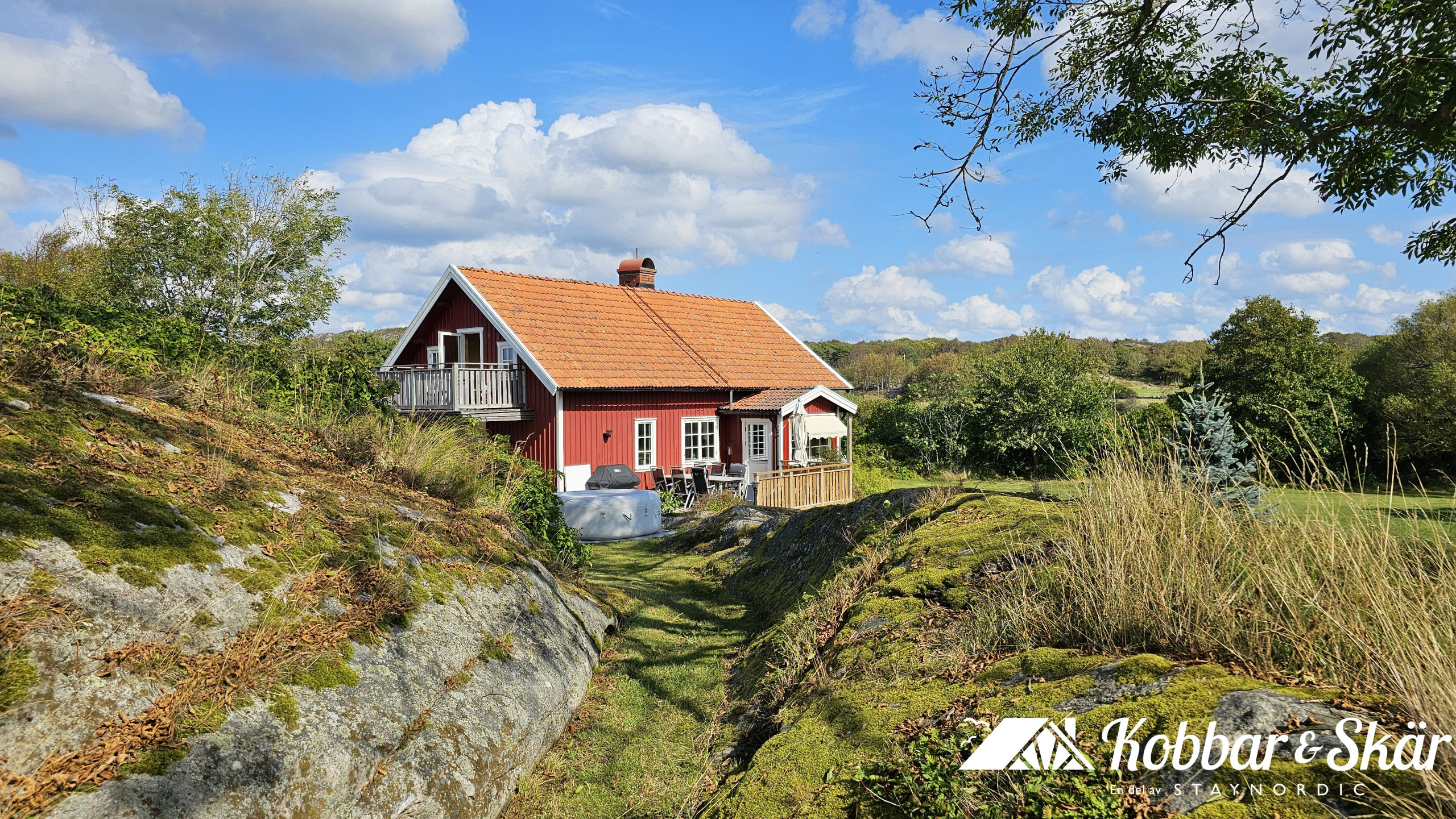 Välkommen till ett klassiskt västkustboende i pittoreska Hälleviksstrand! Här bor ni i två charmiga röda stugor som tillsammans rymmer upp till 8 personer, perfekt för den större familjen eller två sällskap som vill semestra tillsammans. Den insynsskyddade innergården blir er egen privata plats för lek, avkoppling och middagar i kvällssolen. Storstugan bjuder på genuin sommarkänsla med sitt hemtrevliga kök, braskamin och social planlösning där kök och allrum möts. Här finns tre sovrum: ett med dubbelsäng, ett med loftsäng samt ett med två platsbyggda bäddar. Toalett finns i anslutning till hallen. Gäststugan erbjuder en öppen planlösning med köksdel, sovplatser och en gemensam dusch för hela sällskapet. Här finns också en liten matplats och tv-hörna. Tomten mellan stugorna ramas in av berg och husen själva, vilket skapar en avskild oas där ni kan sola, leka eller njuta av lugnet. På den stora altanen finns plats för både loungemöbler och grillkvällar. Härifrån leder en liten stig mot Hälleviksstrand, och innan löven slagit ut kan man skymta viken från huset. Hundar är varmt välkomna och här finns plats även för de yngsta gästerna, ett barnvänligt och hundvänligt boende med flera uteplatser för alla att njuta av.