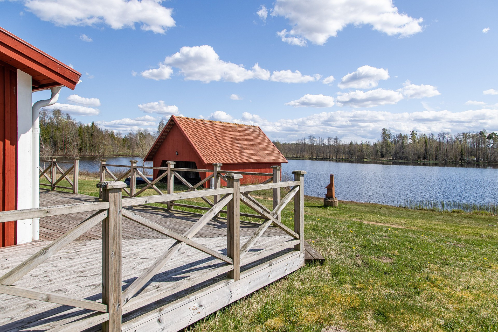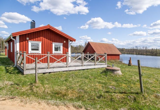Trevlig stuga med en stor härlig altan med panoramautsikt över Hängasjön, som ligger söder om Ljungby i Småland.