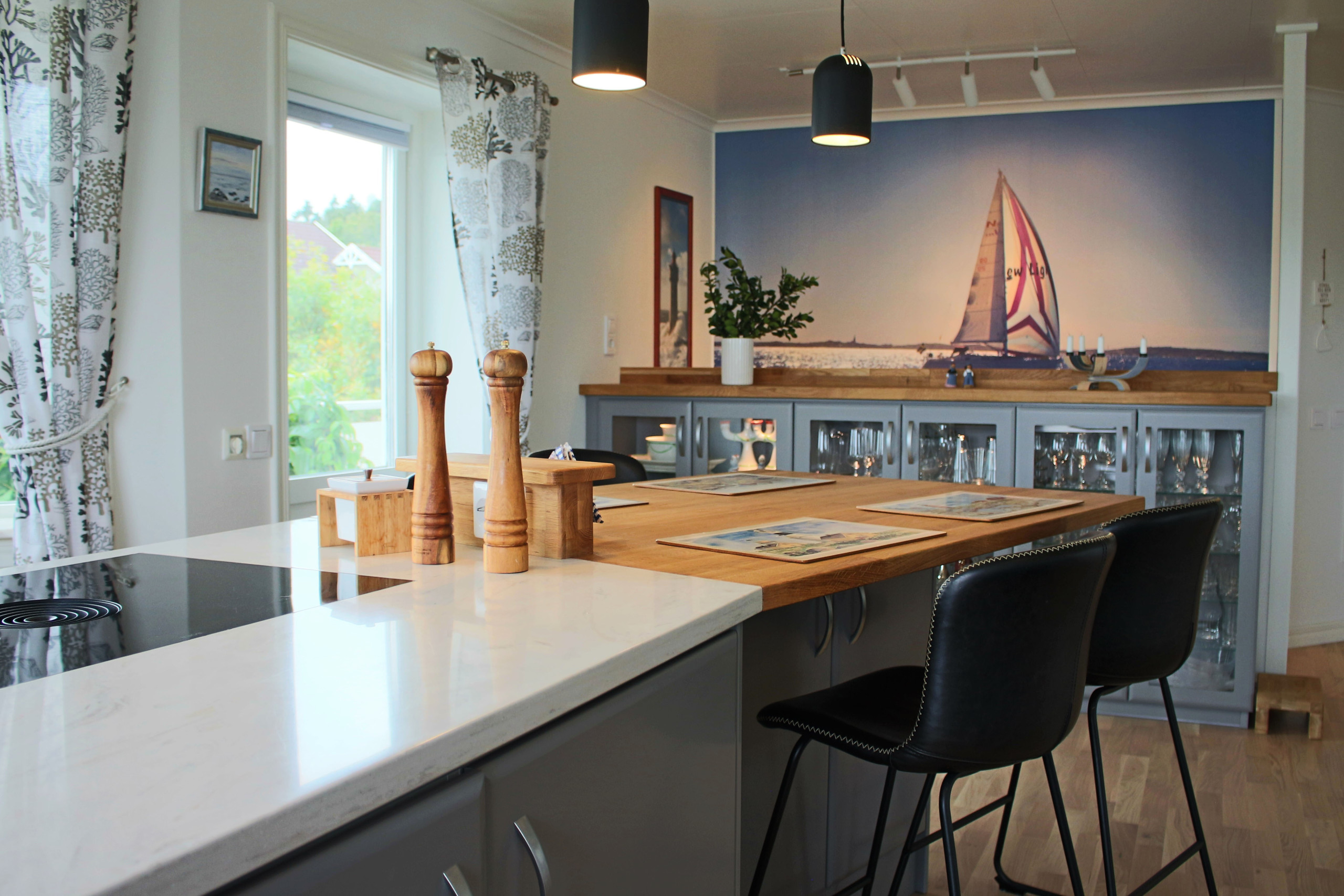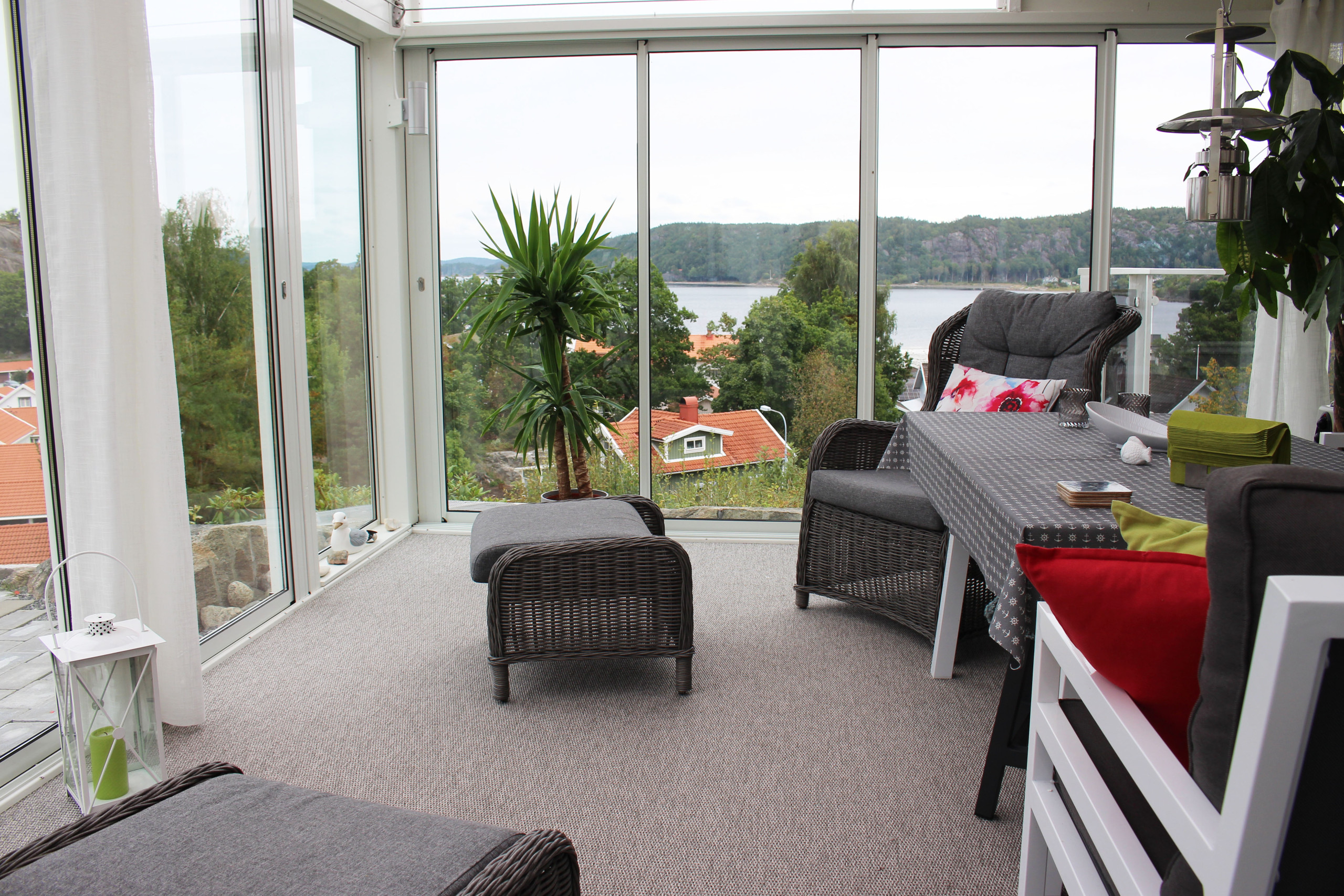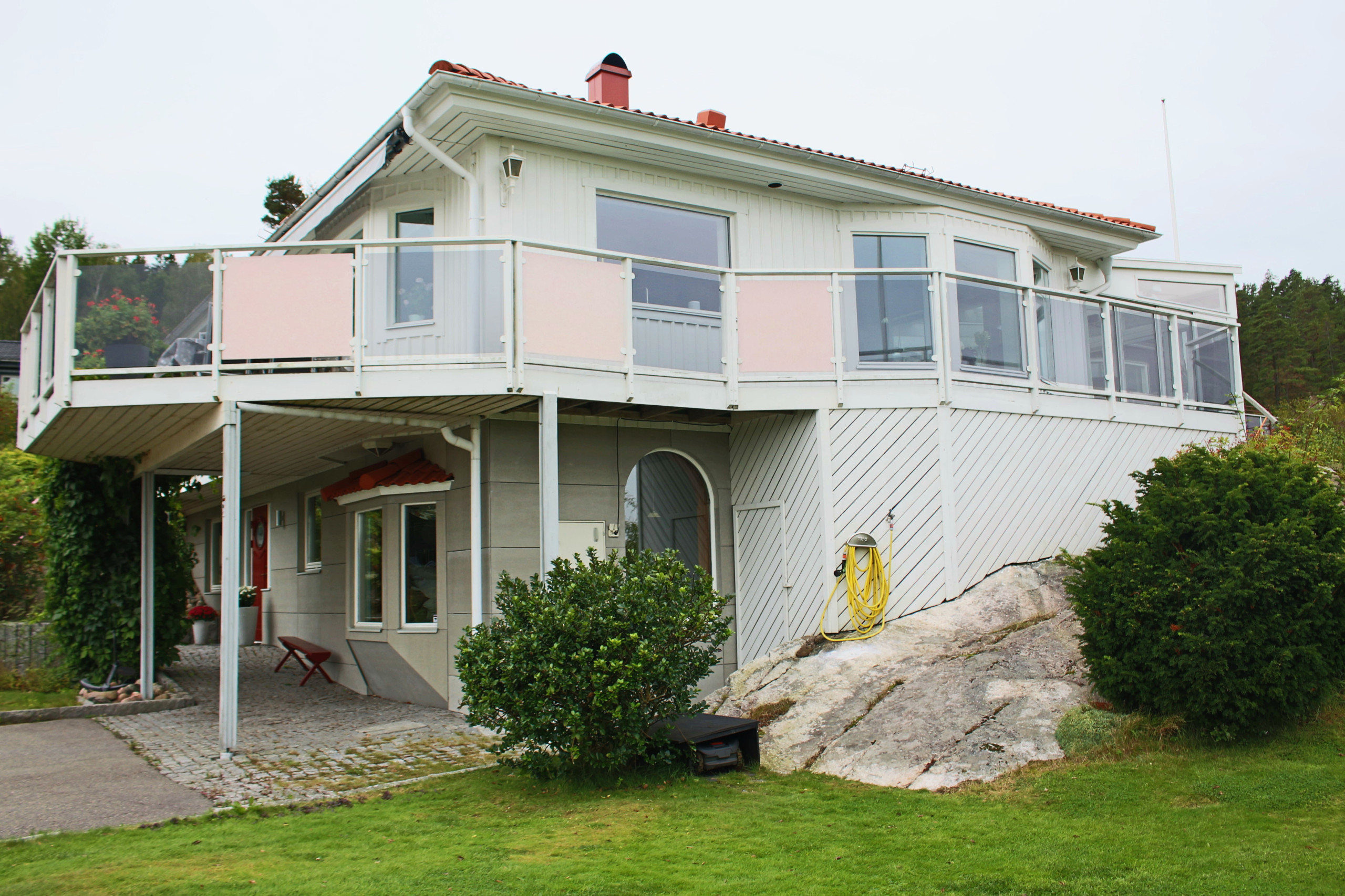 Huset är inrett för trivsel året runt och erbjuder fyra sovrum, flera sällskapsytor och ett stort inglasat uterum där hela gänget får plats. Uterummet fungerar som ett extra vardagsrum med utsikt mot altanen, som löper runt halva huset – en härlig plats för grillkvällar och långa sommarkvällar. På entréplanet finns ett sovrum med TV och tvättstuga, medan mellanvåningen rymmer vardagsrum med stor soffa, ett sovrum med dubbelsäng och TV, välutrustat kök samt badrum med dusch. På övervåningen finns ett mysigt sovloft med ståhöjd i mitten, ytterligare ett sovrum och lite havsutsikt från fönstret.