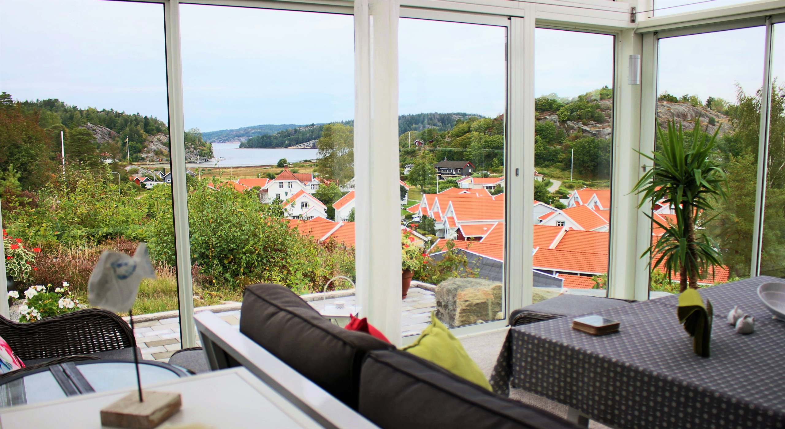 Välkommen till en rymlig och bekväm villa i Henån på Orust – ett perfekt semesterboende för den stora familjen eller två familjer som reser tillsammans. Här bor ni högt och vackert med ljuvlig utsikt över havet, skymt av centrum och omgivande skog. Huset är 200 m² stort och har fyra sovrum med totalt nio bäddar. På entréplanet finns två sovrum, ett badrum med dusch och bastu samt en tvättstuga med både tvättmaskin, torktumlare, torkskåp och extra frys. Här finns också träningsredskap för den som vill hålla igång under semestern. En trappa upp möts ni av ett helt nyrenoverat kök och ett stort allrum med matplats, TV och öppen spis. Här uppe finns två sovrum, ett med en dubbelsäng och ett med en säng som är 140 cm. Från övervåningen leder altandörren ut till en nybyggd inglasad altan med bedårande utsikt, den självklara samlingsplatsen för långa sommarkvällar. Den generösa altanen löper runt tre väderstreck och har glasräcken som ramar in havsutsikten. På tomten finns stenlagda uteplatser, växthus, grillmöjligheter och solstolar. Här njuter ni av både morgonkaffe och kvällssol i lugn miljö.