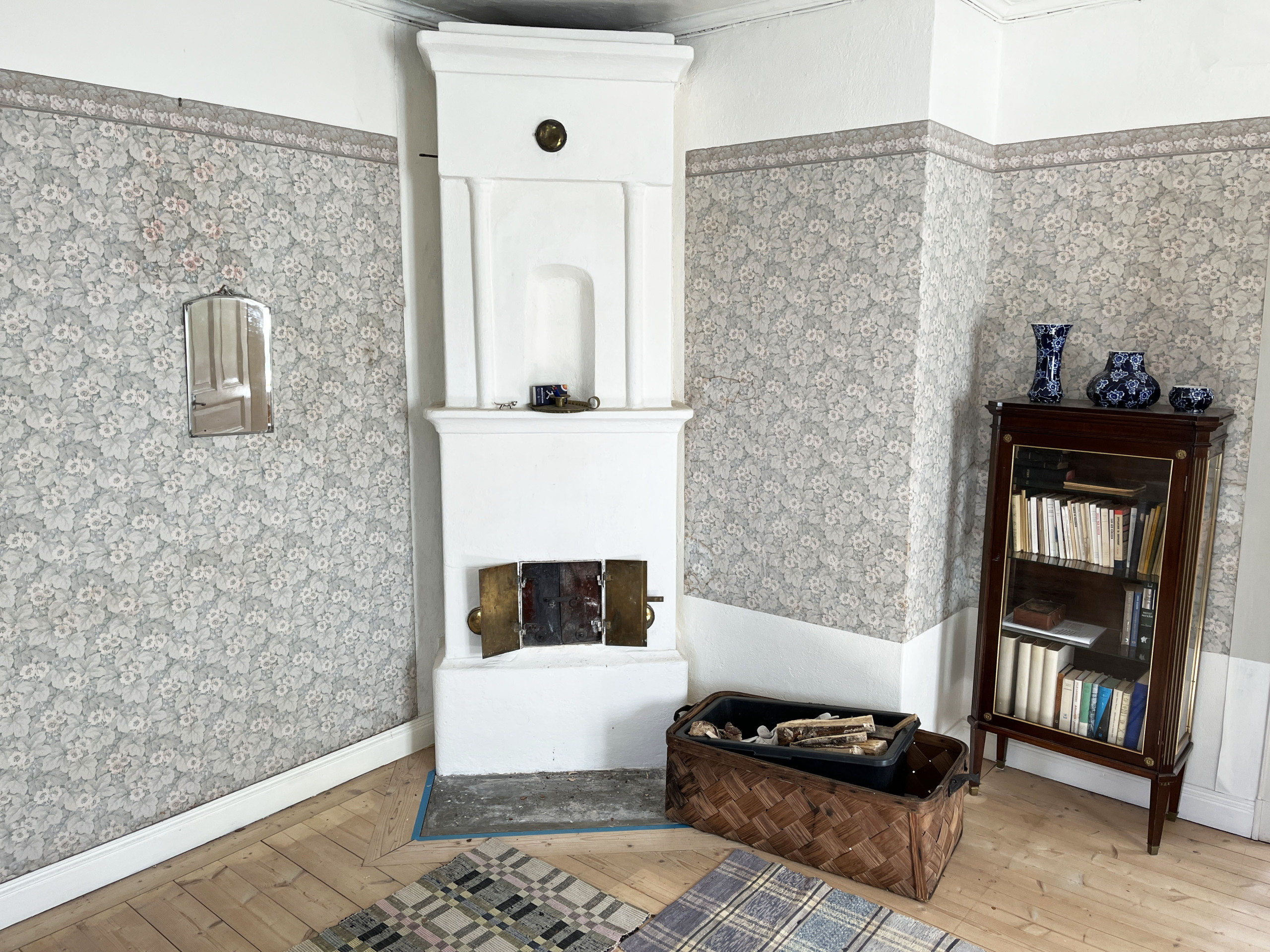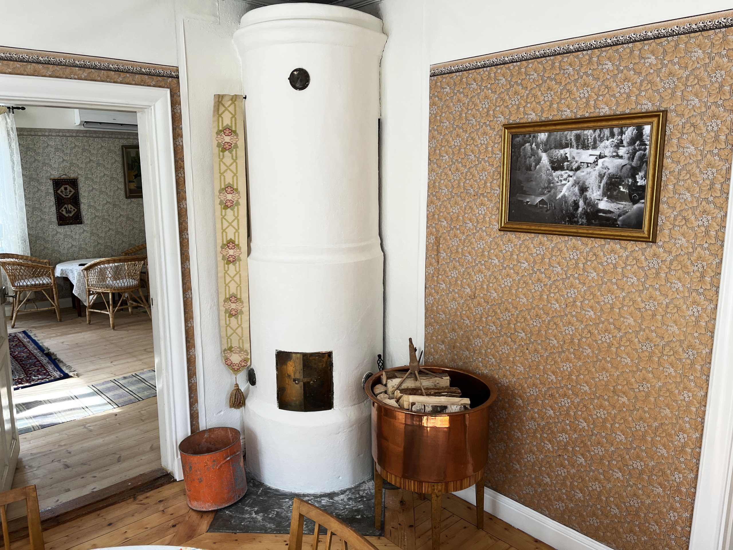 I både vardagsrum och matrum går det att elda i murspisarna. I sovrummen är det tyvärr inte möjligt att elda i spisarna.