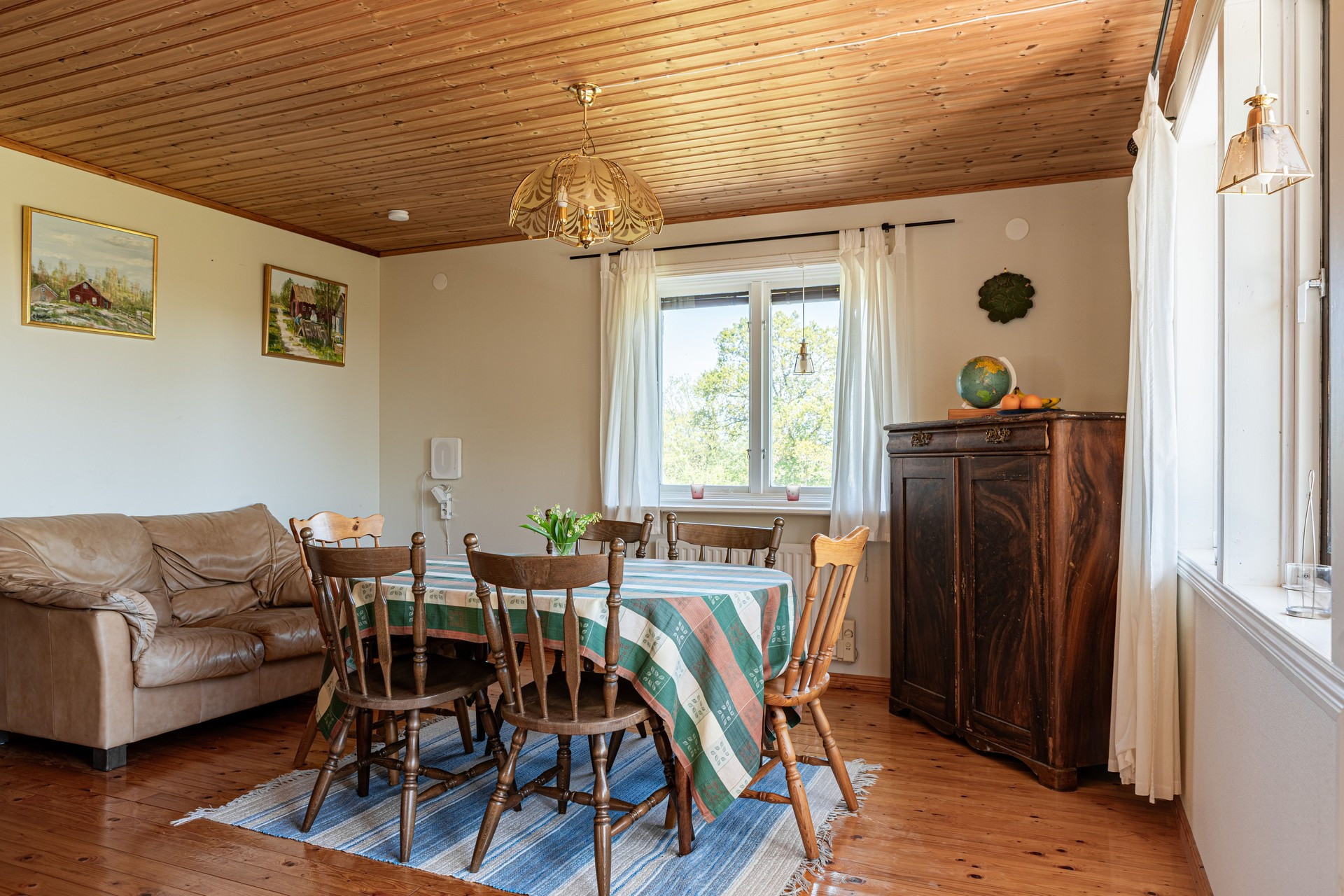 Huset ligger fint på en kulle med slående utsikt över kohagarna och den svenska lantliga idyllen.
