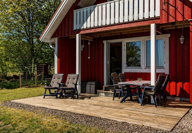 Den trevliga terrassen bjuder även den på en vacker utsikt med kor som betar intill huset på sommaren. Perfekt för sommarens ljumna grillkvällar!