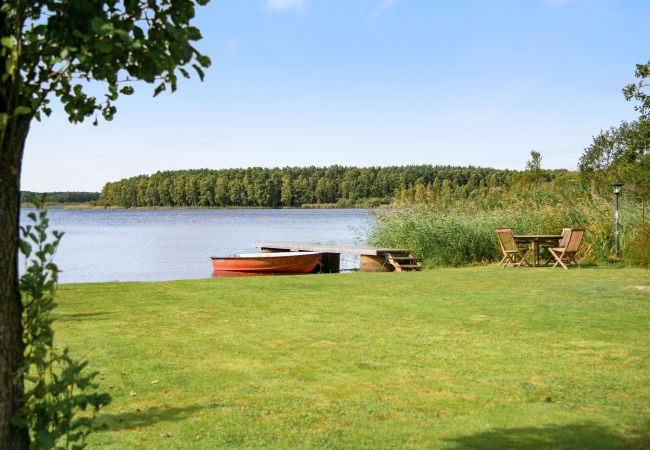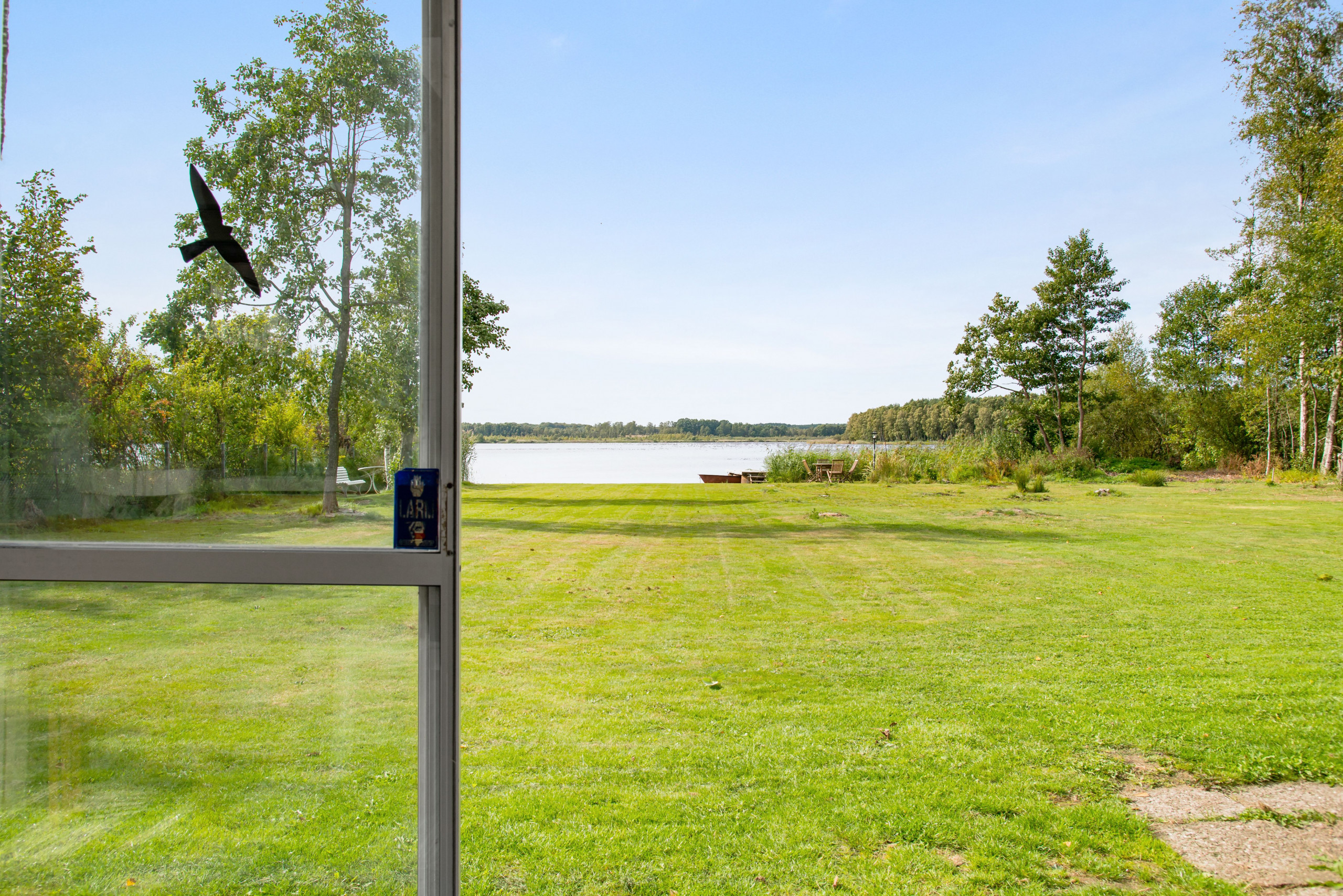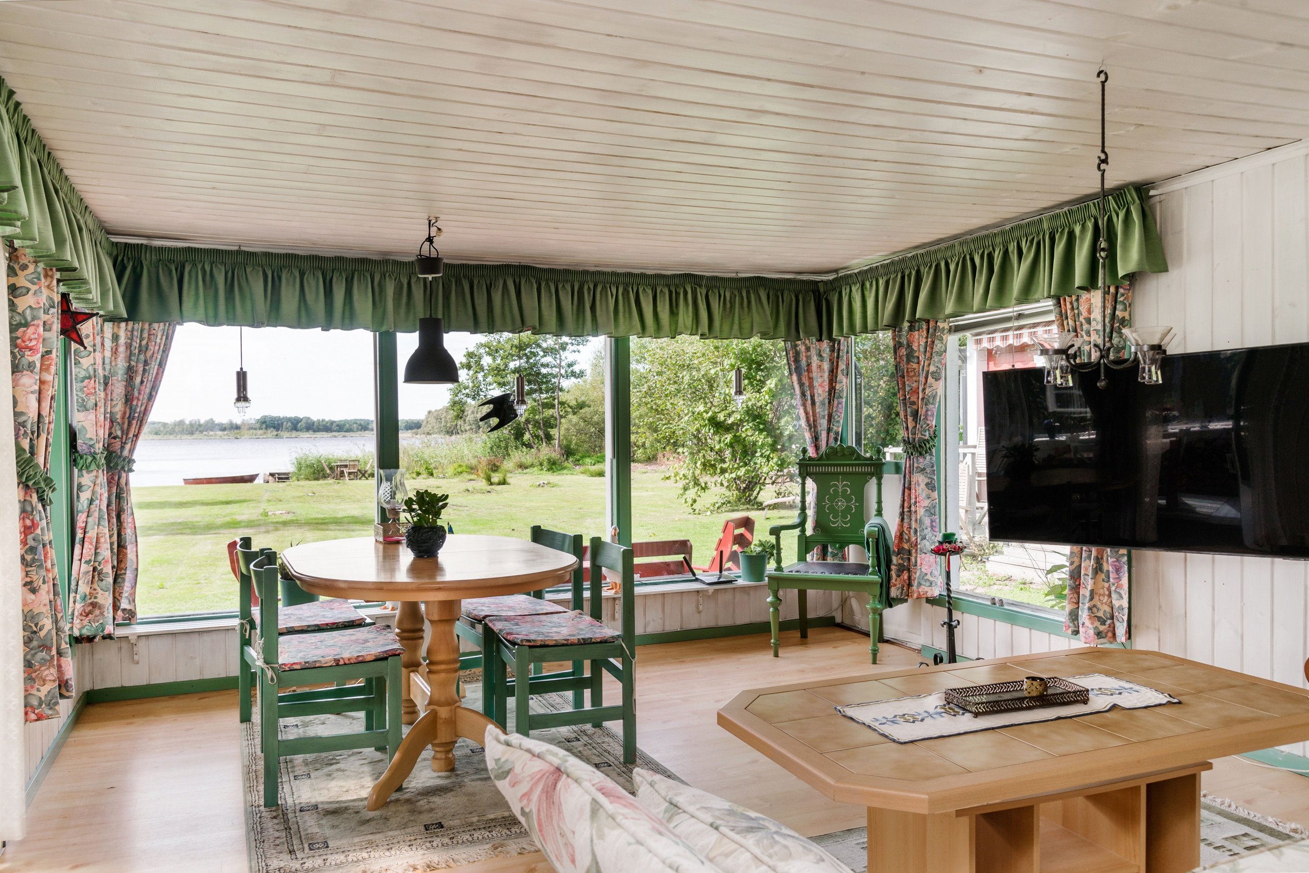 Från den inglasade terrassen har du utsikt över sjön som gränsar direkt till tomten. Här kan du sitta året om och njuta av naturen oavsett väder. Ute på tomten har du tillgång till en privat brygga och en båt som ingår i hyran, perfekt för en rogivande stund ute på vattnet.